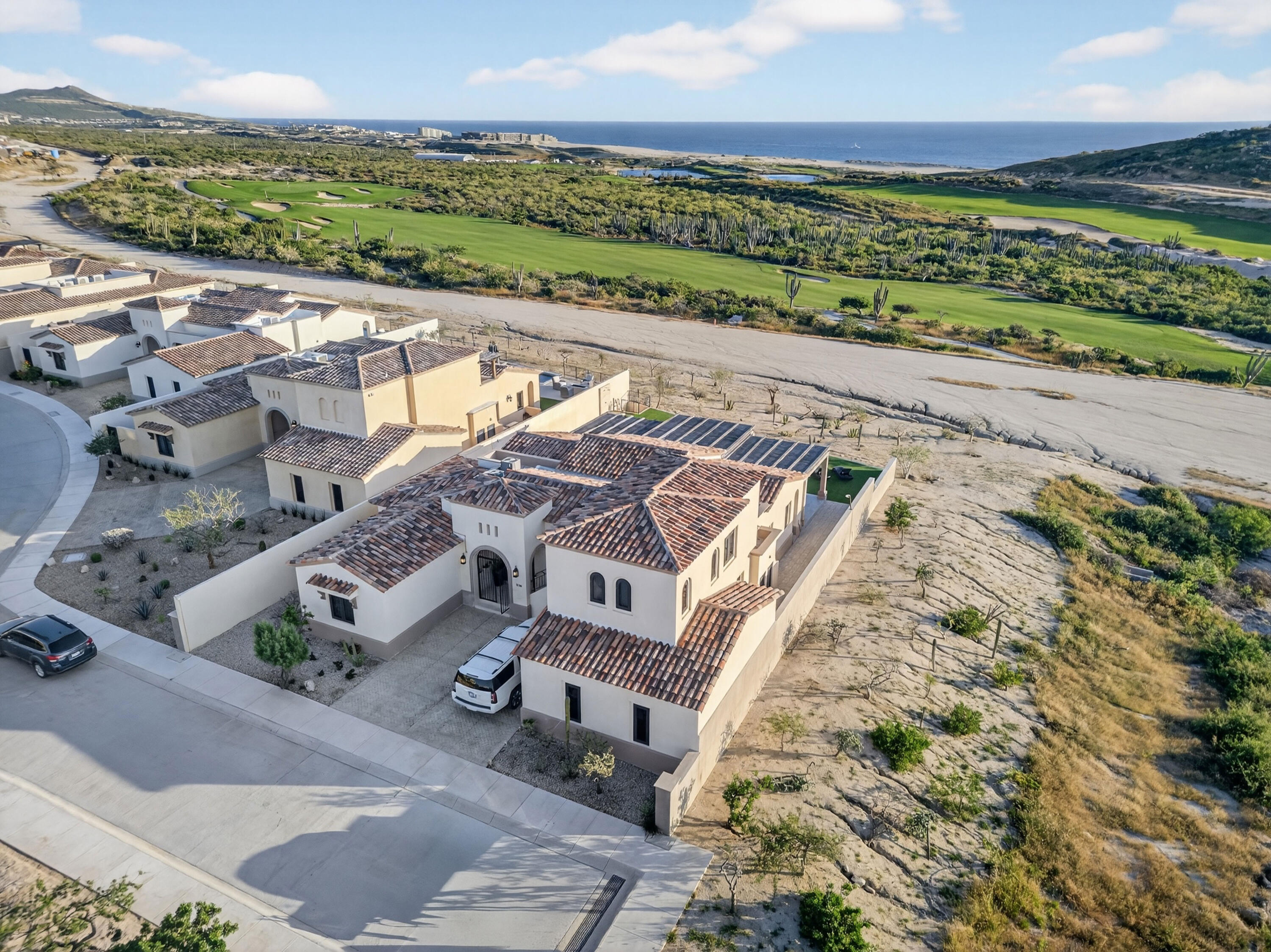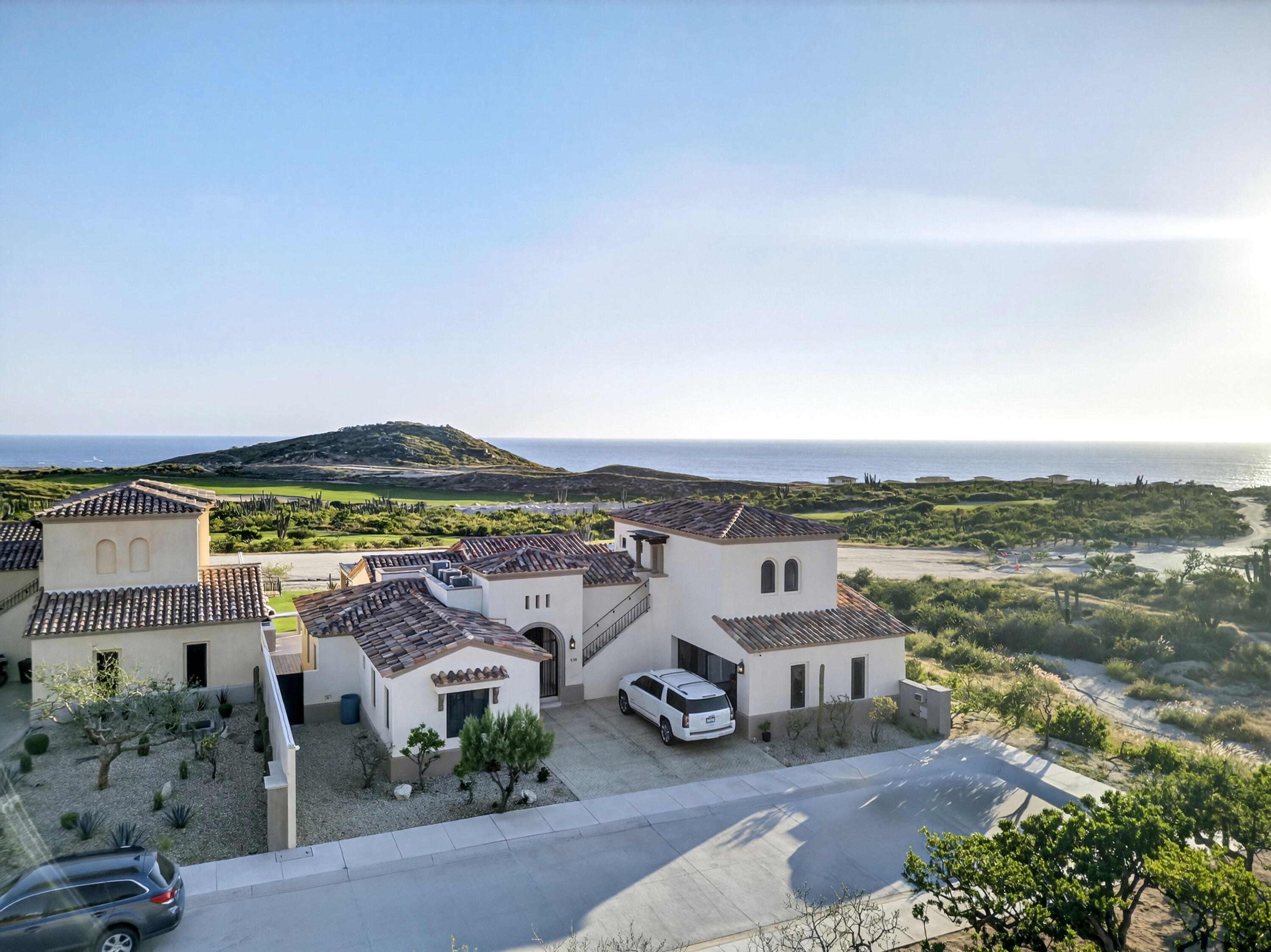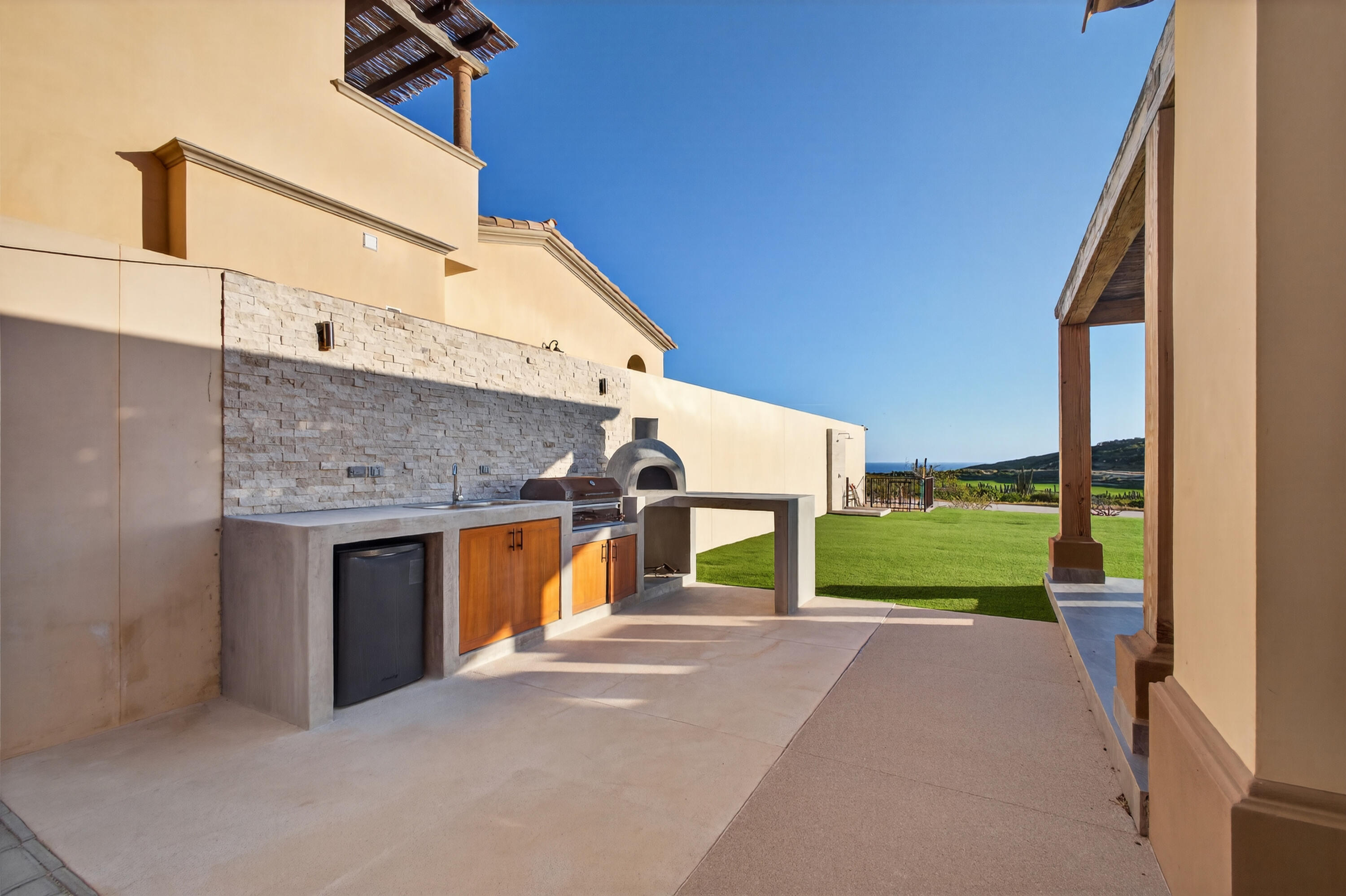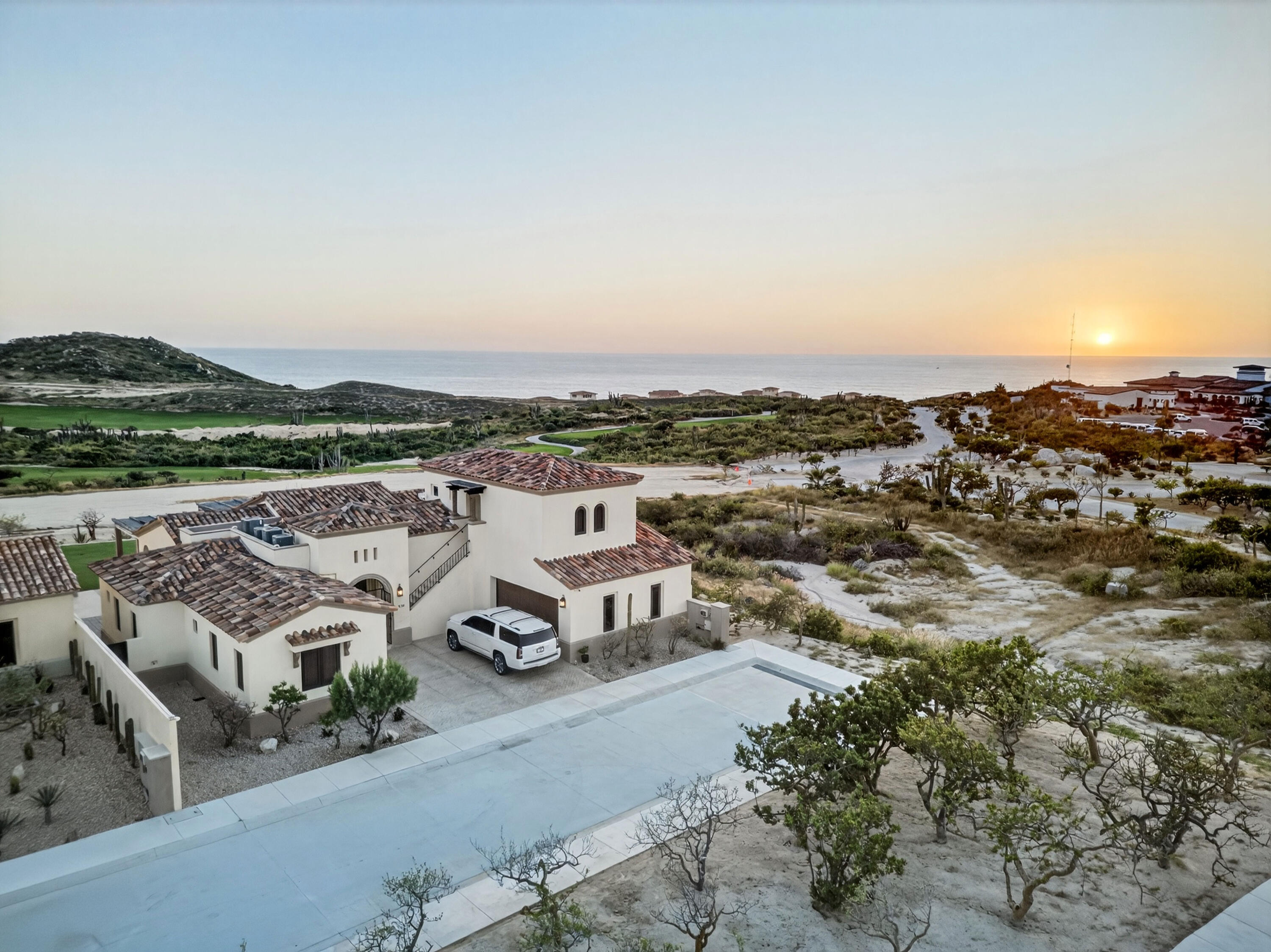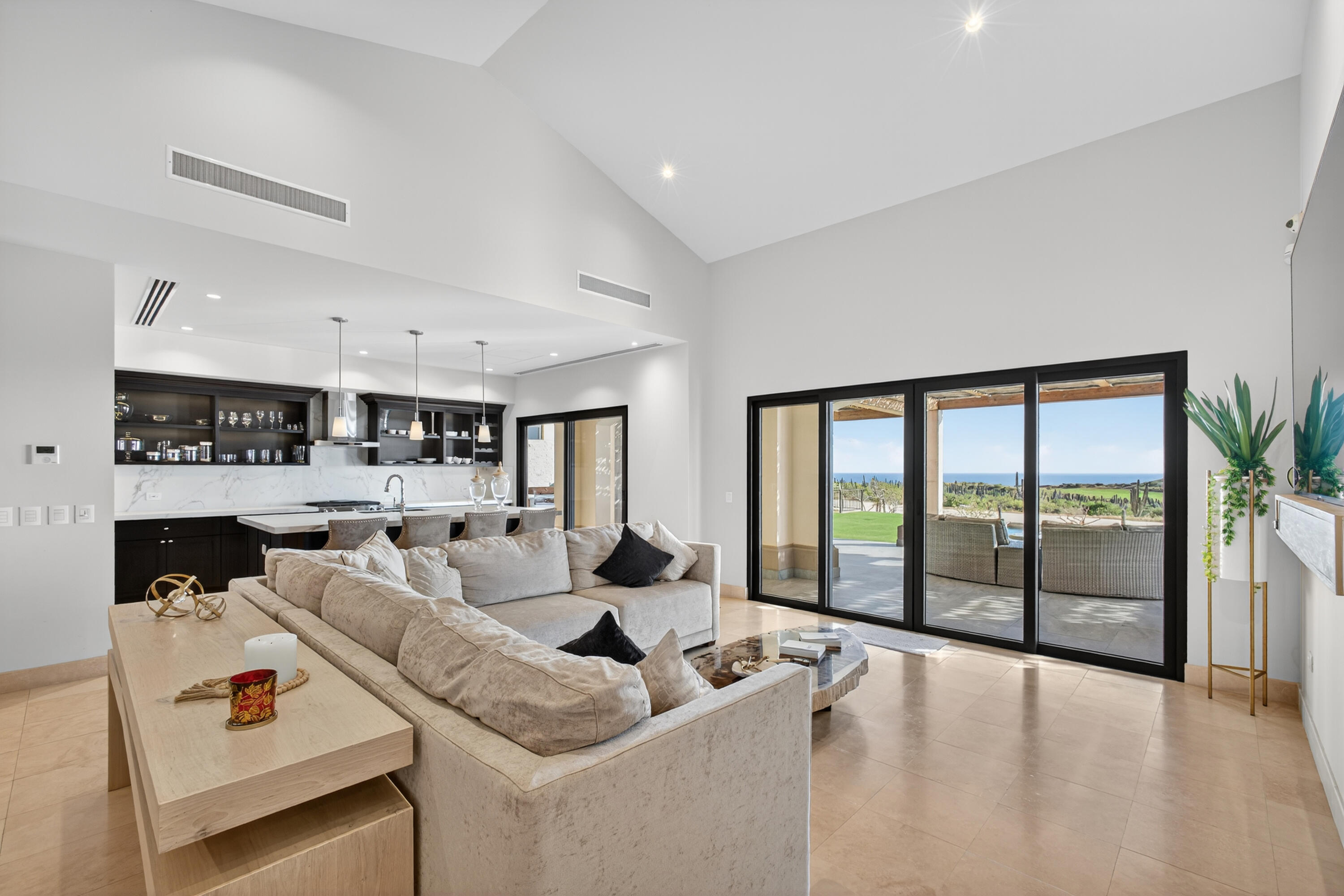 Villa #38 offers the largest lot in the community, measuring 8,046 square feet, with only one neighbor on one side. This allows you to enjoy spacious gardens and the tranquility of your surroundings. Experience luxury coastal living at its finest in this fully furnished, single-level residence located in the exclusive community of Rancho San Lucas. With panoramic views of the Pacific Ocean and Greg Norman's world-class golf course, Villa #38 combines timeless elegance with modern convenience. It features upgraded high ceilings, custom beams, designer lighting, granite countertops, and exquisite tile work throughout the fully equipped kitchen, which is enhanced with a stylish backsplash and exceptional custom cabinetry, along with ample island storage.