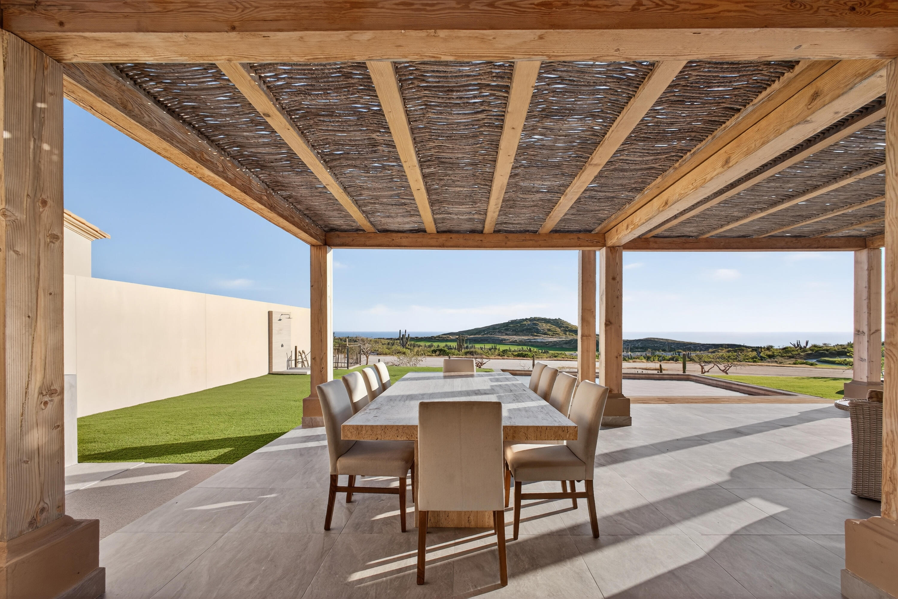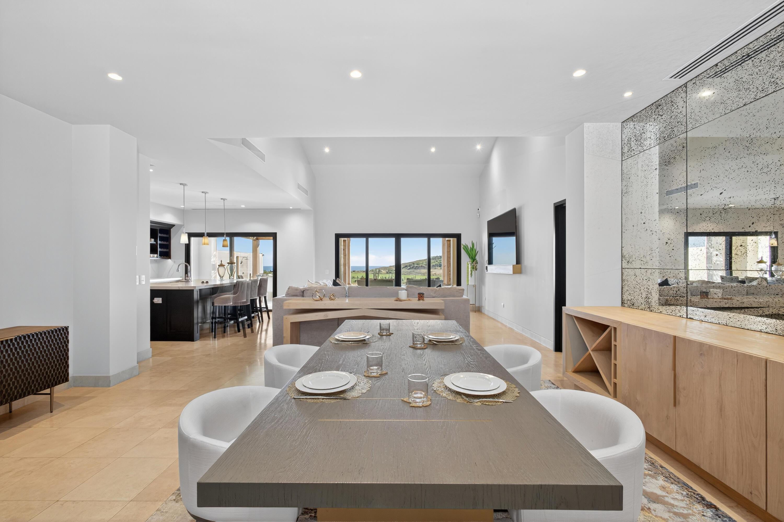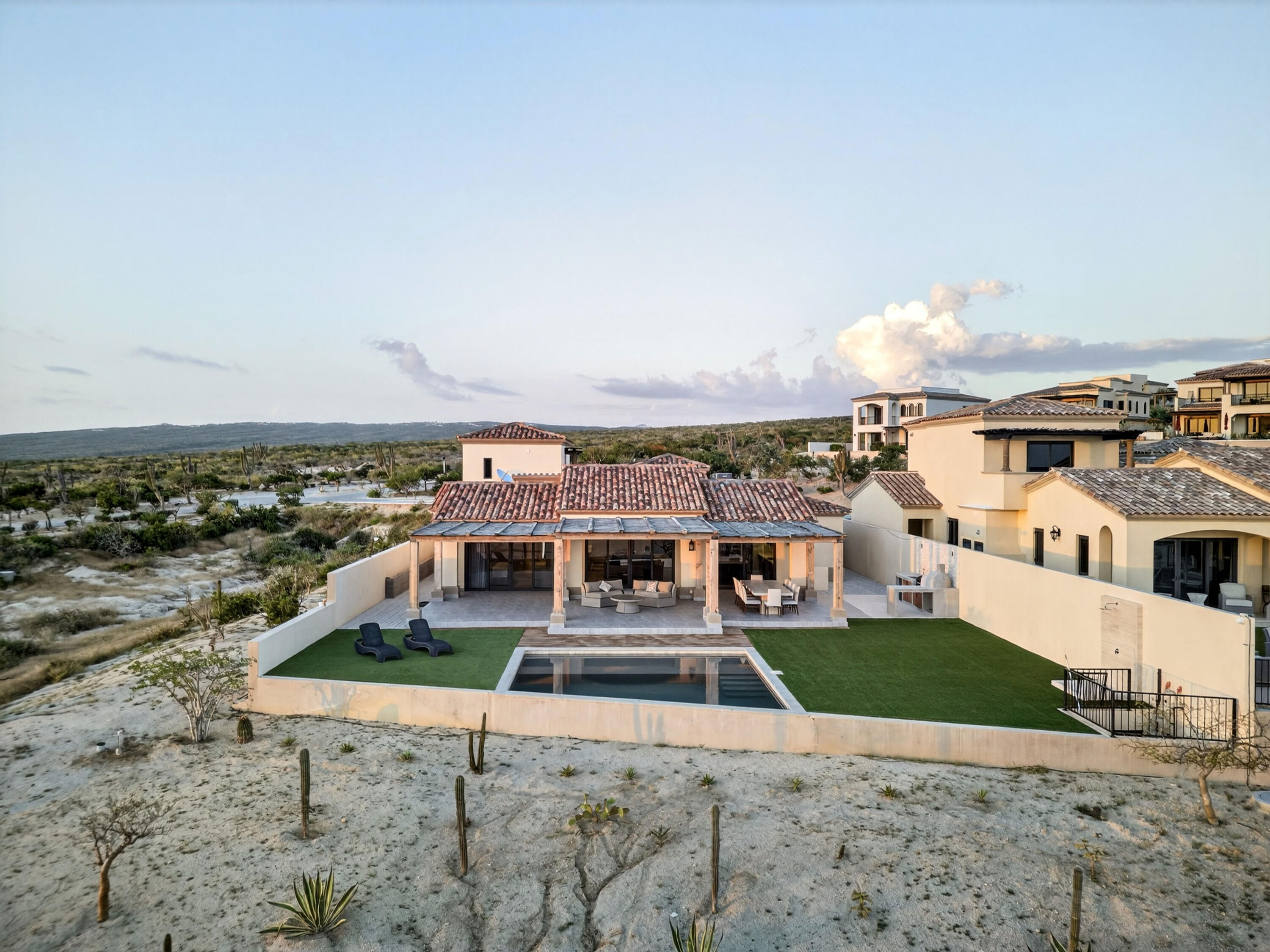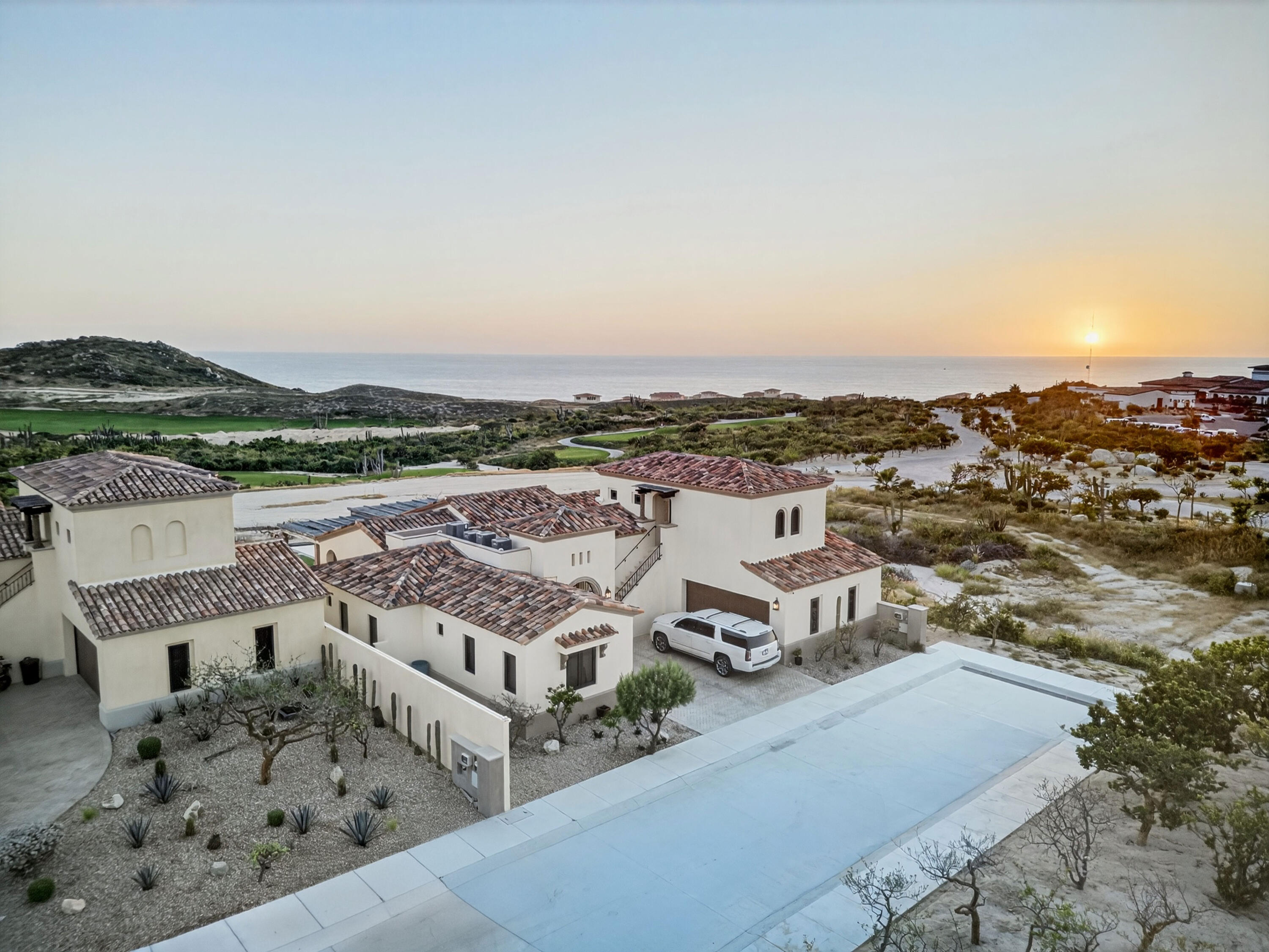 Villa #38 offers the largest lot in the community, measuring 8,046 square feet, with only one neighbor on one side. This allows you to enjoy spacious gardens and the tranquility of your surroundings. Experience luxury coastal living at its finest in this fully furnished, single-level residence located in the exclusive community of Rancho San Lucas. With panoramic views of the Pacific Ocean and Greg Norman's world-class golf course, Villa #38 combines timeless elegance with modern convenience. It features upgraded high ceilings, custom beams, designer lighting, granite countertops, and exquisite tile work throughout the fully equipped kitchen, which is enhanced with a stylish backsplash and exceptional custom cabinetry, along with ample island storage.
