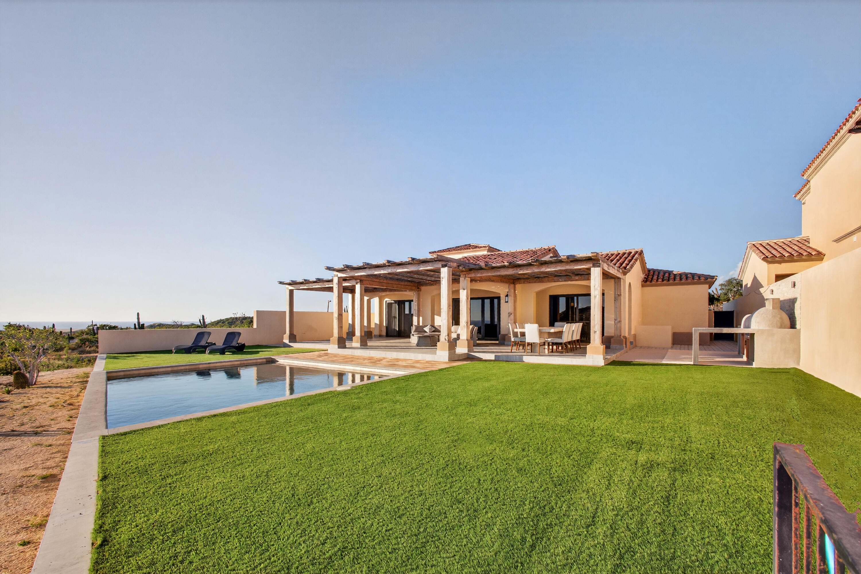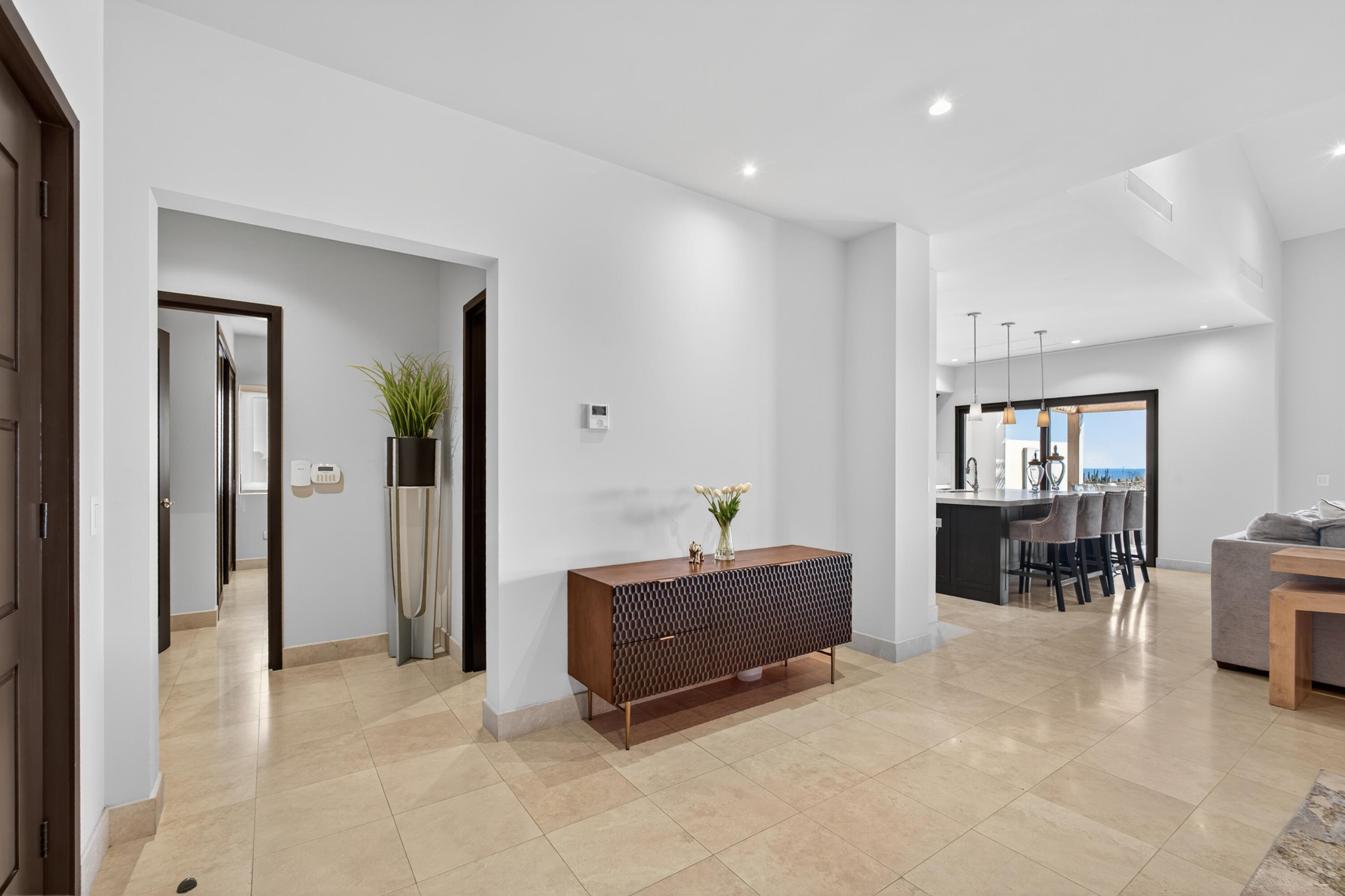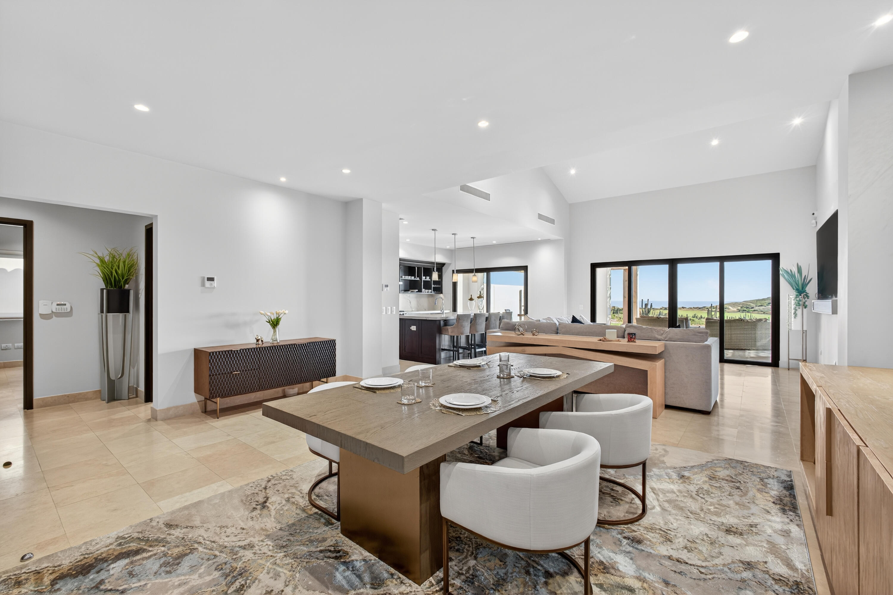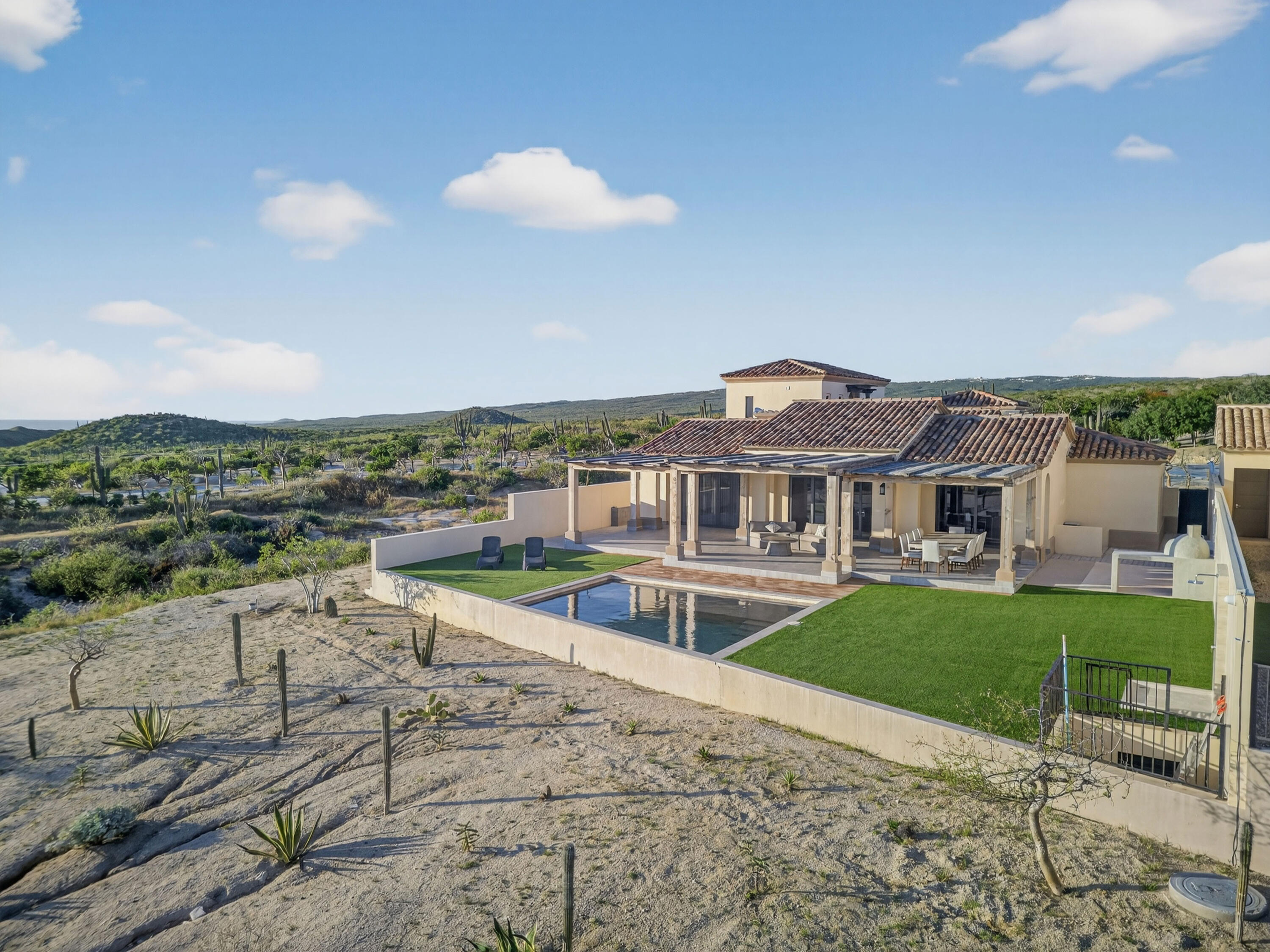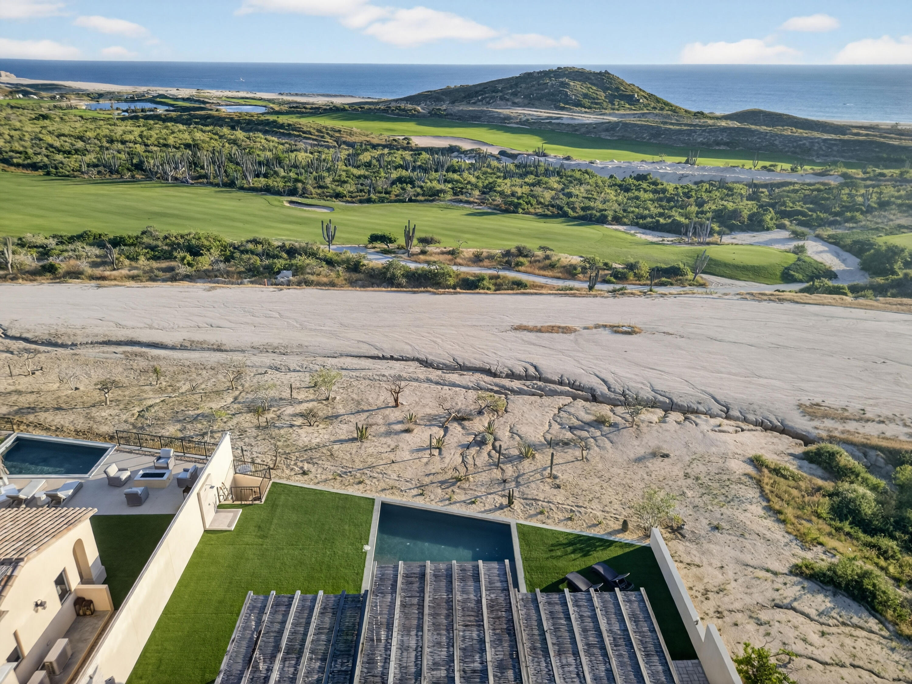 Villa #38 offers the largest lot in the community, measuring 8,046 square feet, with only one neighbor on one side. This allows you to enjoy spacious gardens and the tranquility of your surroundings. Experience luxury coastal living at its finest in this fully furnished, single-level residence located in the exclusive community of Rancho San Lucas. With panoramic views of the Pacific Ocean and Greg Norman's world-class golf course, Villa #38 combines timeless elegance with modern convenience. It features upgraded high ceilings, custom beams, designer lighting, granite countertops, and exquisite tile work throughout the fully equipped kitchen, which is enhanced with a stylish backsplash and exceptional custom cabinetry, along with ample island storage.
