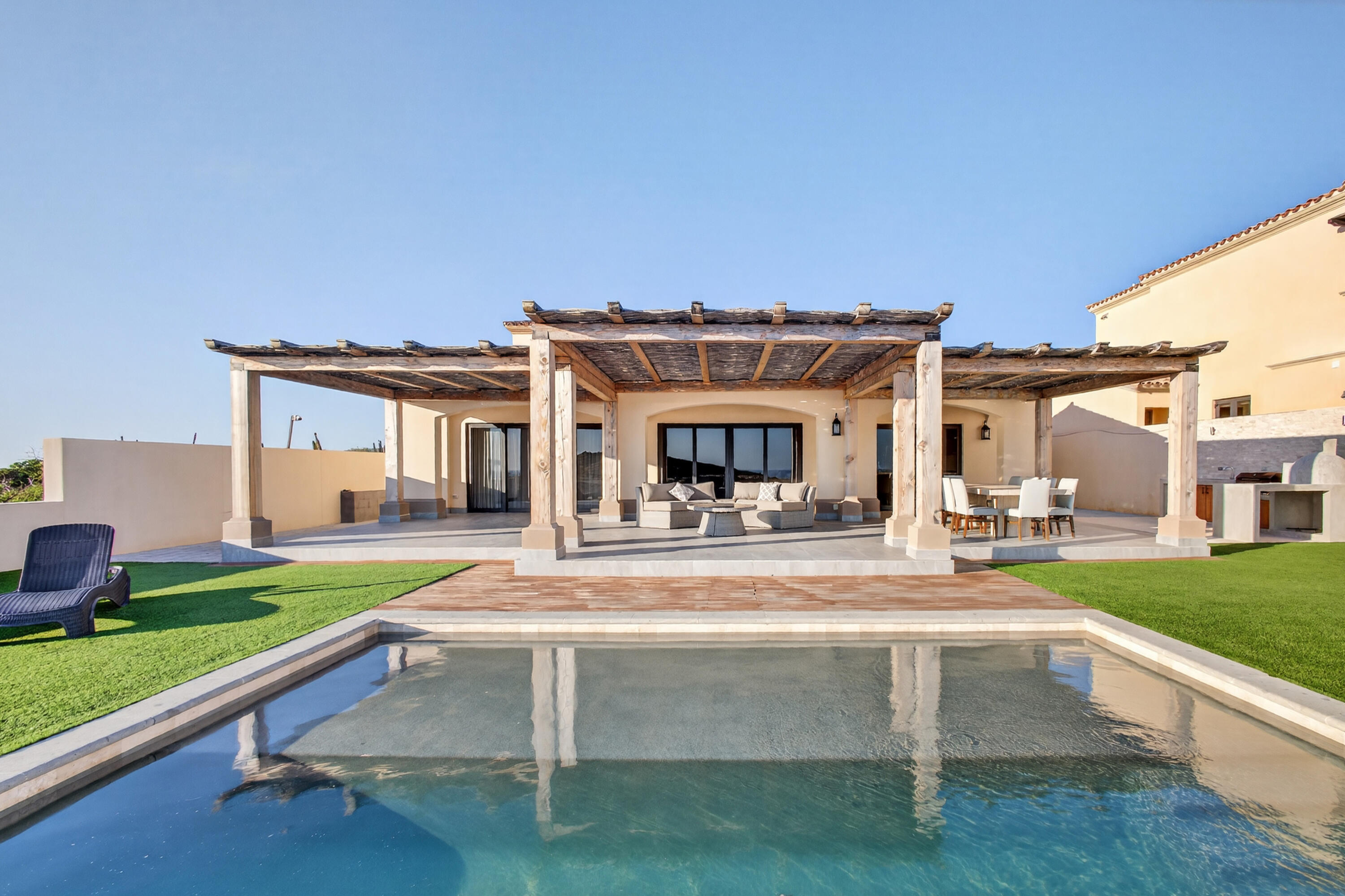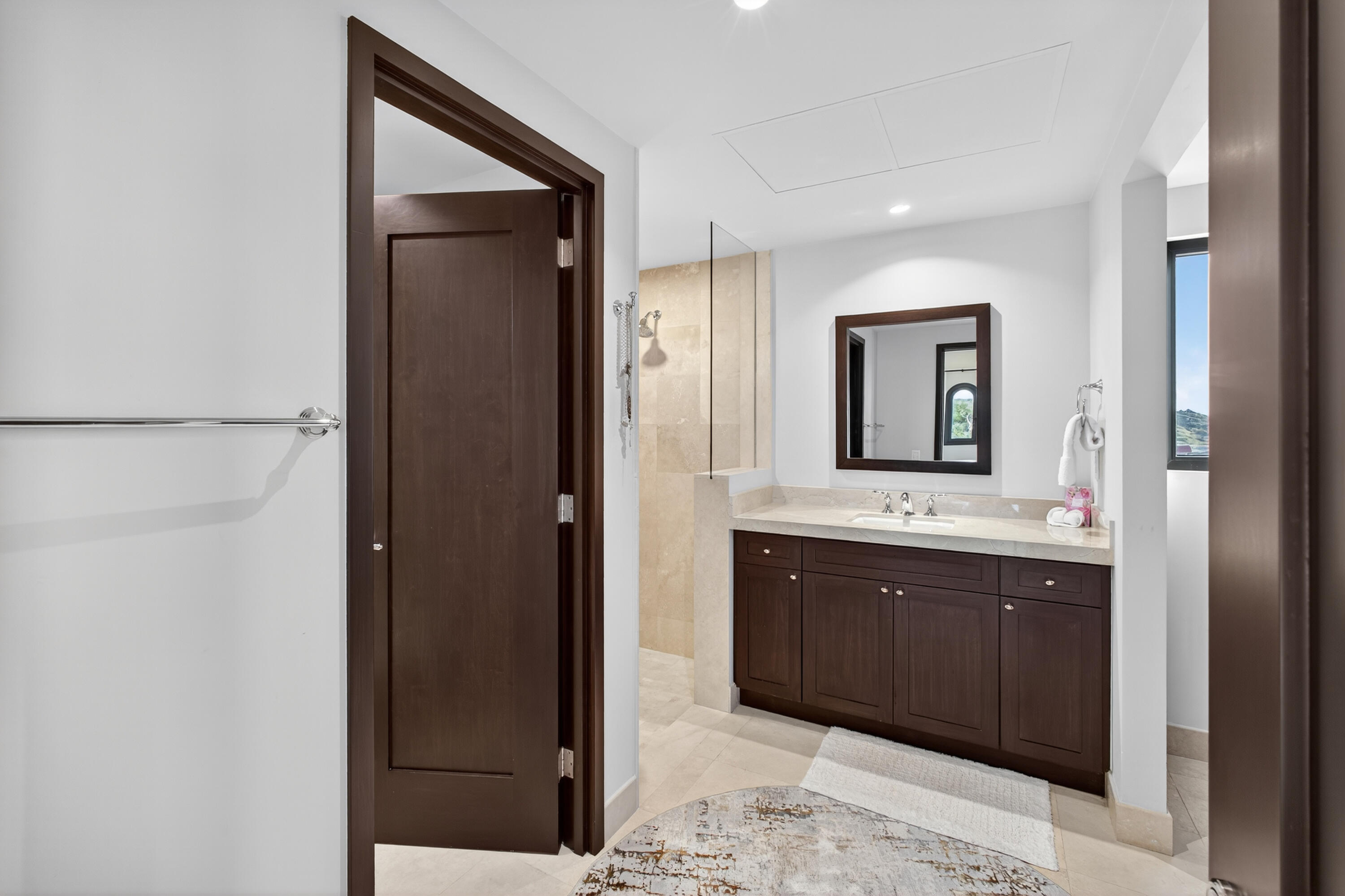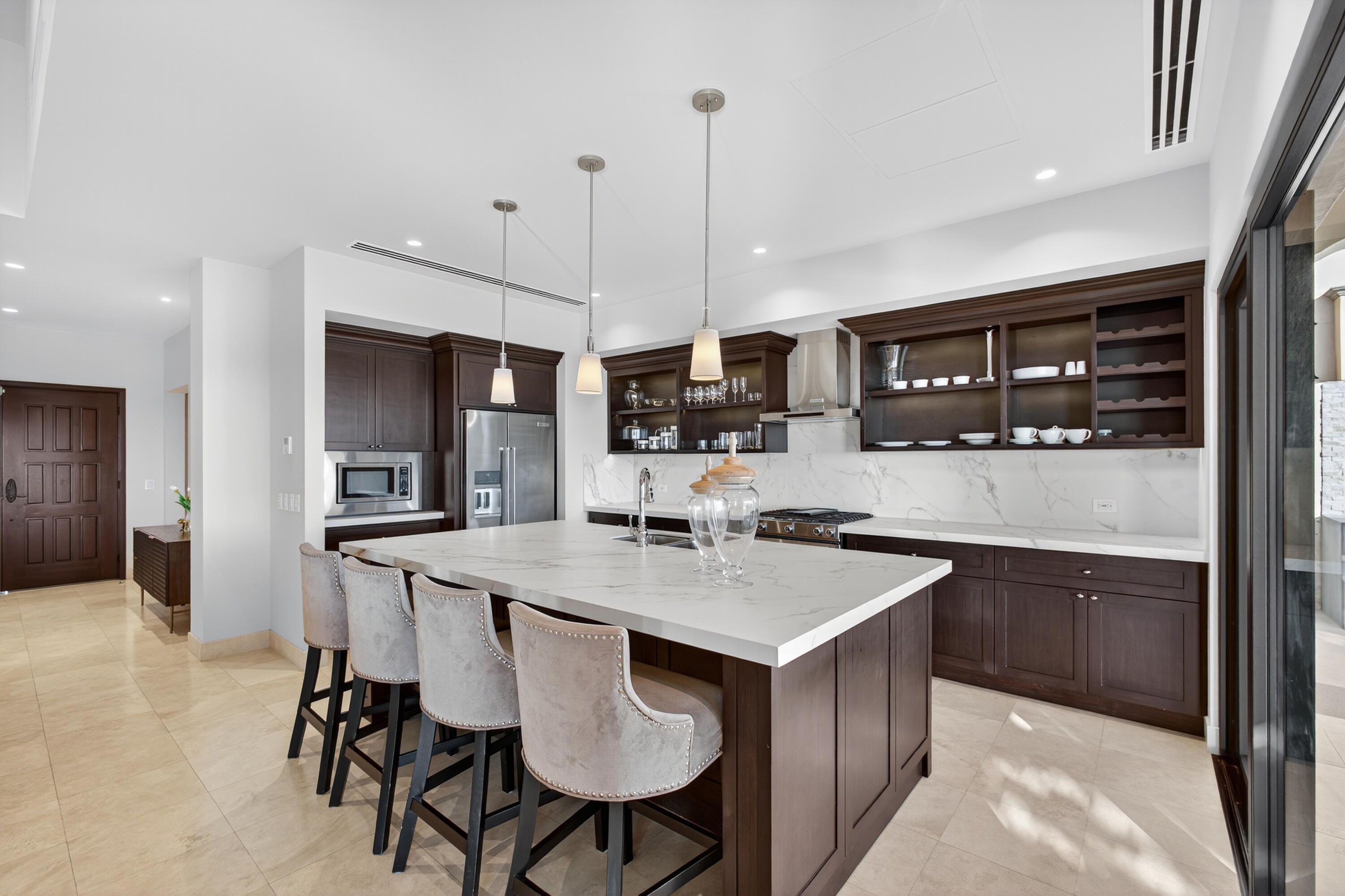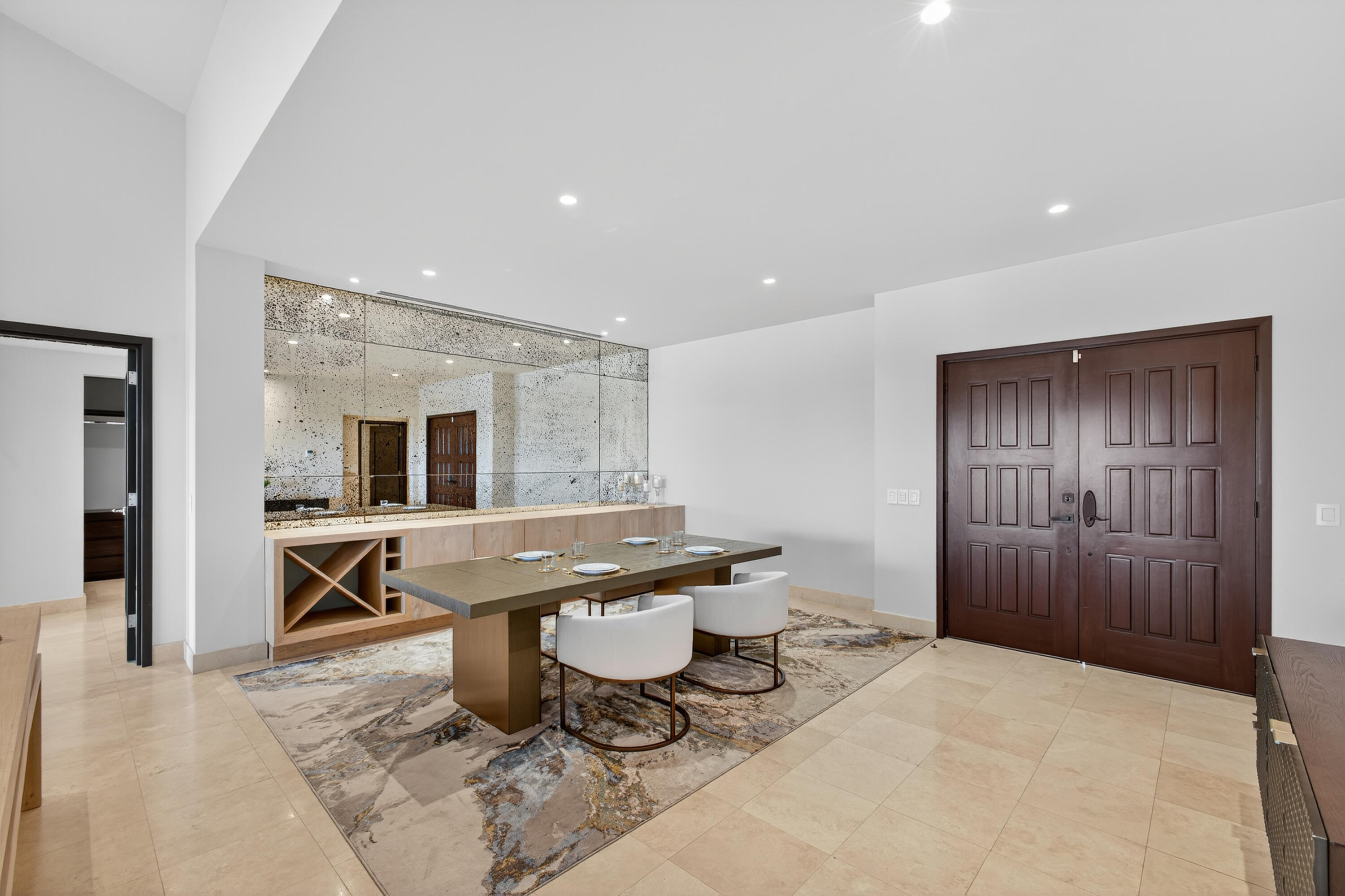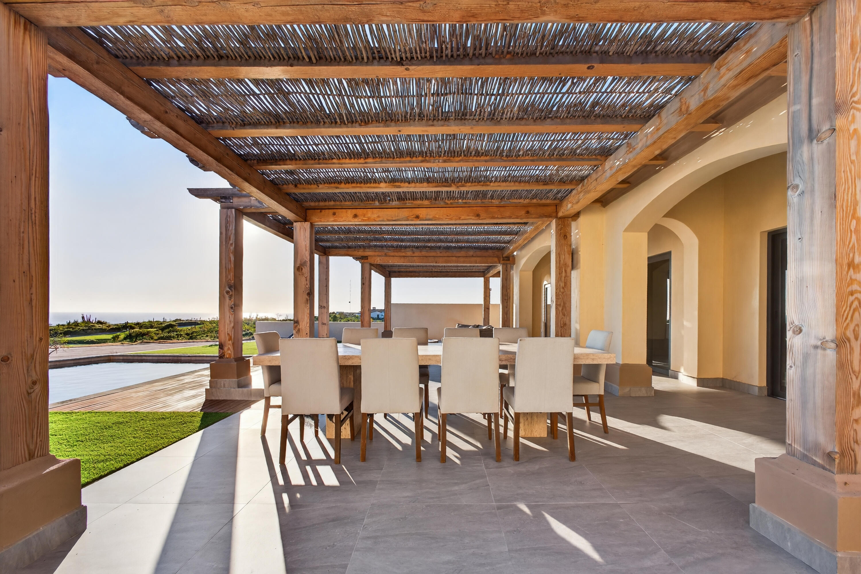 Villa #38 offers the largest lot in the community, measuring 8,046 square feet, with only one neighbor on one side. This allows you to enjoy spacious gardens and the tranquility of your surroundings. Experience luxury coastal living at its finest in this fully furnished, single-level residence located in the exclusive community of Rancho San Lucas. With panoramic views of the Pacific Ocean and Greg Norman's world-class golf course, Villa #38 combines timeless elegance with modern convenience. It features upgraded high ceilings, custom beams, designer lighting, granite countertops, and exquisite tile work throughout the fully equipped kitchen, which is enhanced with a stylish backsplash and exceptional custom cabinetry, along with ample island storage.