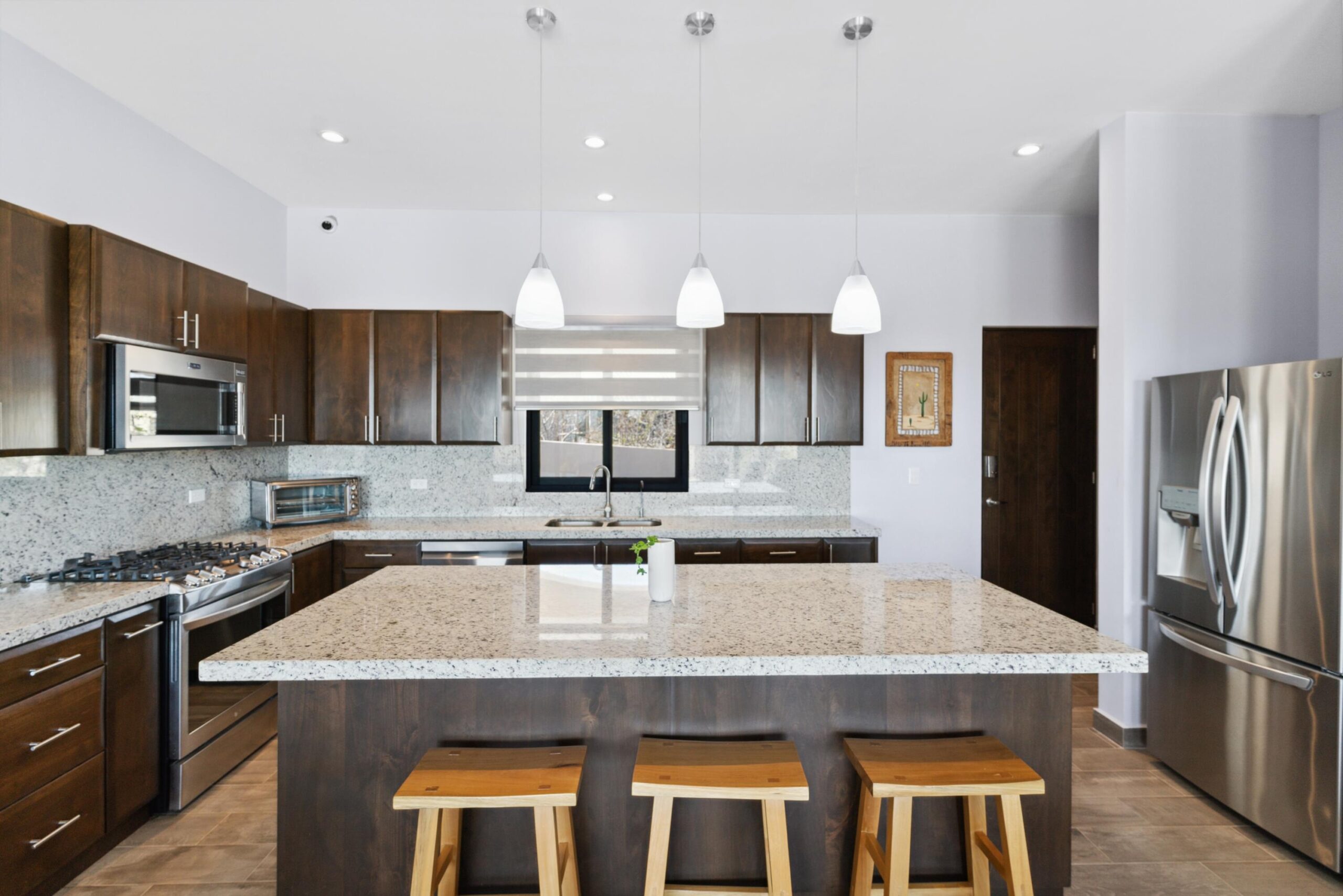 Up to 10% discount on lots and homes! Casa Tecolote is one of 6 models to be built in the master-planned community of Villas del Centenario, Casa Tecolote is a 3BR/2BA home with 180m2/1,941ft2 of interior living space opening onto a large 54m2/580ft2 covered patio with tiled roof. The stone front entry welcomes visitors into an open living/kitchen/dining area featuring 10' ceilings, a large built-in pantry, and dual sliding glass doors that open onto the terrace. Custom-built hardwood cabinetry, oversized tile, granite countertops and stainless appliances are included. The master suite has dual vanities in the bath, marble tiled shower and walk-in closets. The house also includes 2 guest BRs, a guest bath, laundry, A/C units and ceiling fans.