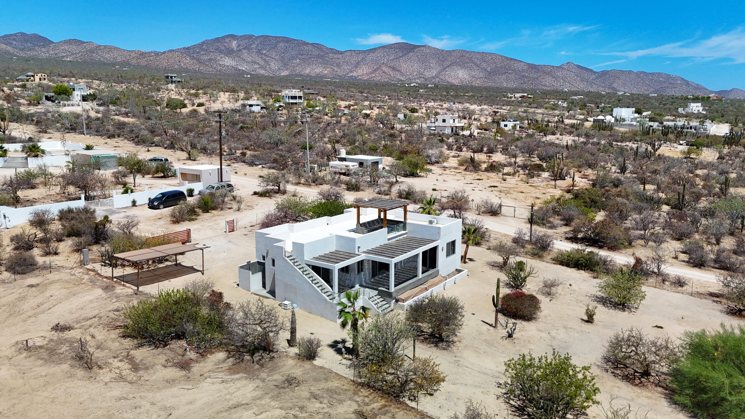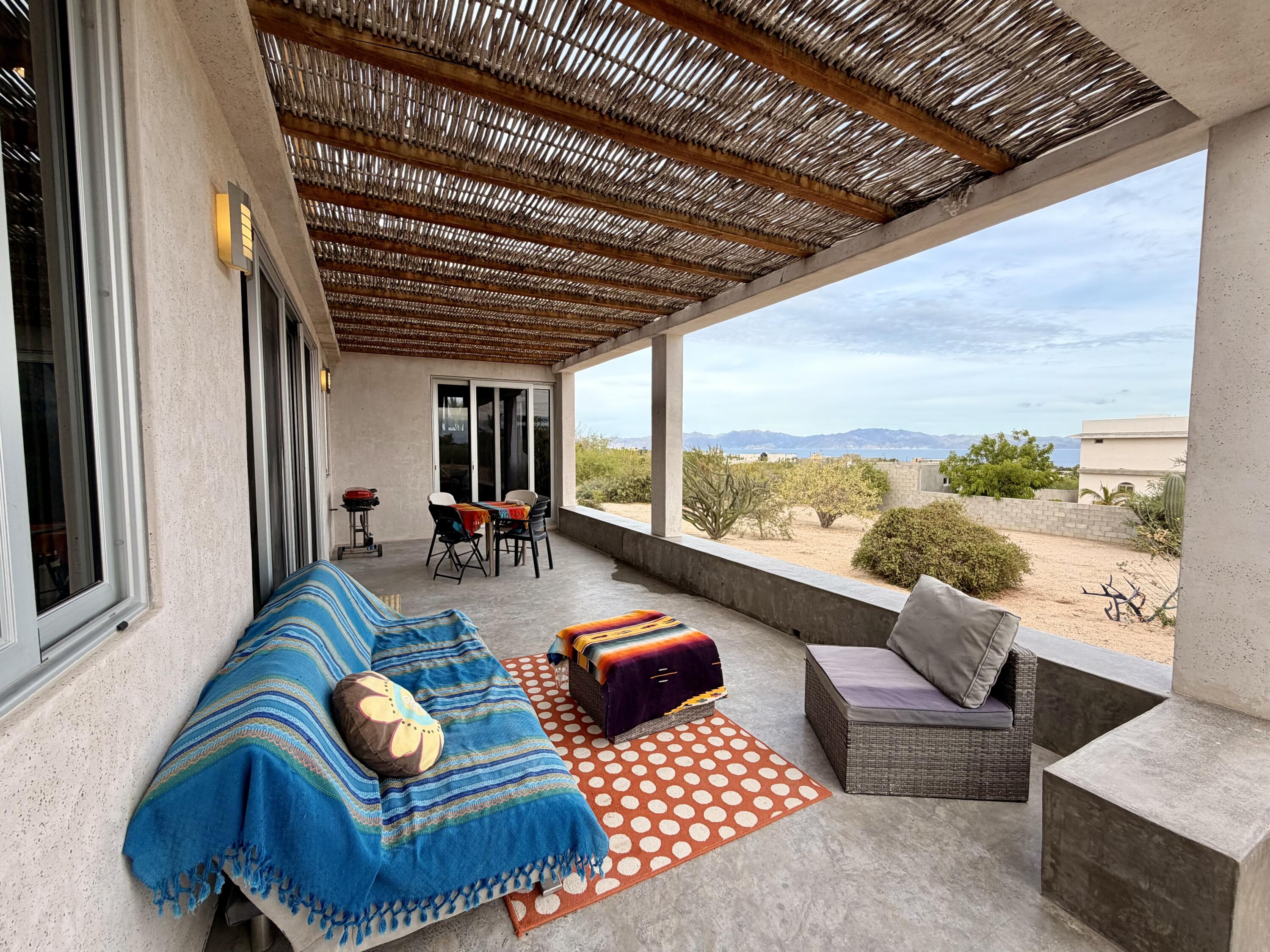 Casa Dawn is a beautiful, must see home in the La Ventana/El Sargento area! Constructed and finished in 2020, this fully complete, titled home offers two large bedrooms and two full bathroom with a great floorpan and fantastic outdoor living spaces. Situated on a gigantic 1,600m2 lot, offering plenty of space to expand, build a pool or garage and the opportunity to landscape and create your own Baja oasis. The views to the Sea of Cortez are established with well constructed homes in the surrounding neighbourhood. Casa Dawn utilizes natural light with quality, big windows and sliding doors. An outdoor shower, storage room, planter boxes with garden, and a rooftop fire place! Casa Dawn is a must see.