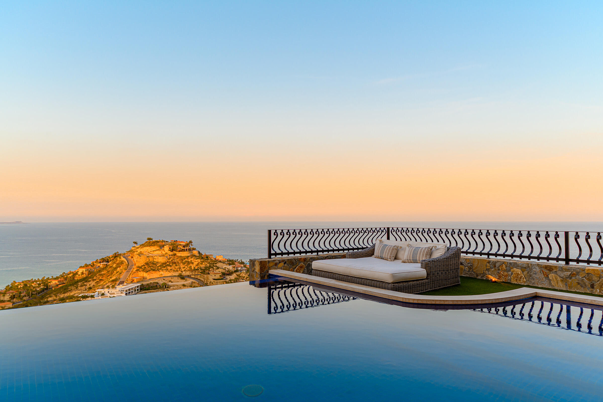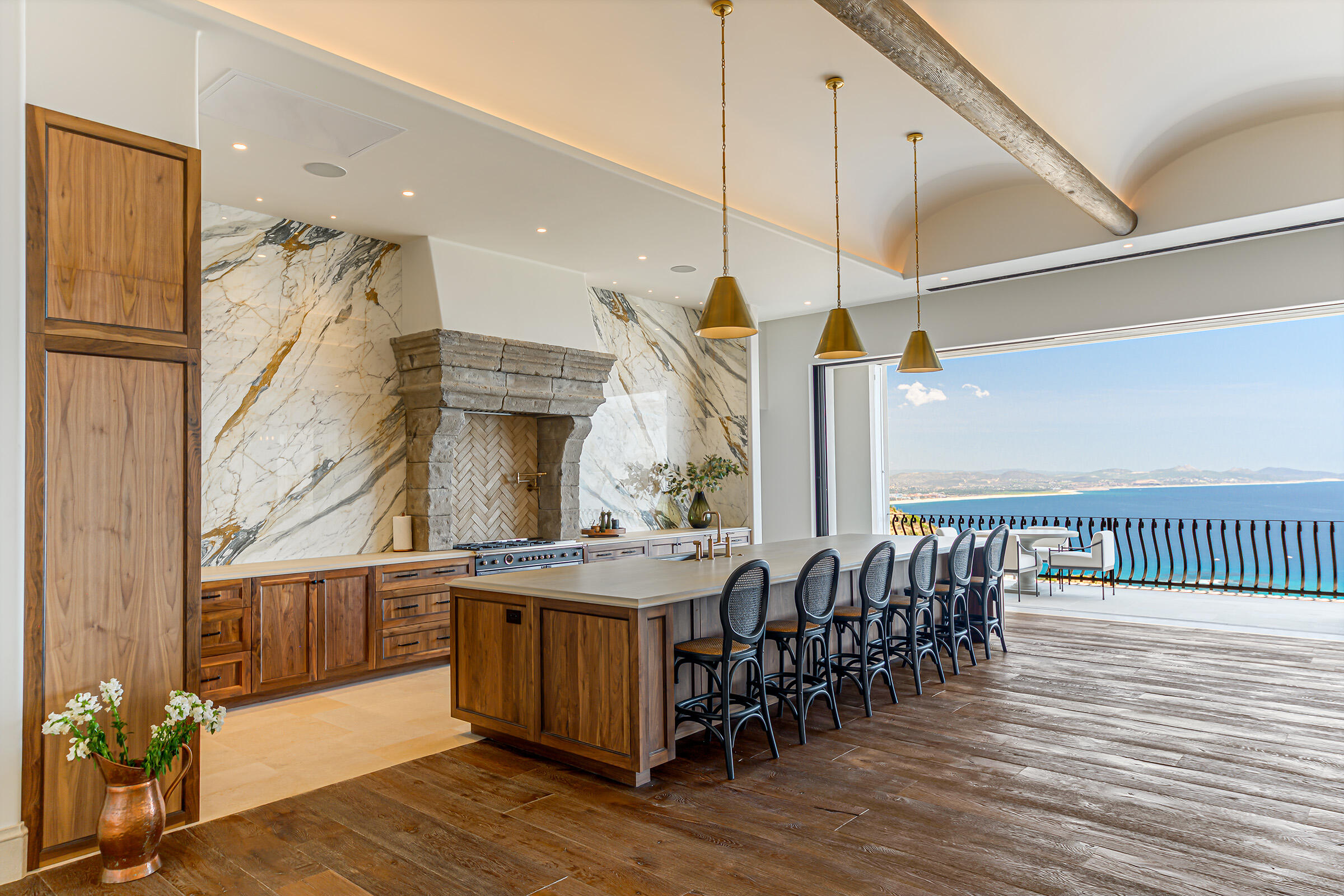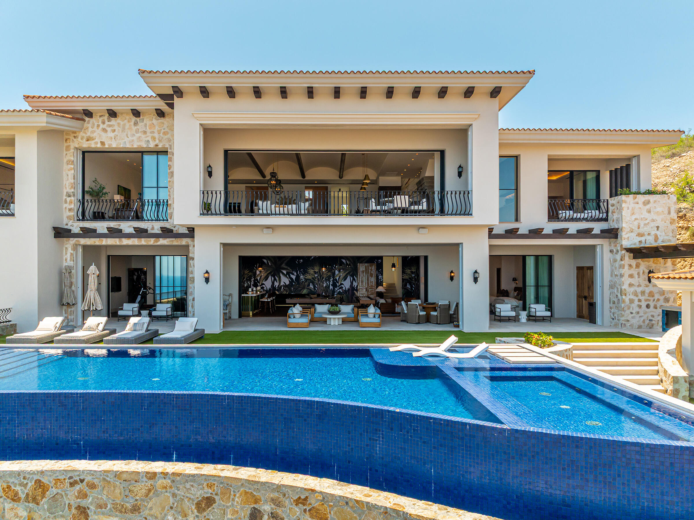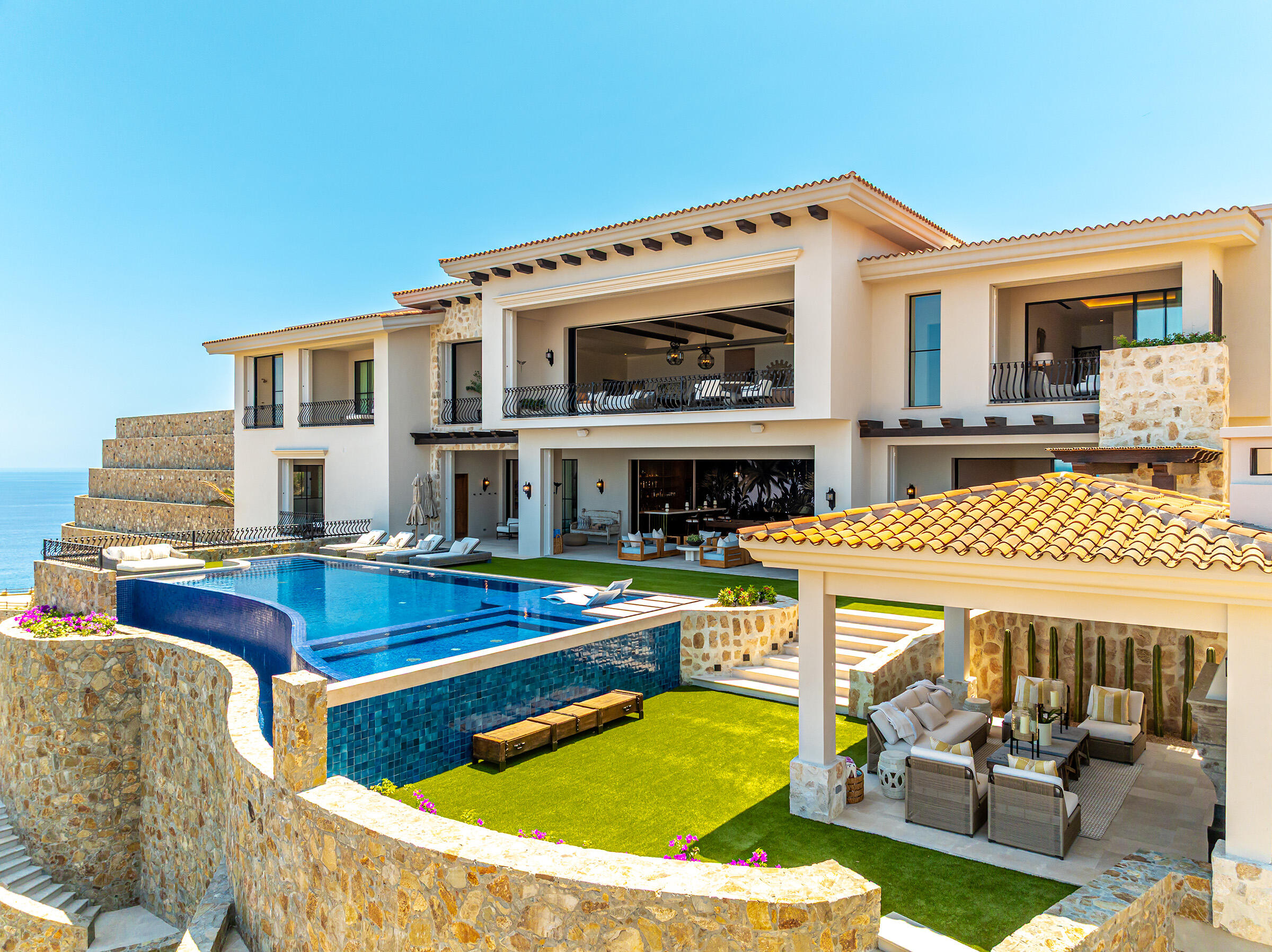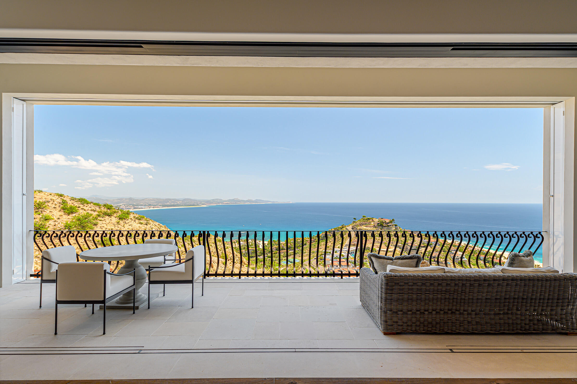 Perched atop the highest hill in Palmilla, this brand-new construction is set within one of the most exclusive neighborhoods in Villas Del Mar. This 6-bedroom, 6-bathroom residence features panoramic views of San José Bay and the Sea of Cortez. Located at the end of a private cul-de-sac, it offers unmatched privacy with no direct neighbors. The home includes a spacious game room and spans 10,639 sq. ft. of living space.