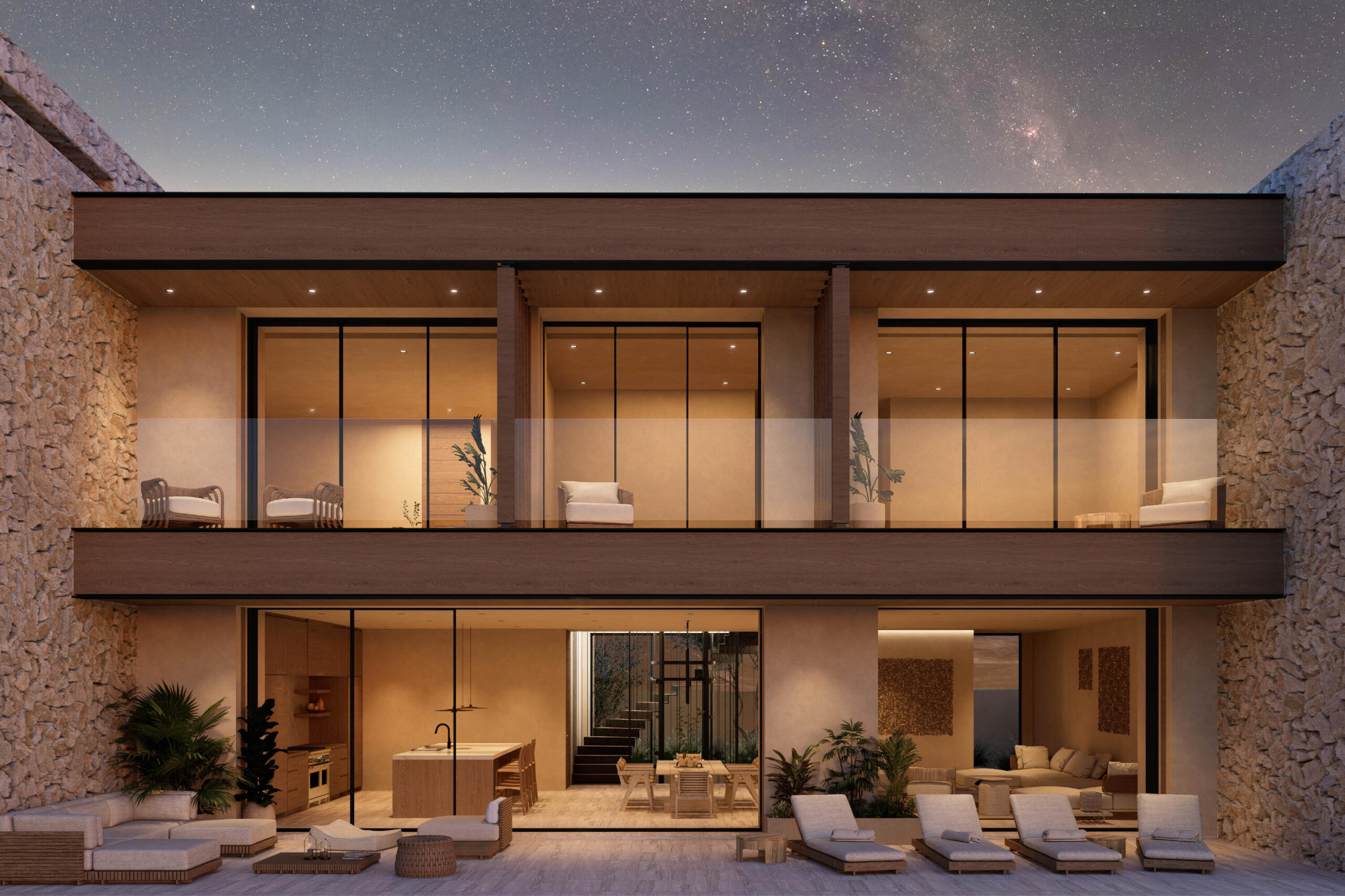 El Lago features 16 single-family villas with vertical living layouts of two and three levels, maximizing views and social space for families and friends. Inspired by the Baja with welcoming and grounded earth tones, the residences offer modern living and timeless elegance within Los Cabos' most vibrant private community. The Ascendant villas feature living spaces - gourmet kitchen, dining, great room and family rooms on the main floor - seamlessly flowing to the outdoor terrace and pool. Upstairs are 3 bedrooms* complete with ensuite baths and terraces overlooking the Querencia lake, Sea of Cortez, mountains and arroyo. Two-car garage and double golf cart parking, storage and flex space on the ground level with the main entrance. *4 bedroom options are available.