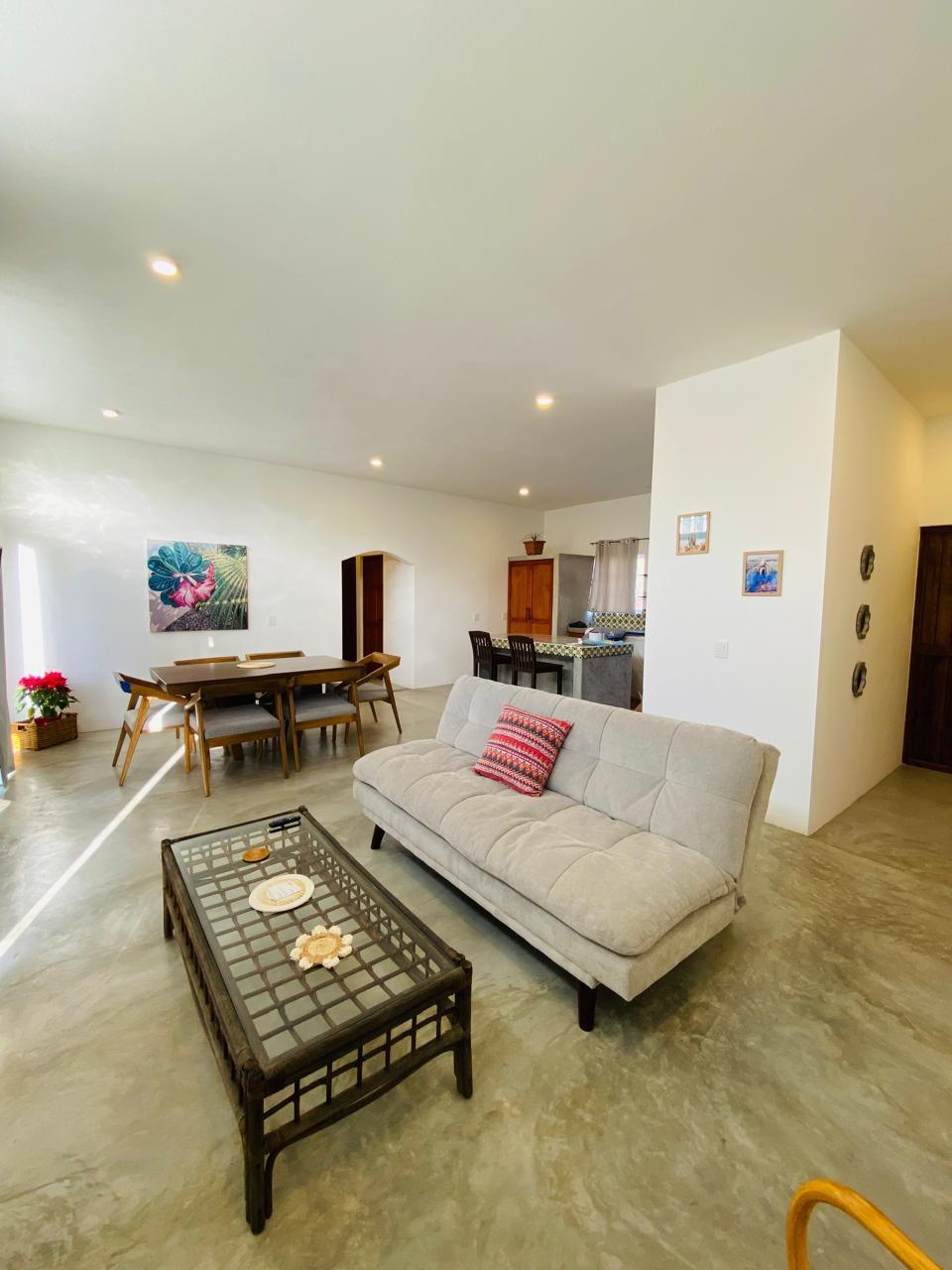 This brand-new, traditional-style home blends modern design with authentic Mexican charm. The residence features an open floor plan with double access to an expansive terrace, along with a spacious primary bedroom and ensuite bath. The kitchen is the heart of the home, where tradition and functionality blend into a warm and inviting space. With a central island, with talavera accesnts, that invites you to cook and share, this kitchen is perfect for those who love the art of cooking. Situated on a corner lot, the property offers dual access points via the main garage and the rear of the home. The grounds are beautifully landscaped with lush, mature greenery. Located in one of the most well-established neighborhoods in Todos Santos, this home is just a 10-minute walk from downtown.