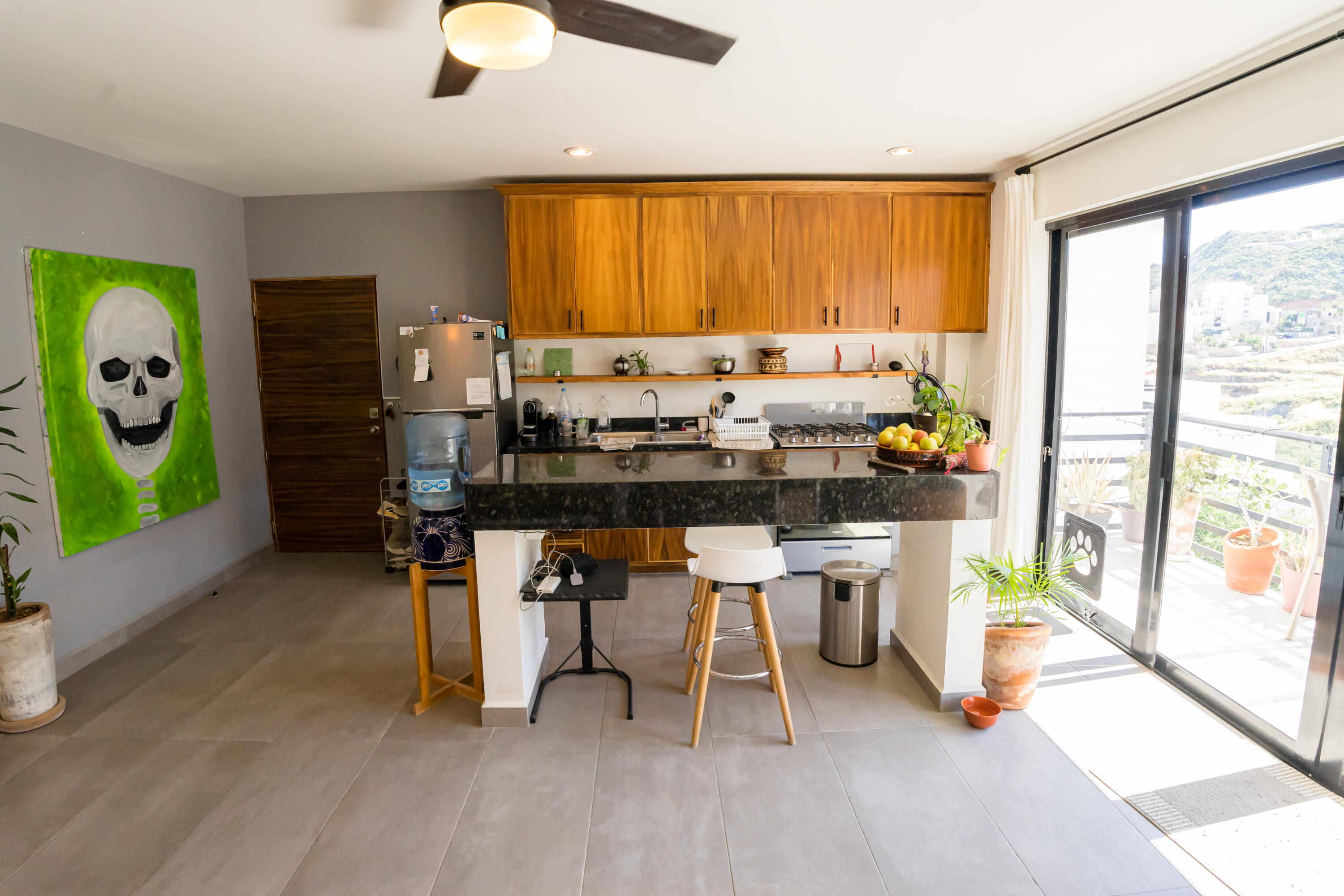 Spacious 1Br Turn Key Condo, just minutes walking to Downtown Cabo! Ready to move in, partly furnished with Sofa, Coffee Table, King Size bed, Side Tables. Top floor with beautiful Mountain views, an oversized Bedroom, and giant walk in closet! Just minutes walking to 100s of Bars & Restaurants. To Rent or Retire in there is no more competitive unit in the neighborhood! (Whatsapp 24hrs in advance for showings)