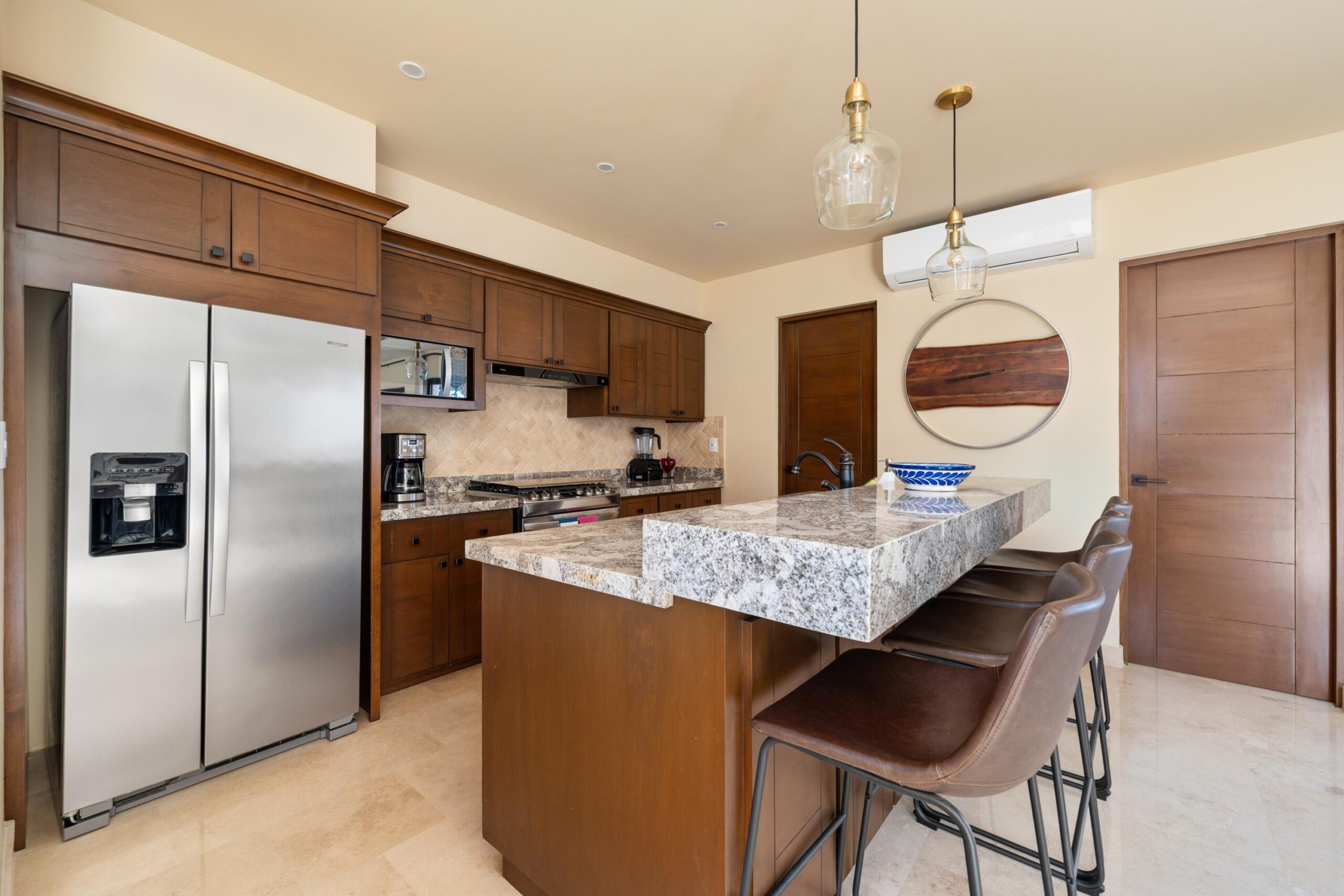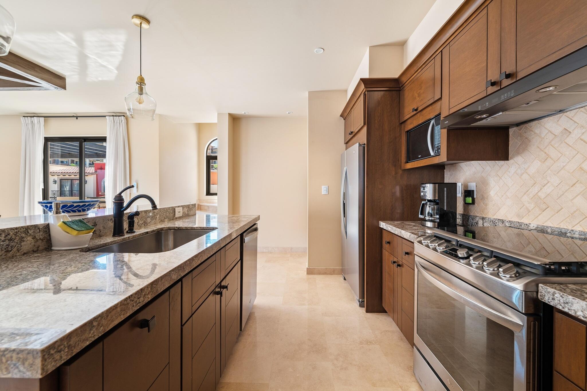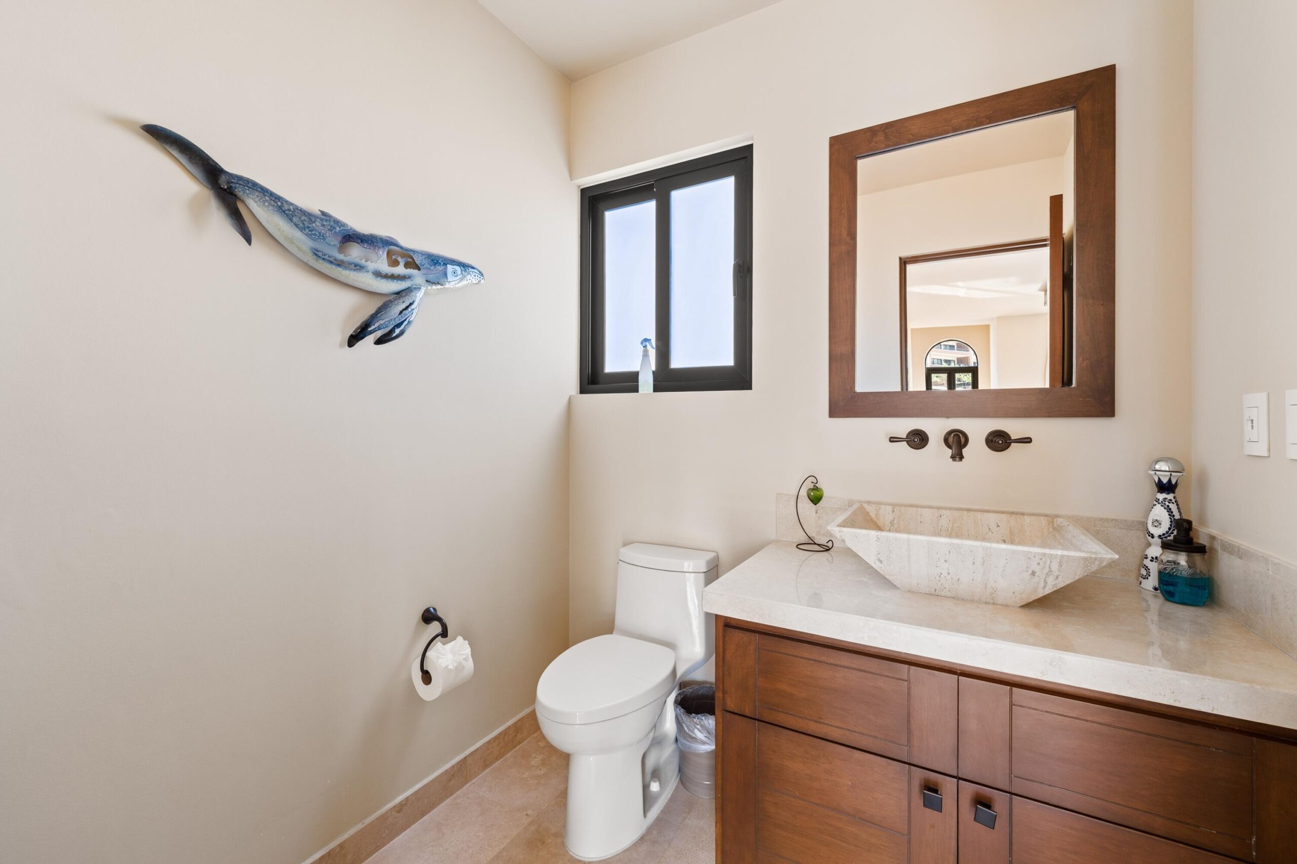 3-Bedroom Home with Rooftop Firepit, Sauna, and Ocean Views in Copala at Quivira. Discover refined living in this stunning 3-bedroom, 2.5-bathroom home offering 488.88 m² of thoughtfully designed space in the prestigious community of Copala at Quivira Los Cabos. Blending modern comfort with timeless details, this residence is in immaculate condition and move-in ready. The primary suite serves as a private retreat with a luxurious ensuite bathroom featuring a double vanity and an oversized walk-in closet, while the two additional bedrooms each offer spacious closets and share a well-appointed full bathroom.