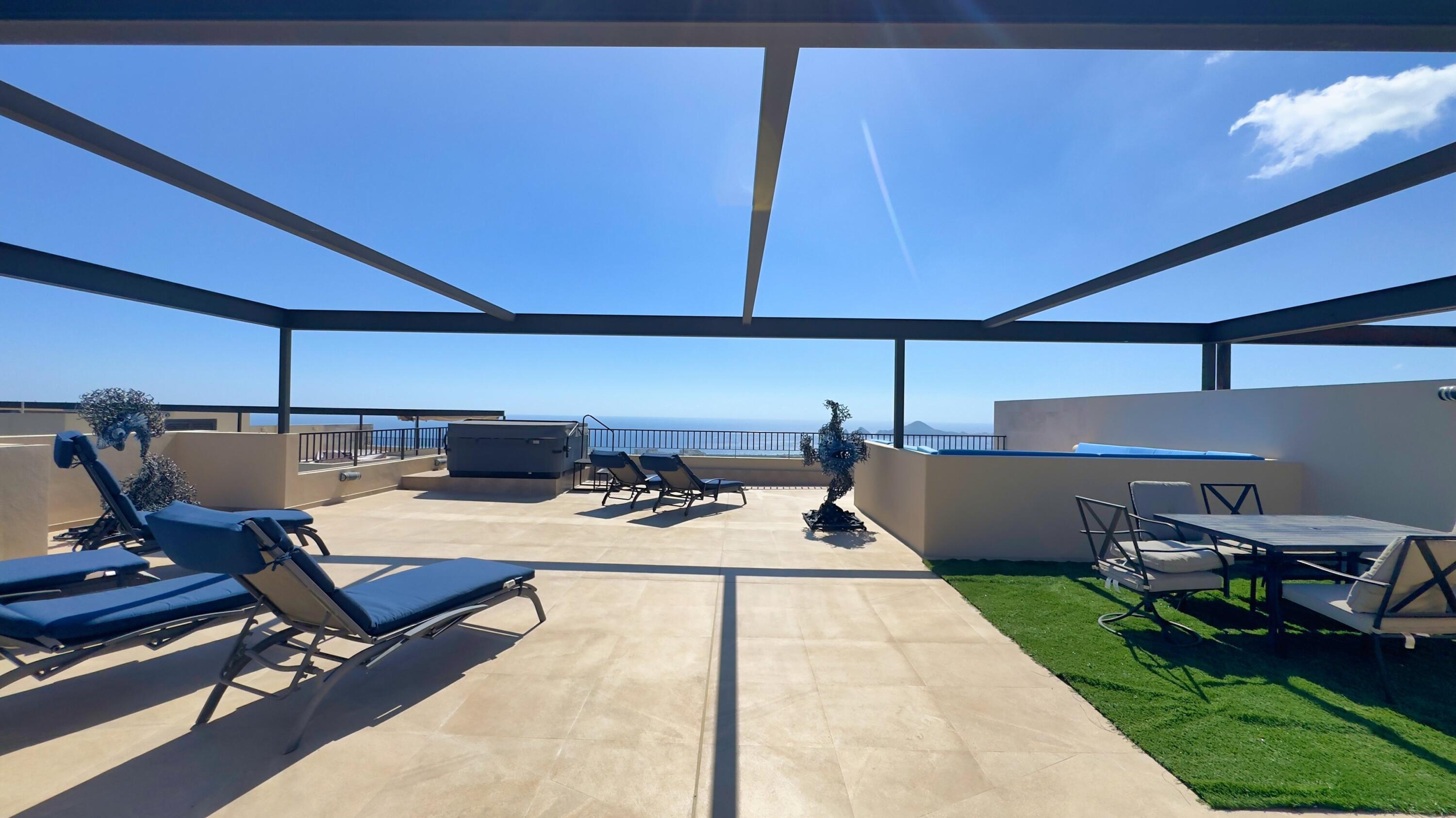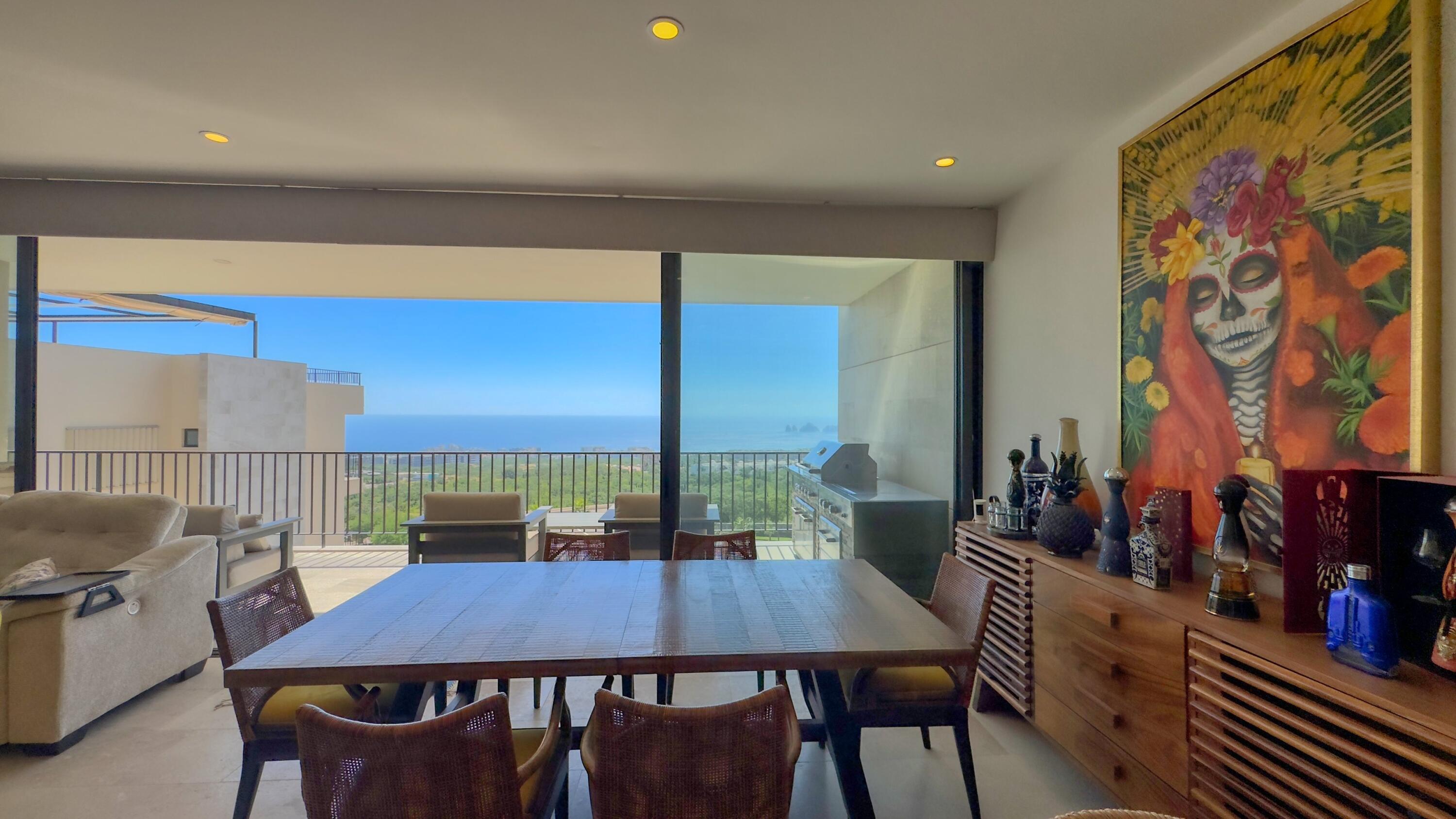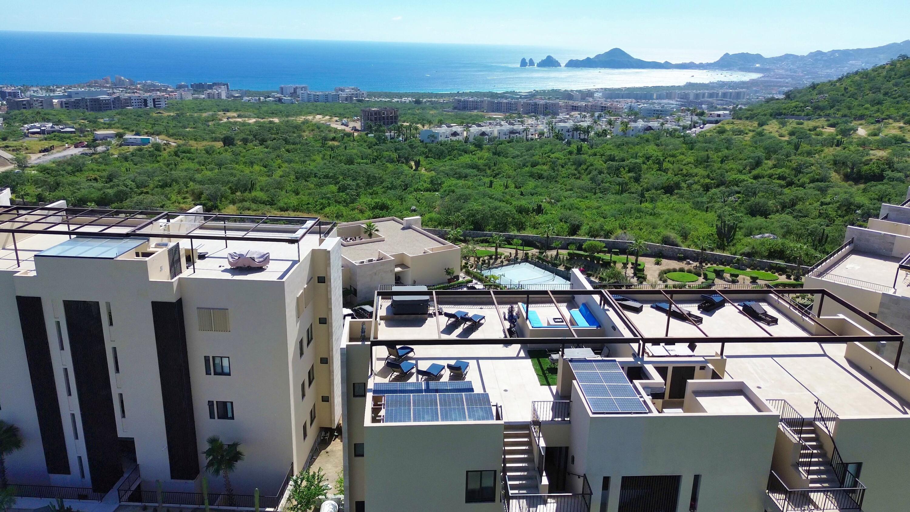 SELLER FINANCING AVAILABLE. This luxury 3-bedroom penthouse in Solaria Los Cabos offers exceptional ocean view living in one of the most desirable communities in the Cabo Corridor. Located in El Tezal, it features panoramic views of the Cabo Arch, Pacific Ocean, and Sea of Cortez. The open-concept design includes high-end finishes, a private terrace, and a rooftop with Bullfrog spa, fire pit, and stunning sunset views. Energy-efficient upgrades include a solar system and full water purification. Solaria provides resort-style amenities—Infinity pools, gym, spa, pickleball, concierge, and 24/7 security. Ideal for Cabo real estate buyers seeking a luxury vacation home or high-performing investment property.