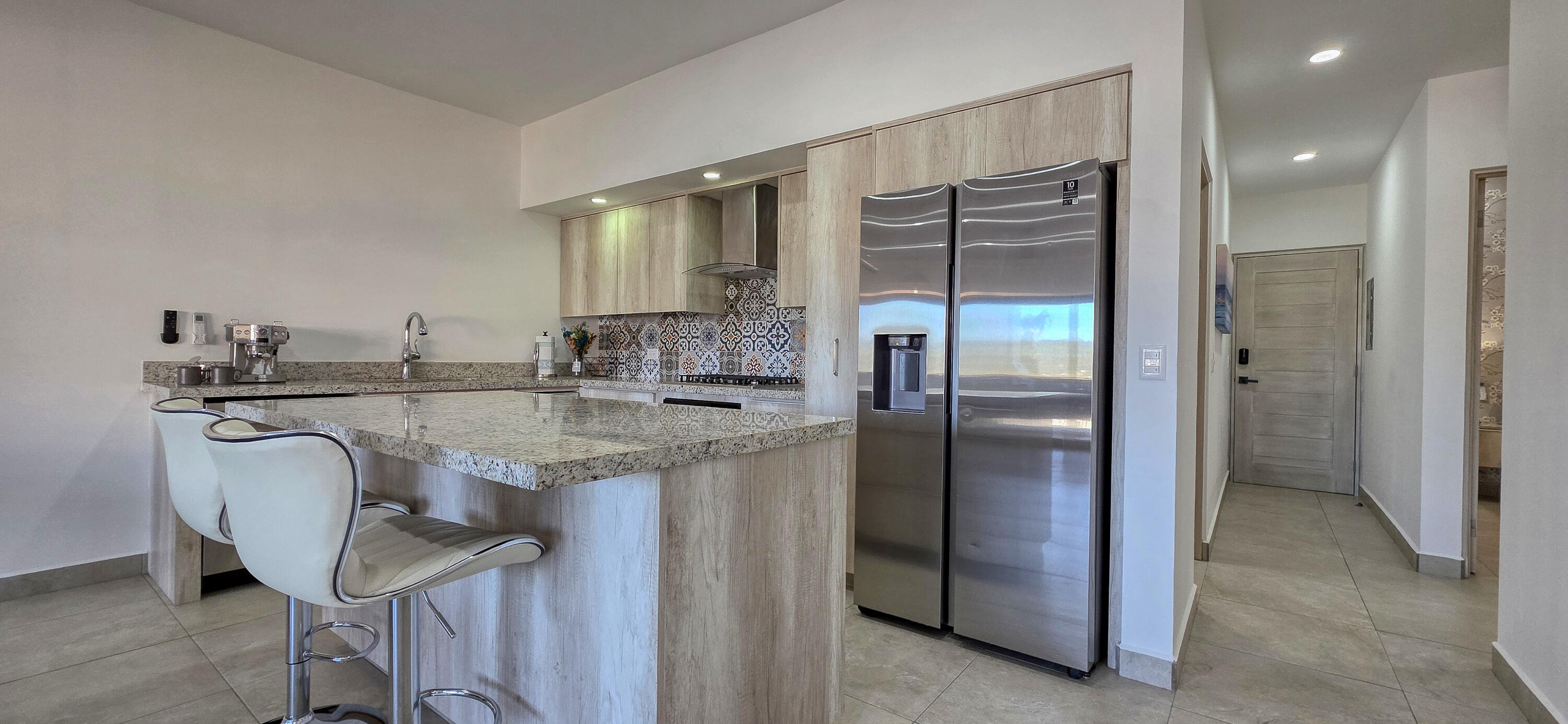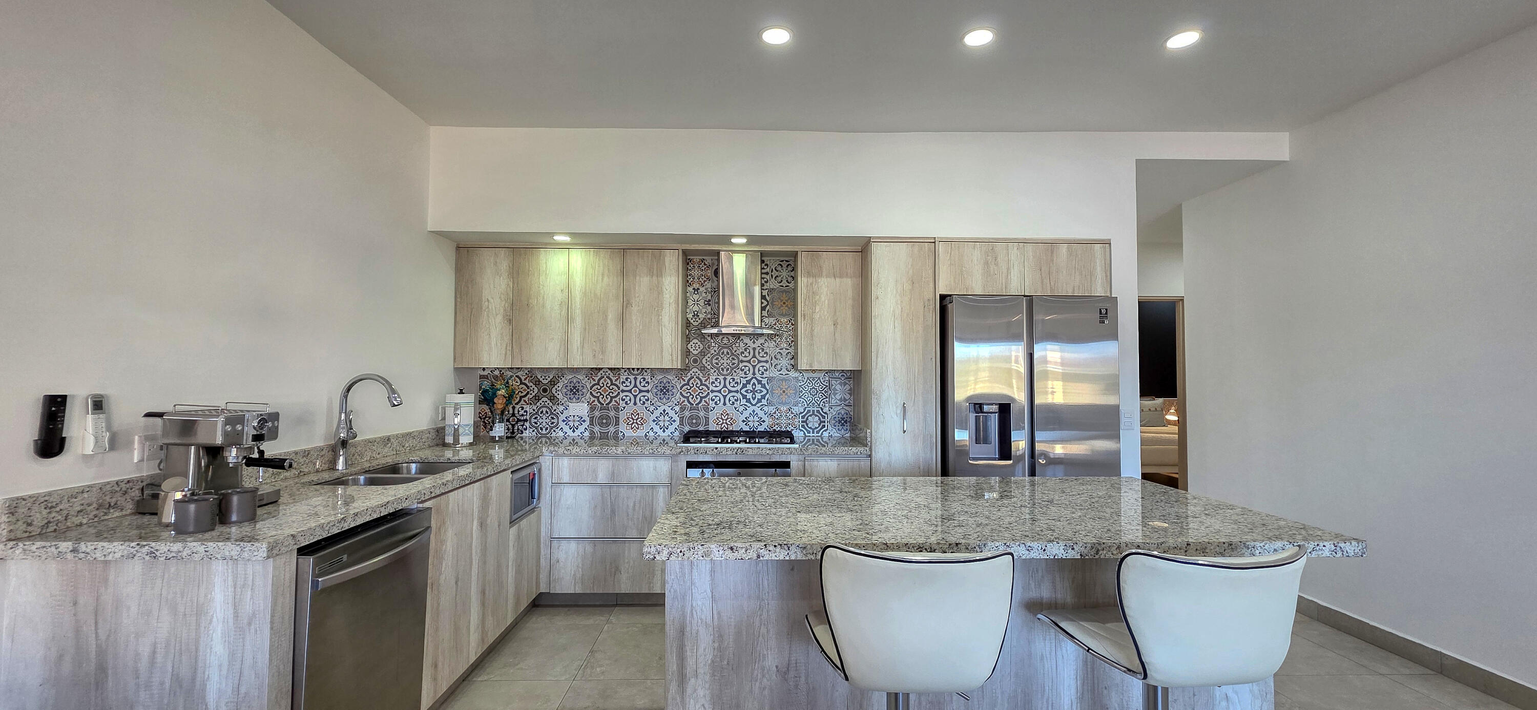 Experience elevated coastal living in this fully equipped 3-bedroom, 3-bathroom condo located in the exclusive Pedregal Towers of Cabo San Lucas. Each bedroom features built-in closets and abundant natural light, while the bathrooms are outfitted with premium fixtures and modern finishes. The gourmet kitchen is designed for both function and style, with high-end appliances, granite countertops, and custom cabinetry that flow seamlessly into the open-concept living and dining areas. Comfort is built into every corner, with individual mini-split air conditioning units in each room, in-unit laundry, and turnkey furnishings for effortless move-in. The secure building offers elevator access, gated entry, and dedicated parking. Residents enjoy access to a range of upscale amenities,