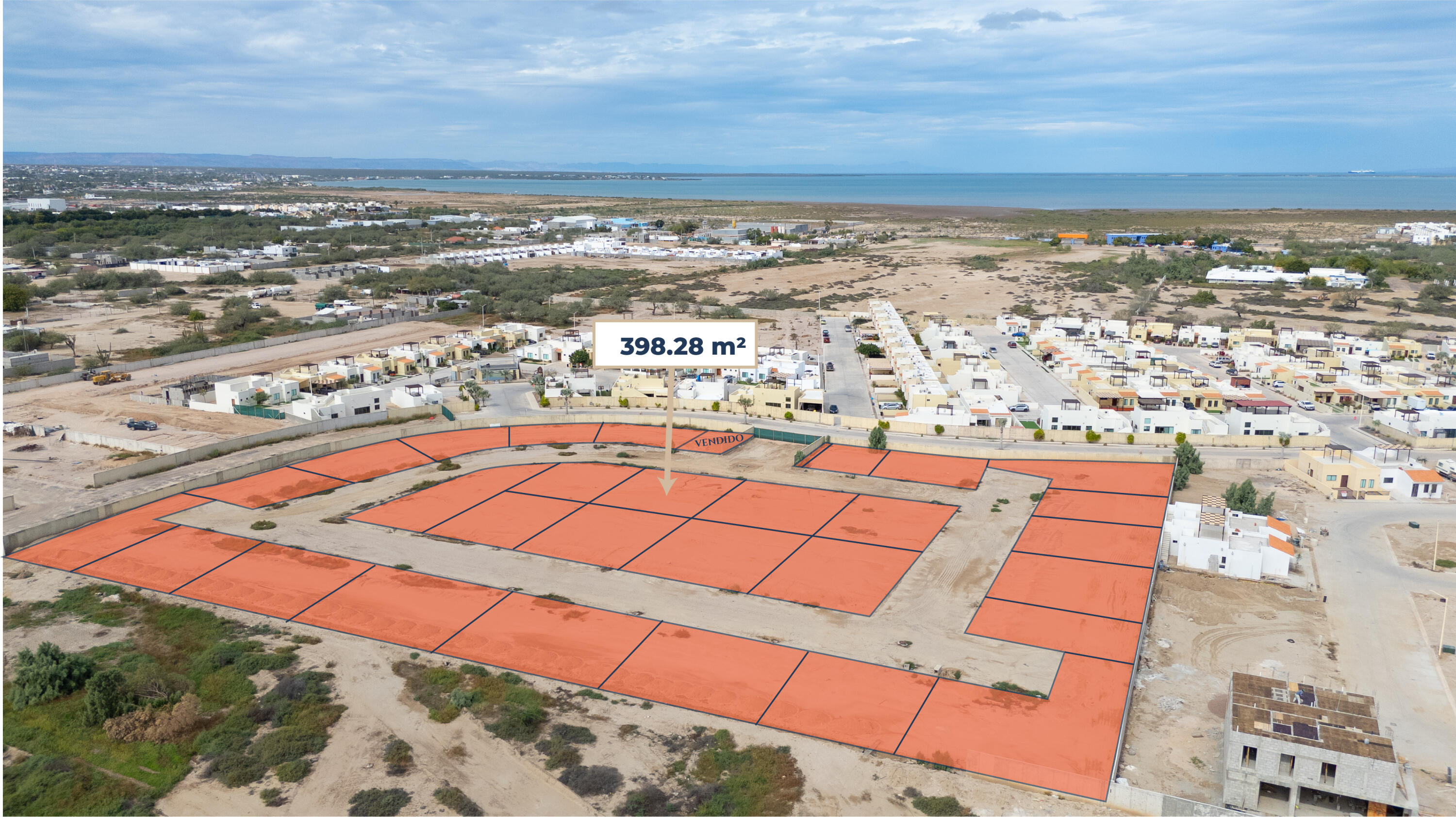 Residential lots for sale in Portobello Residencial, Coto 4, located in El Centenario, La Paz, Baja California Sur, easy access to the Transpeninsular Highway. The development will be delivered with concrete roads, sidewalks and curbs. Underground utilities will be available at the lot line, including city water (SAPA), sewer and electricity, with public lighting installed as part of the project. Gated community, controlled access, 24/7 security. Zoned for single-family residential use with no construction time limit and allowance for vacation rentals. Each lot will include individual fee simple title and cadastral registration. HOA fee is $575 MXN per month for vacant lots, $1,150 MXN when your DREAM house is ready.
