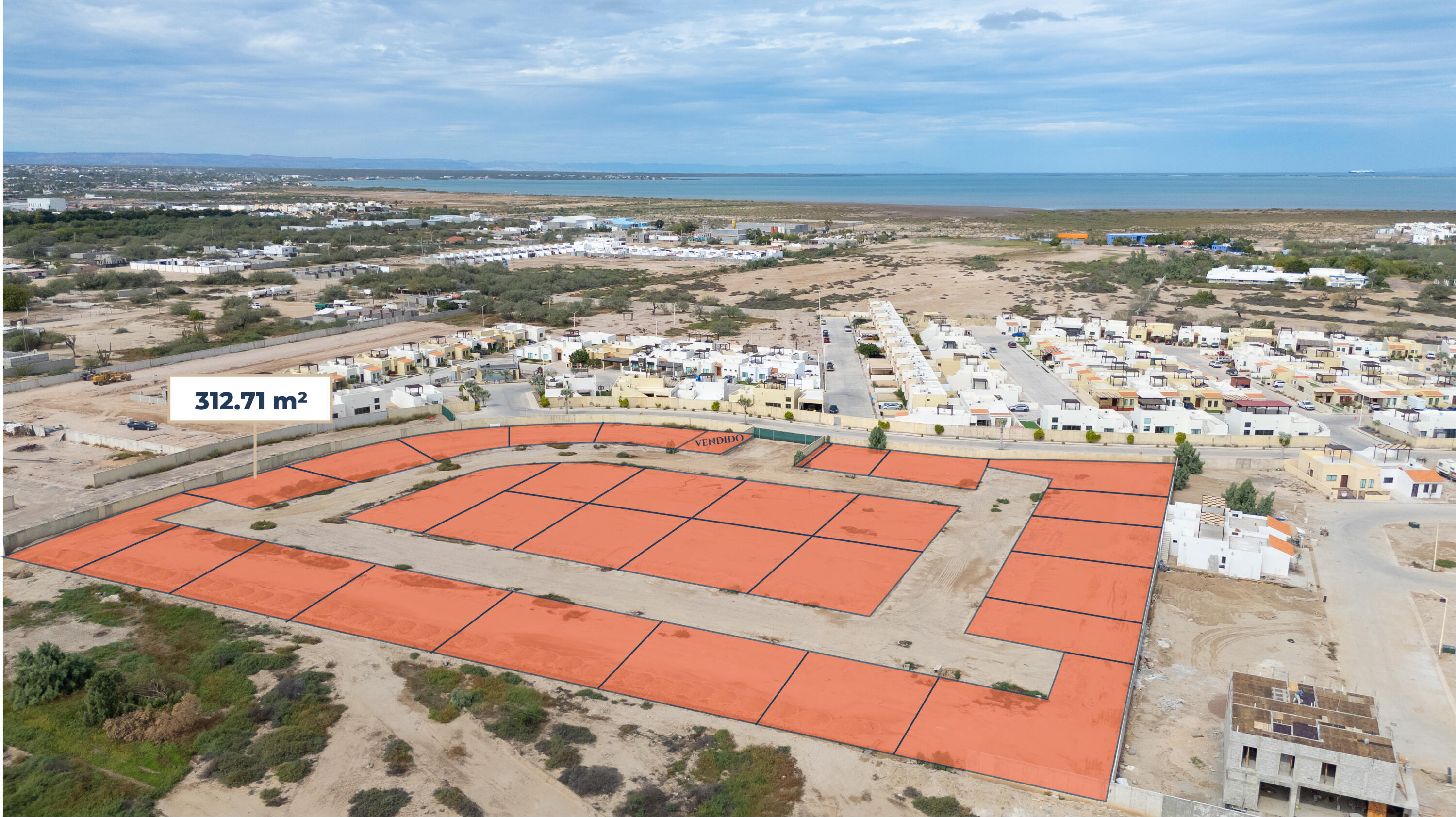 Residential lots for sale in Portobello Residencial, Coto 4, located in El Centenario, La Paz, Baja California Sur, easy access to the Transpeninsular Highway. The development will be delivered with concrete roads, sidewalks and curbs. Underground utilities will be available at the lot line, including city water (SAPA), sewer and electricity, with public lighting installed as part of the project. Gated community, controlled access, 24/7 security. Zoned for single-family residential use with no construction time limit and allowance for vacation rentals. Each lot will include individual fee simple title and cadastral registration. HOA fee is $575 MXN per month for vacant lots, $1,150 MXN when your DREAM house is ready.