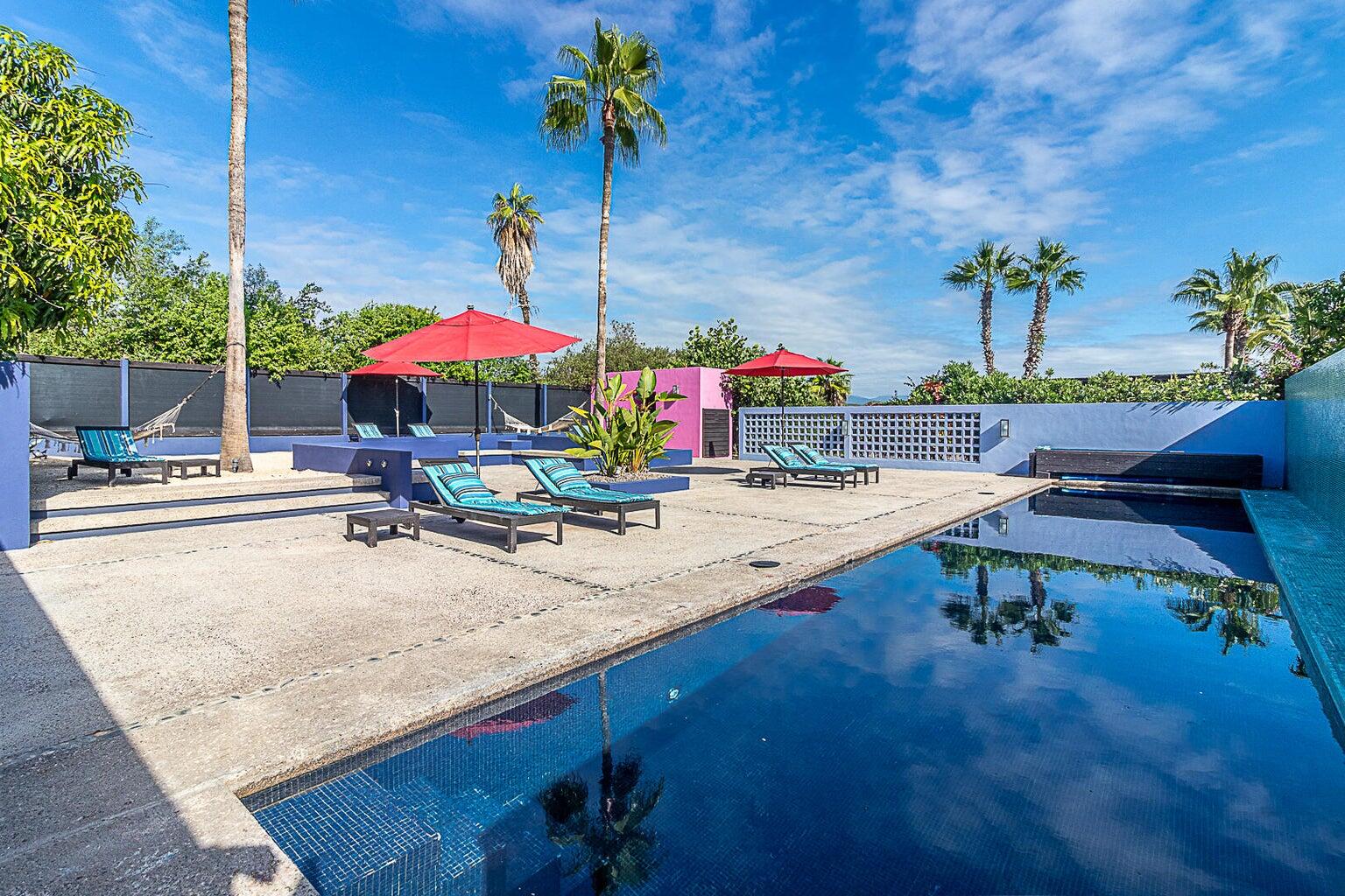 Seamless Luxury Baja Estate Experience the ultimate Baja lifestyle in this extraordinary coastal estate, combining two iconic properties--Casa Quinta Pacifica La Cachora and The Hotelito--on a lush, tree-lined parcel just a ten-minute stroll from La Cachora Beach. Inspired by renowned architect Luis Barragán, and featured in Architectural Digest and HOLA DECORATION, the estate blends modernist design with organic beauty, offering a rare combination of style, serenity, and investment potential. With a total of multiple residences and suites, the main house features soaring 16-foot ceilings, expansive open interiors, a log fireplace, master suite with cedar walk-in closet, and a kitchen with Pulido counters and stainless steel appliances.