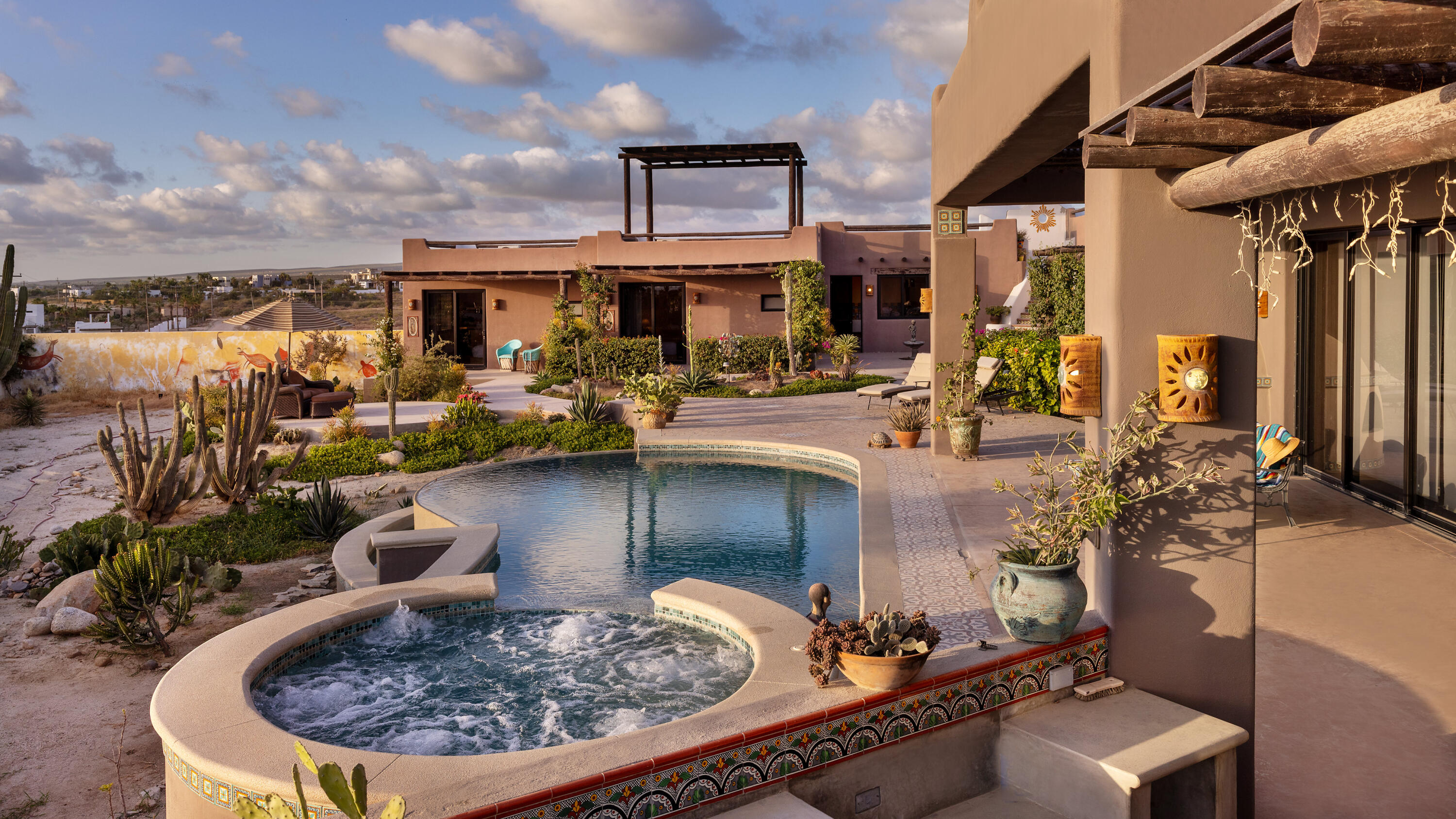 Step inside Casa Bohemia, where artistry meets Baja's natural beauty. This custom crafted Santa Fe-style home in Todos Santos is a masterpiece of design and soul — a serene retreat for those who value creativity, connection, and ocean views. With a spacious single-level main home, three guest casitas spread around a resort style pool, lush gardens, and enchanting details throughout, Casa Bohemia captures the true essence of inspired coastal living.