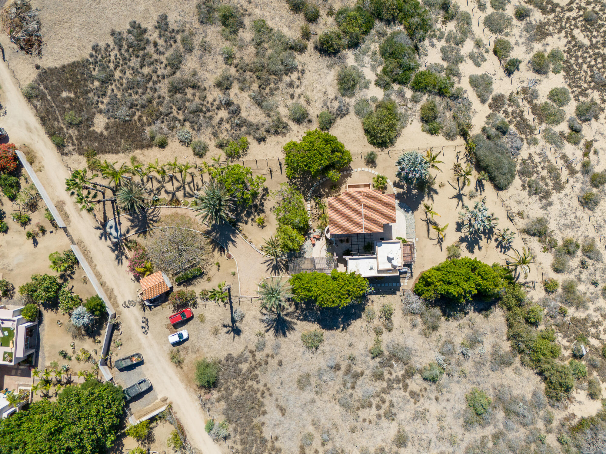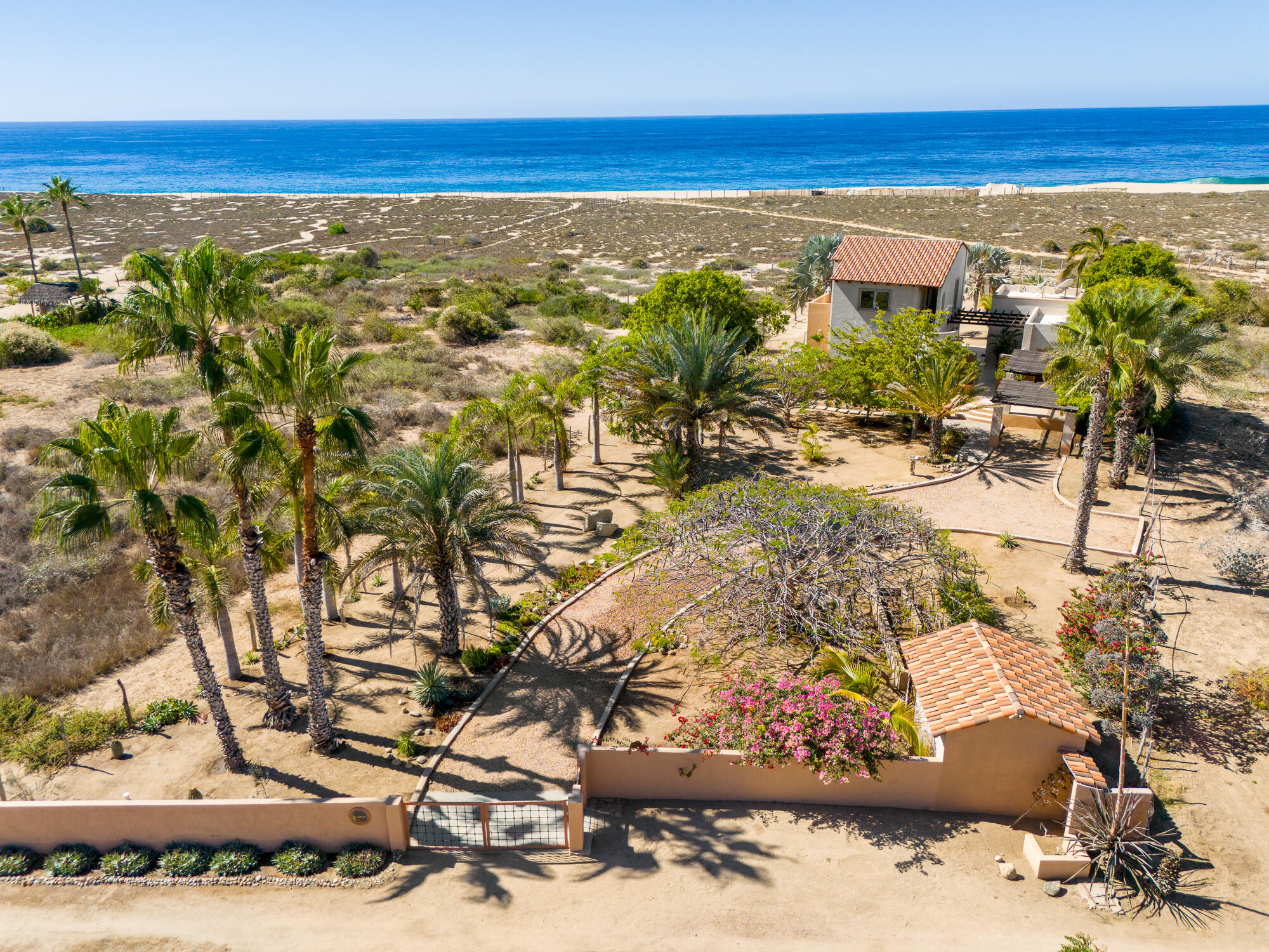This charming 2 bedroom/2.5 bath home sits in an open field, 2nd row from the beach (with the dunes considered front row) on one half acre. The home has plenty of land to build out or the house can be occupied as is. The home is walled and gated roadside (dead-end road). At the entrance is a garden/ utility bodega (shed). The property is sparsely landscaped with beautiful vegetation, a landscaper's dream. There is a carport leading to a large laundry and storage bodega(shed). A nicely sized patio separates the guest suite, complete with kitchenette and en-suite bath three piece bath along with an expansive patio to listen to the surf, birds and rustling of leaves. Across from the self contained guest suite is the main residence which houses the living, dining, kitchen and half bath.