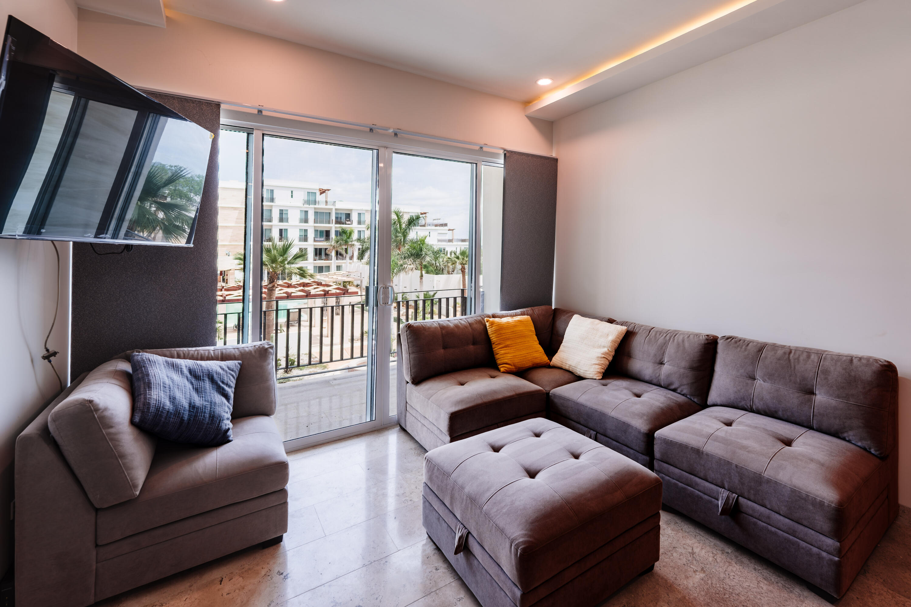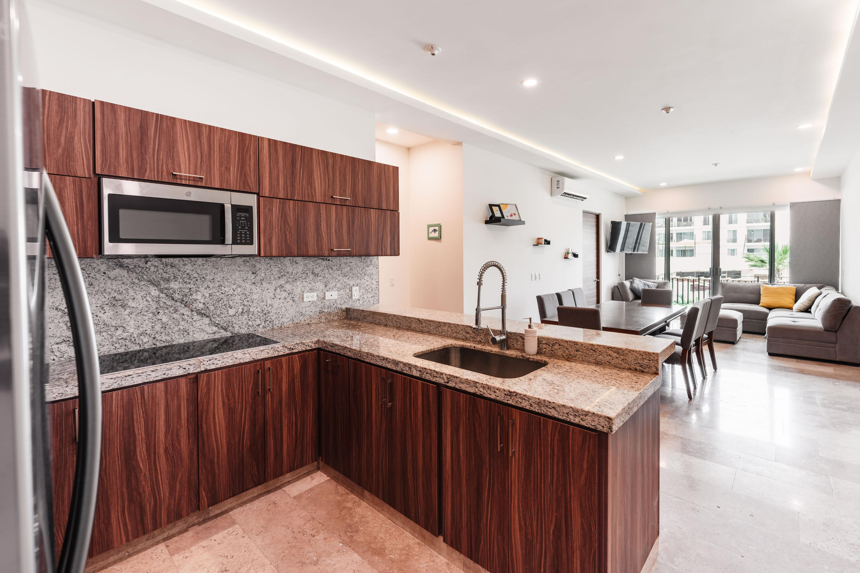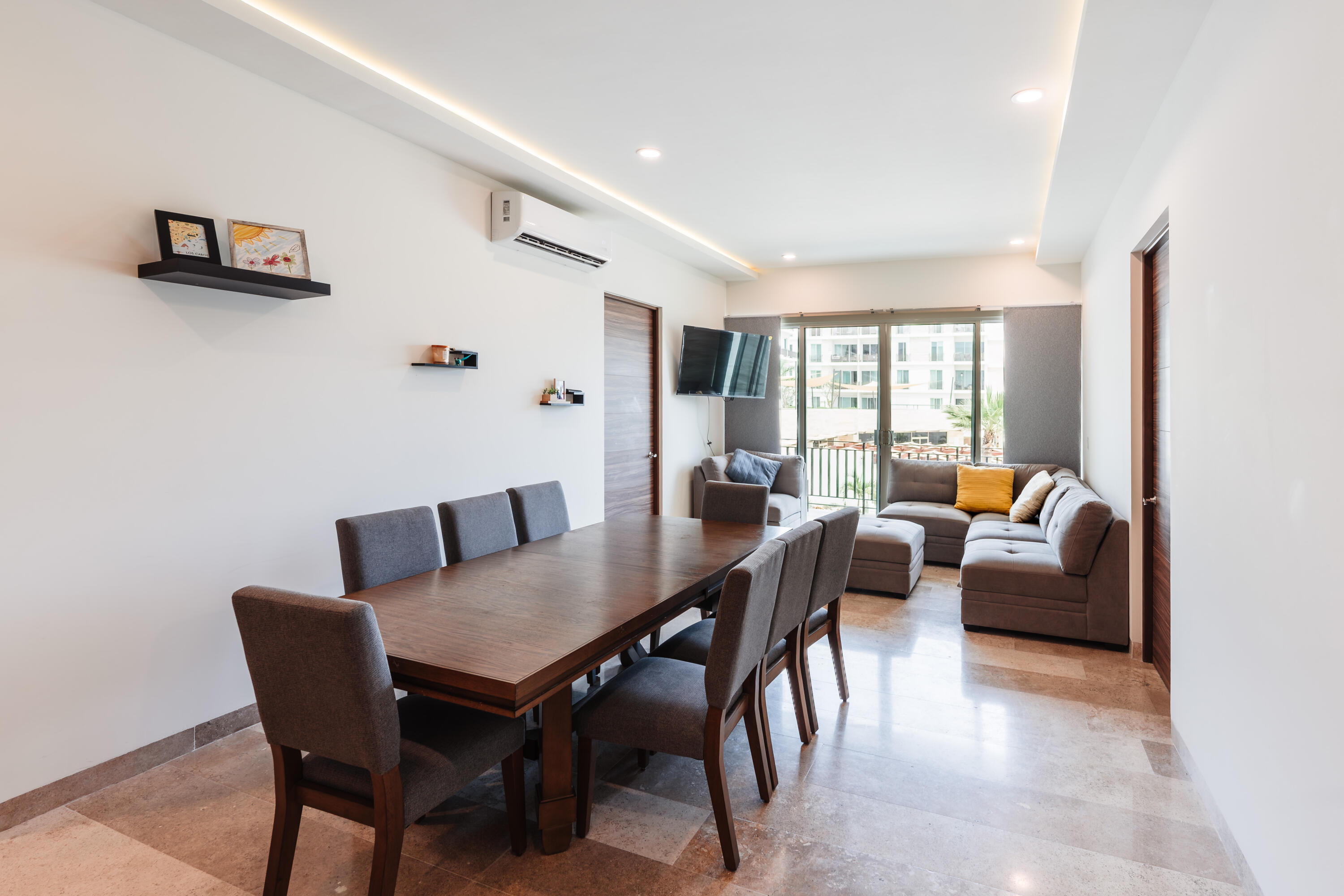 Modern and spacious 3-bedroom, 3-bathroom condo in the highly desired Torres San José. Designed for comfort and functionality, this furnished and fully equipped residence features high ceilings, abundant natural light, and contemporary finishes. The kitchen includes granite countertops and GE/LG appliances, while the floor plan provides a large laundry room, ample storage, and built-in closets, including walk-ins in two bedrooms. Outdoor living is highlighted by three private terraces—two bedroom balconies plus a large terrace off the main living area with views over the gardens, pool, and mountains. The unit also includes two parking spaces. Residents enjoy resort-style amenities: a pool, gym, social lounge with billiards and wet bar, six BBQ areas, multiple fire pits, a children's