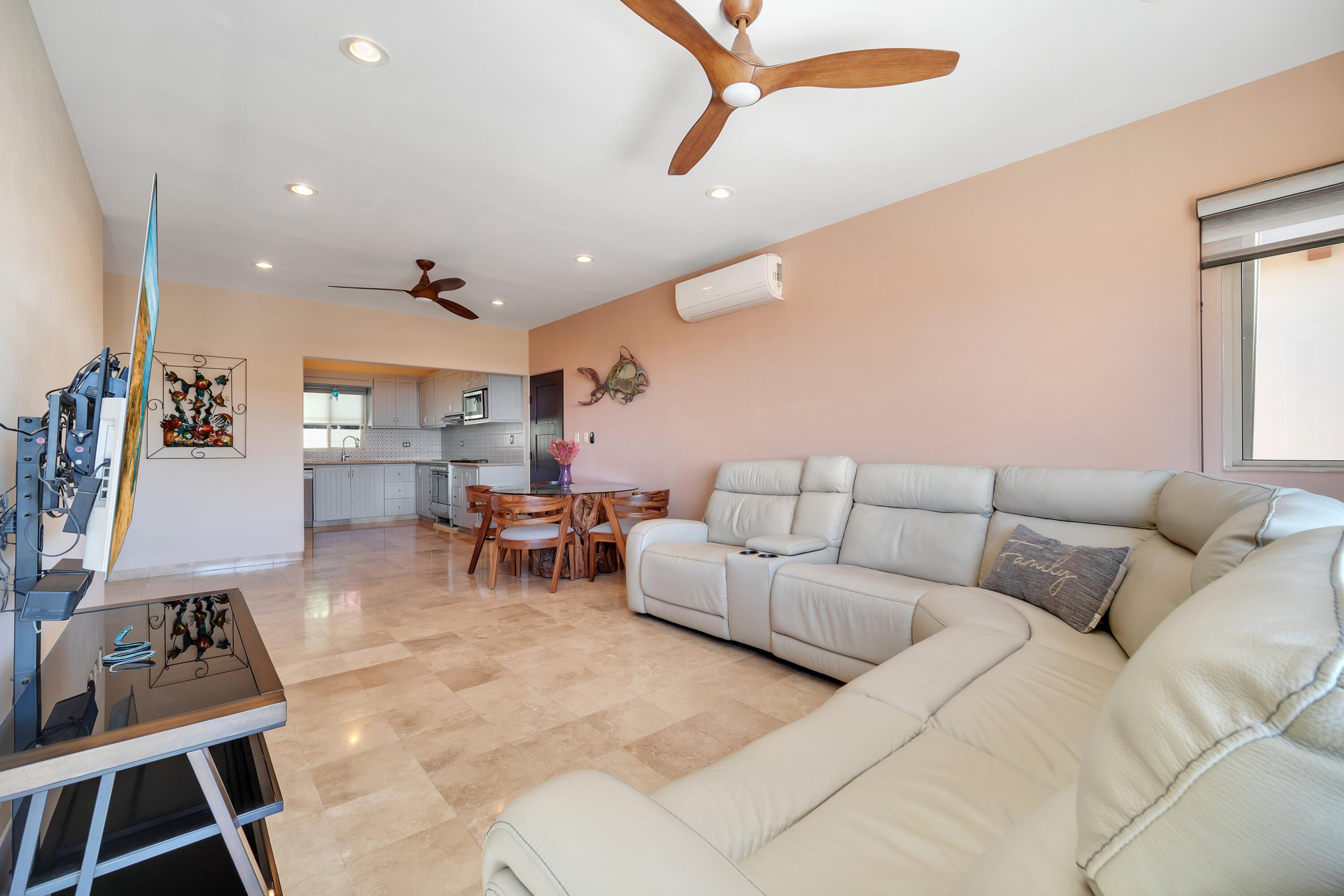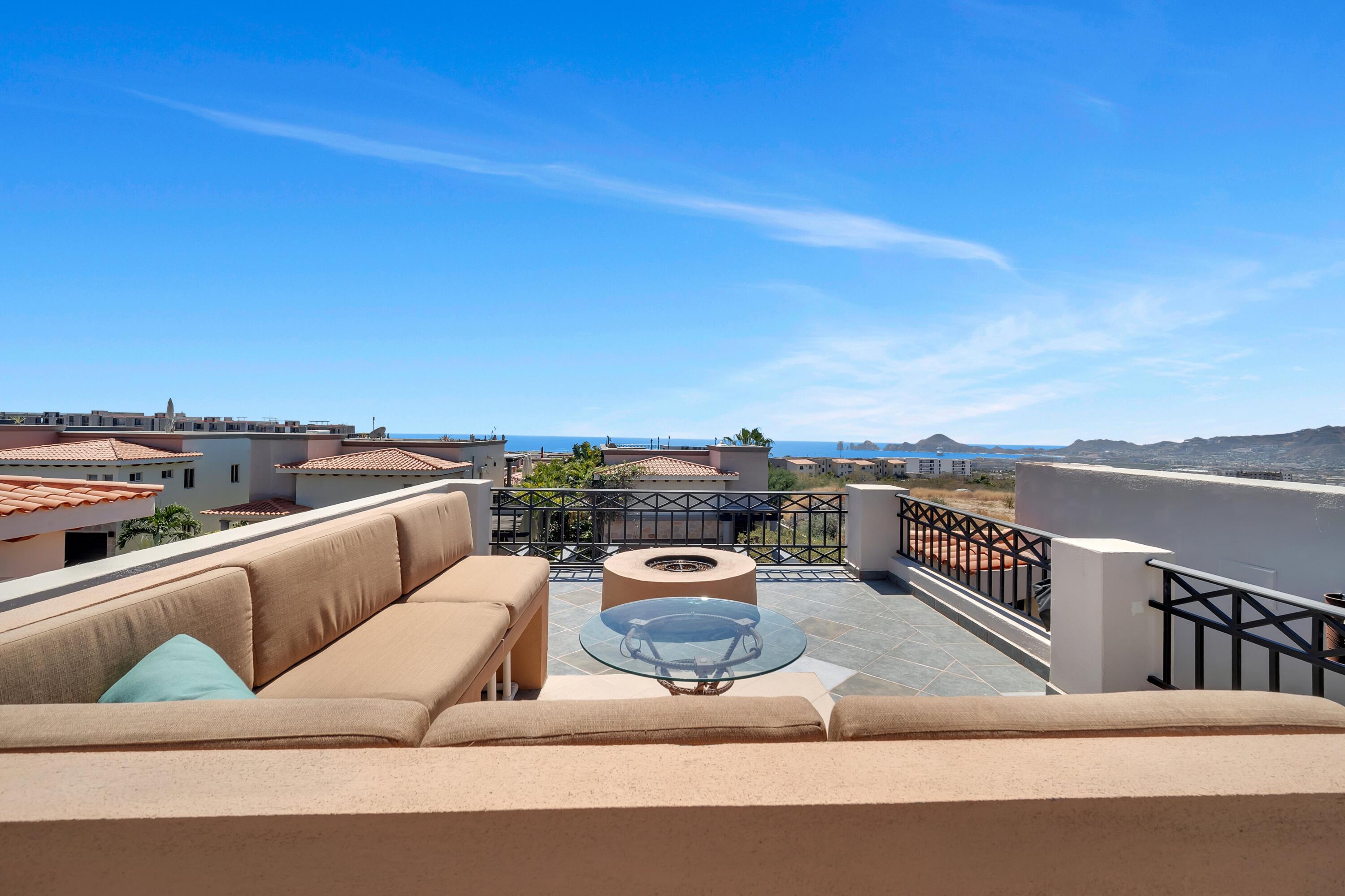 Immaculate multi-level 3 bedroom, 2.5 bath home located in the private gated community of Ventanas Phase 1, one of the most desirable neighborhoods in El Tezal. This residence features an open-concept floor plan, spacious bedrooms, and a generous outdoor terrace perfect for indoor-outdoor living. Enjoy breathtaking ocean, Arch, and city light views from the spectacular rooftop terrace, complete with a fire pit and BBQ area, ideal for entertaining. Conveniently situated on a quiet cul-de-sac. Turnkey and move-in ready, fully furnished. Ventanas offers great amenities including an elegant clubhouse with pools and Jacuzzi, a well equipped fitness center, deli, chapel, and children's playground. Perfect for full time living, a vacation home, or a strong rental investment.