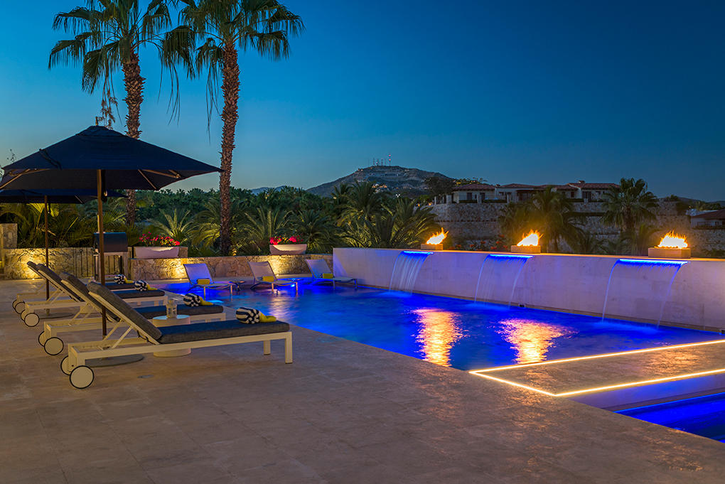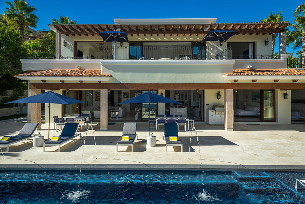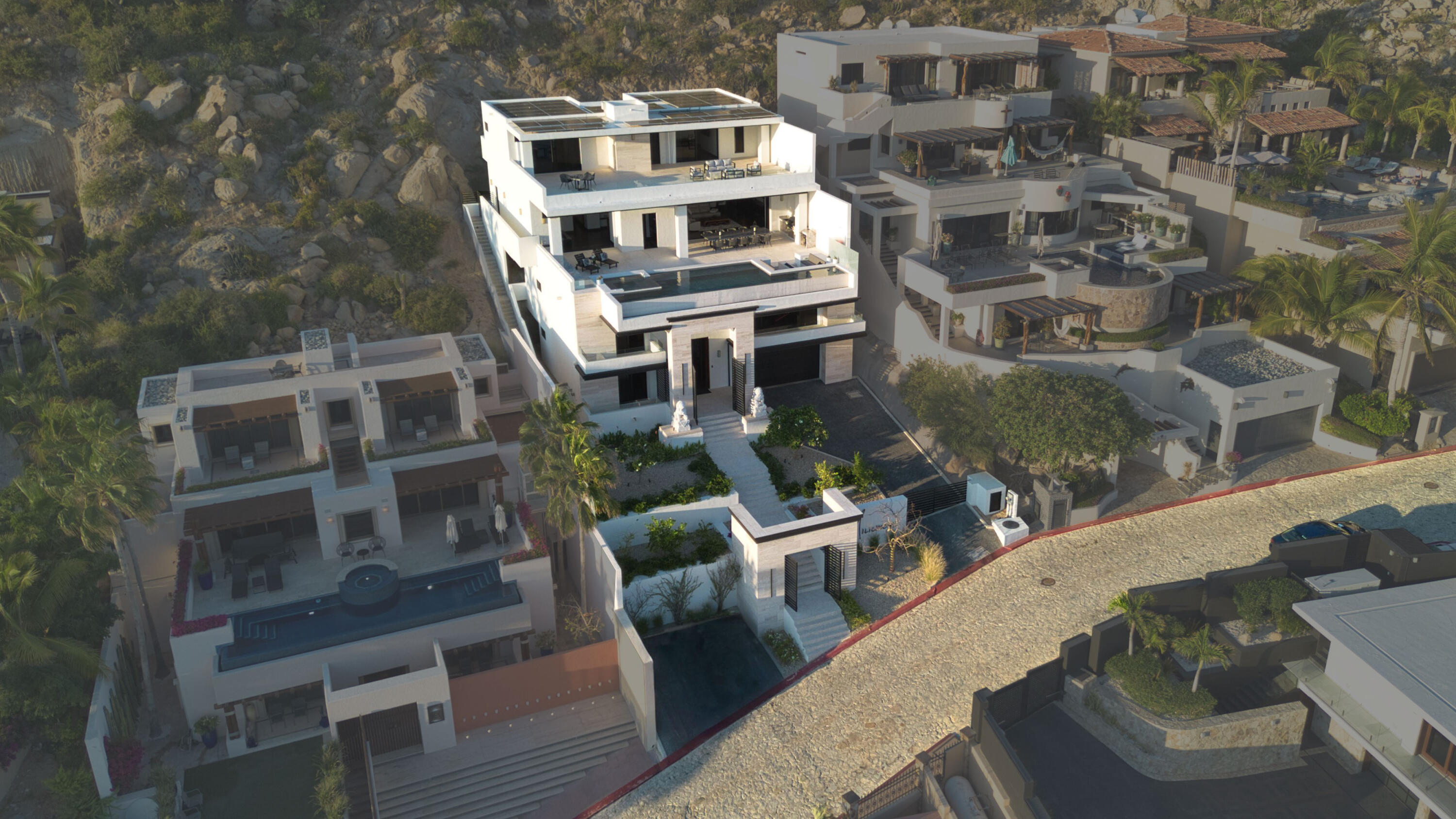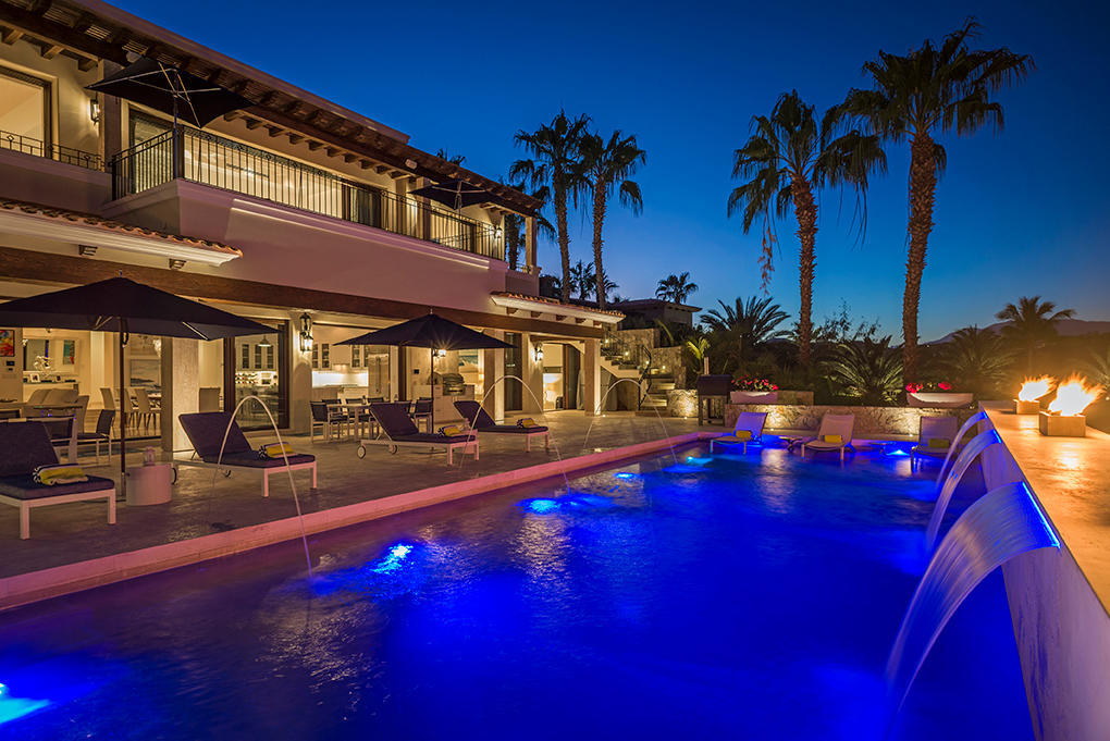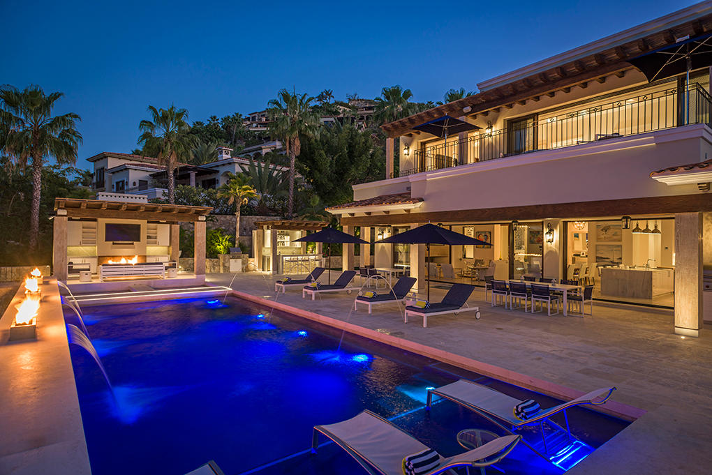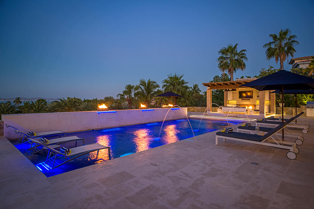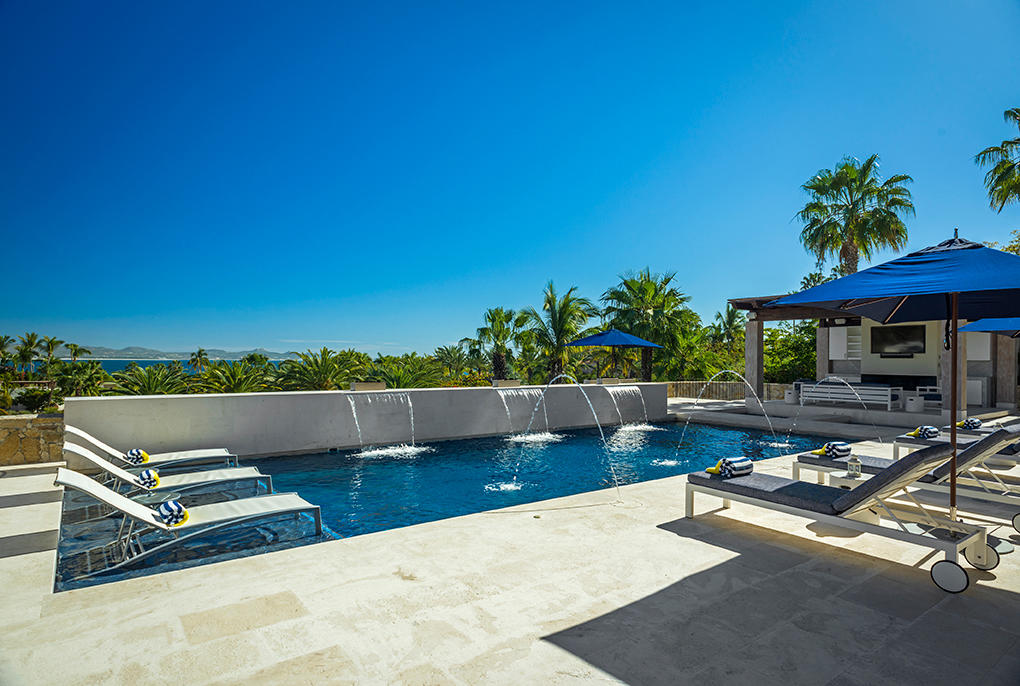 Villa Buena Vista offers ultramodern design and coastal living near Palmilla Bay and Club Ninety-Six, just a two-minute walk from the beach with private access. The expansive outdoor areas include multiple lounging and dining spaces, a large pool with fountains and waterfalls, a cold plunge, a wood-fired pizza oven, and captivating fire-and-water features. Inside, the home features bright open spaces, a gourmet kitchen with state-of-the-art appliances, a wine bar, and a glass wine wall for over 500 bottles. With seven bedrooms, eight bathrooms, and one powder room, the residence is ideal for entertaining and provides stunning views of Palmilla Bay, from sunrises to the lights of San José del Cabo.