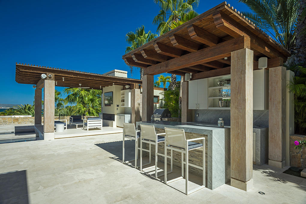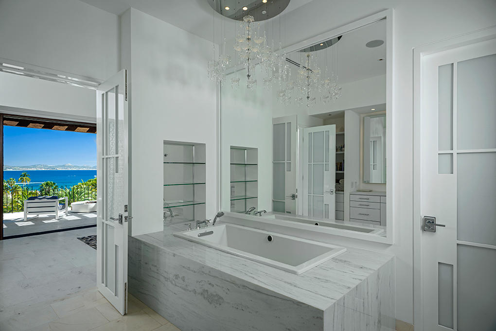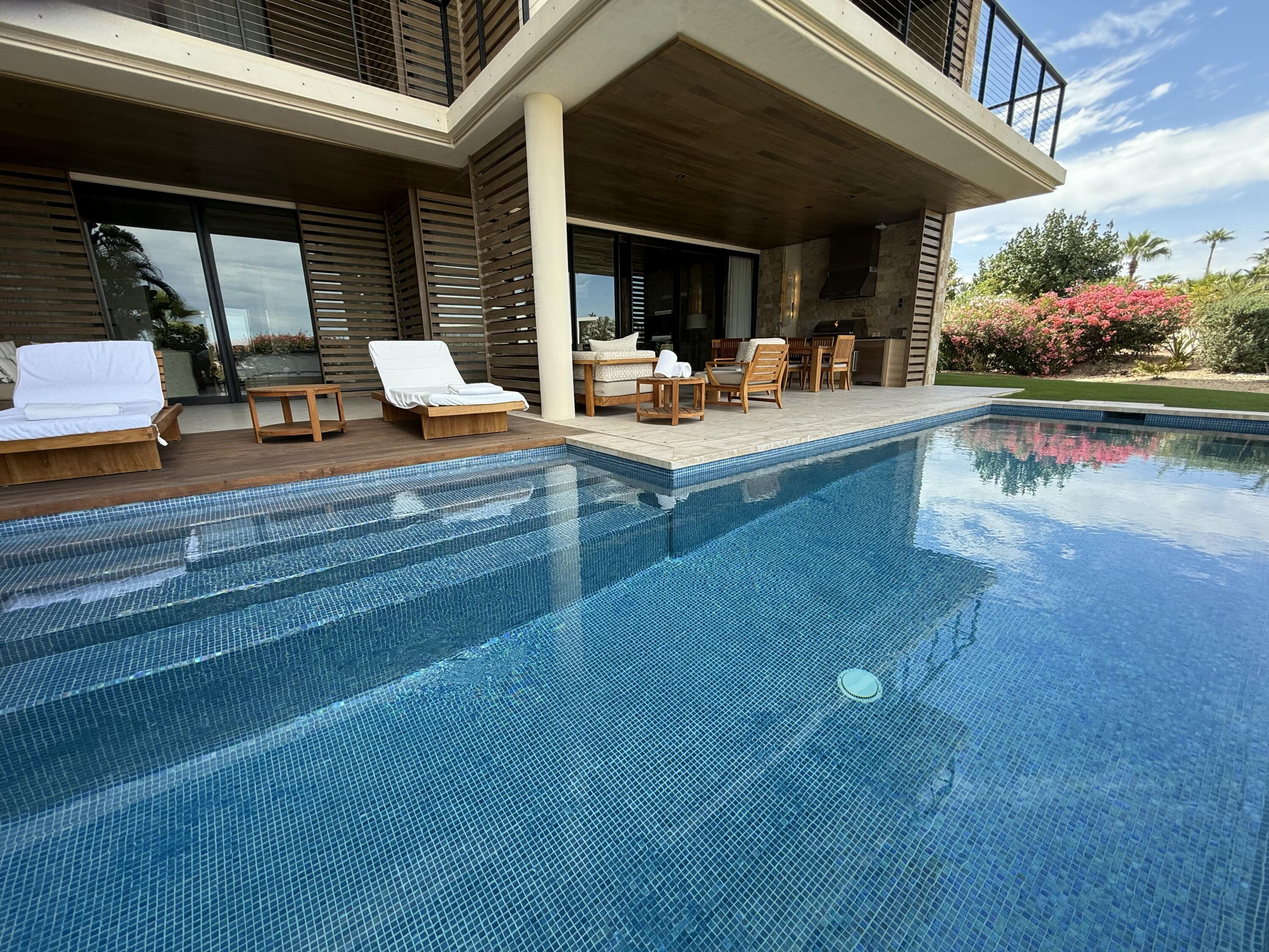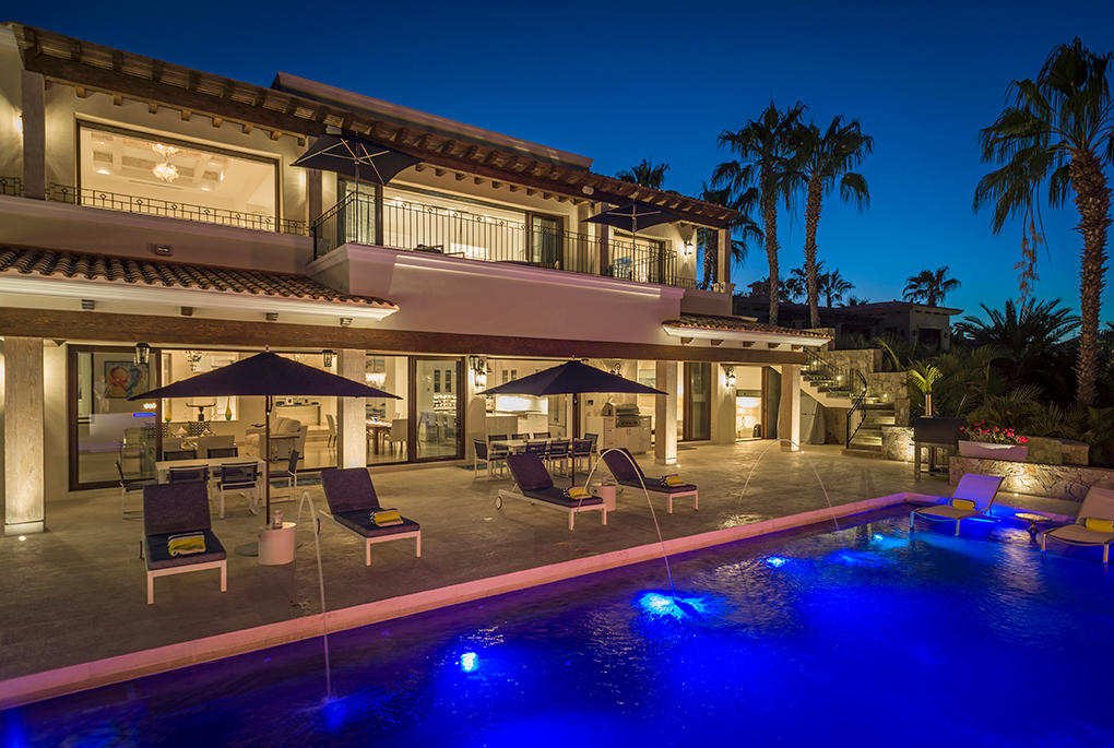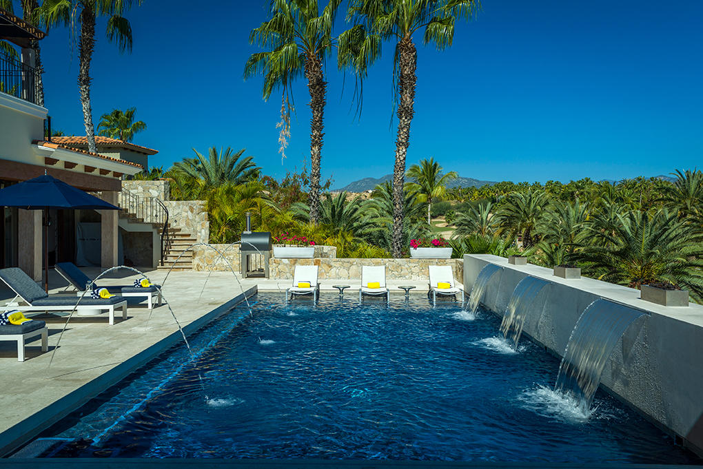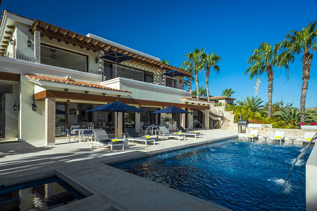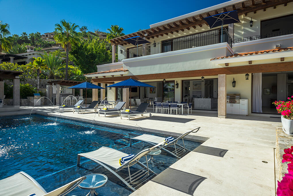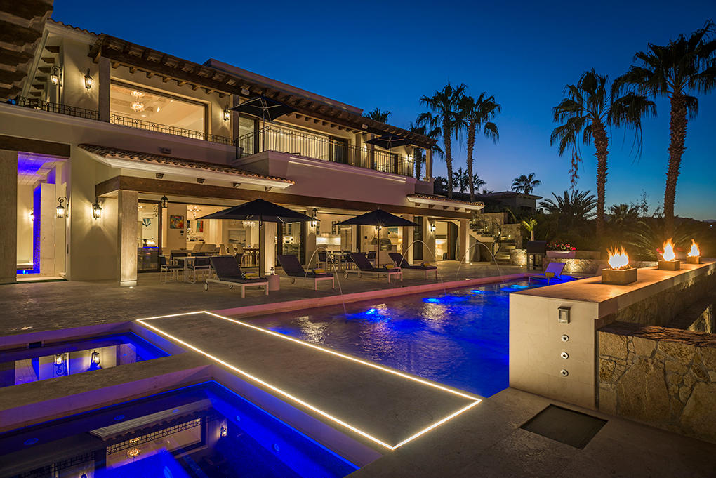 Villa Buena Vista offers ultramodern design and coastal living near Palmilla Bay and Club Ninety-Six, just a two-minute walk from the beach with private access. The expansive outdoor areas include multiple lounging and dining spaces, a large pool with fountains and waterfalls, a cold plunge, a wood-fired pizza oven, and captivating fire-and-water features. Inside, the home features bright open spaces, a gourmet kitchen with state-of-the-art appliances, a wine bar, and a glass wine wall for over 500 bottles. With seven bedrooms, eight bathrooms, and one powder room, the residence is ideal for entertaining and provides stunning views of Palmilla Bay, from sunrises to the lights of San José del Cabo.