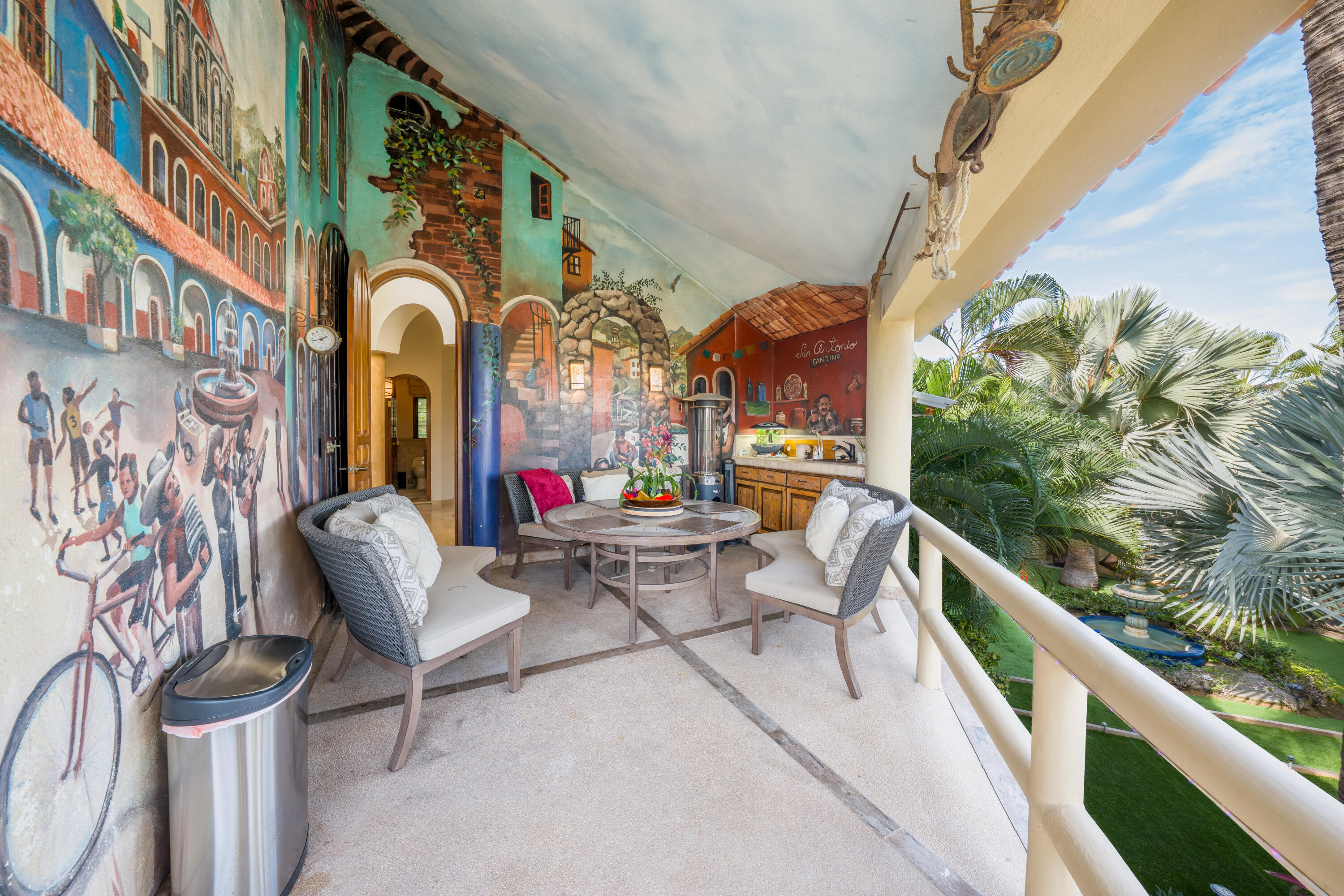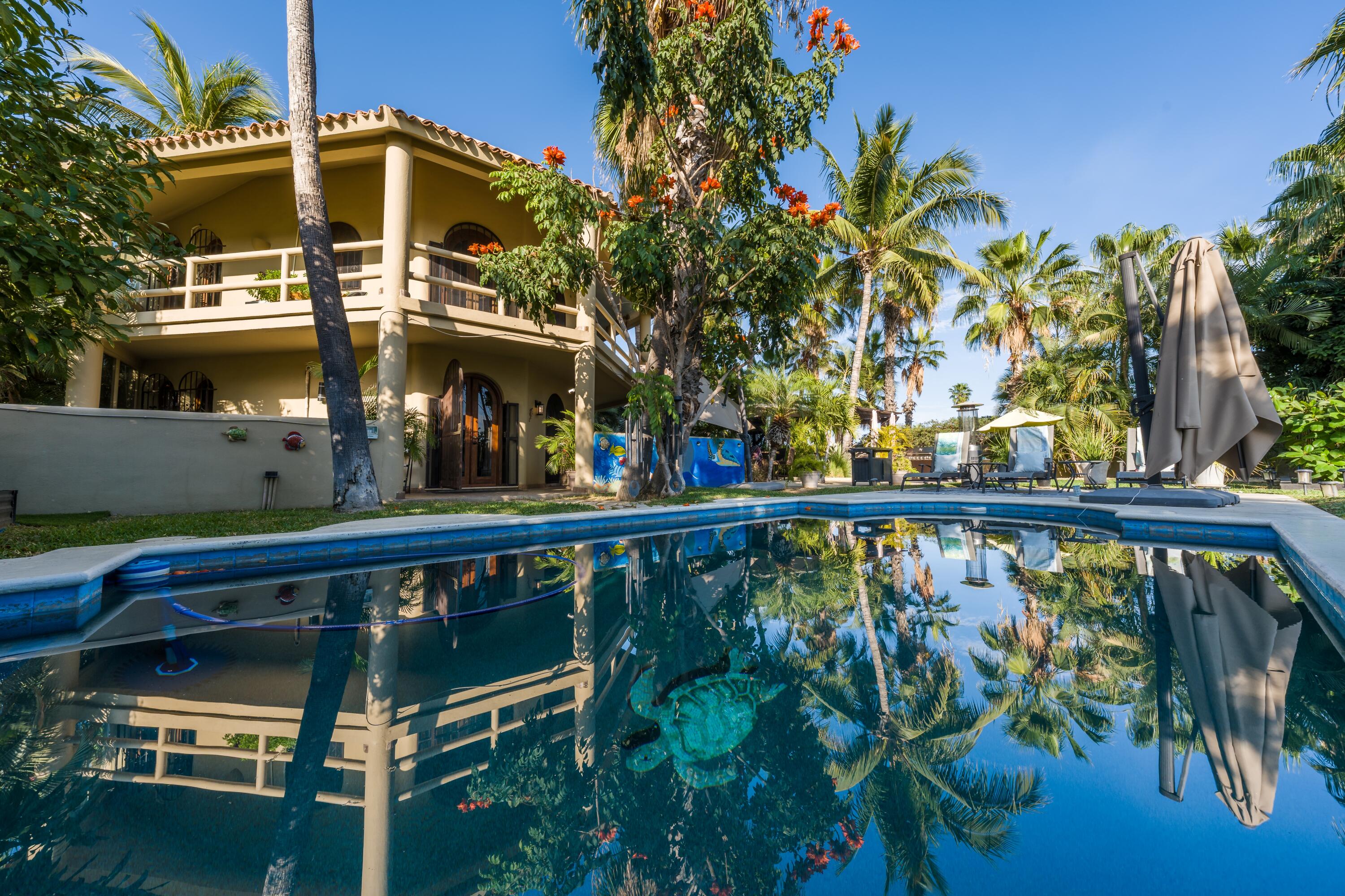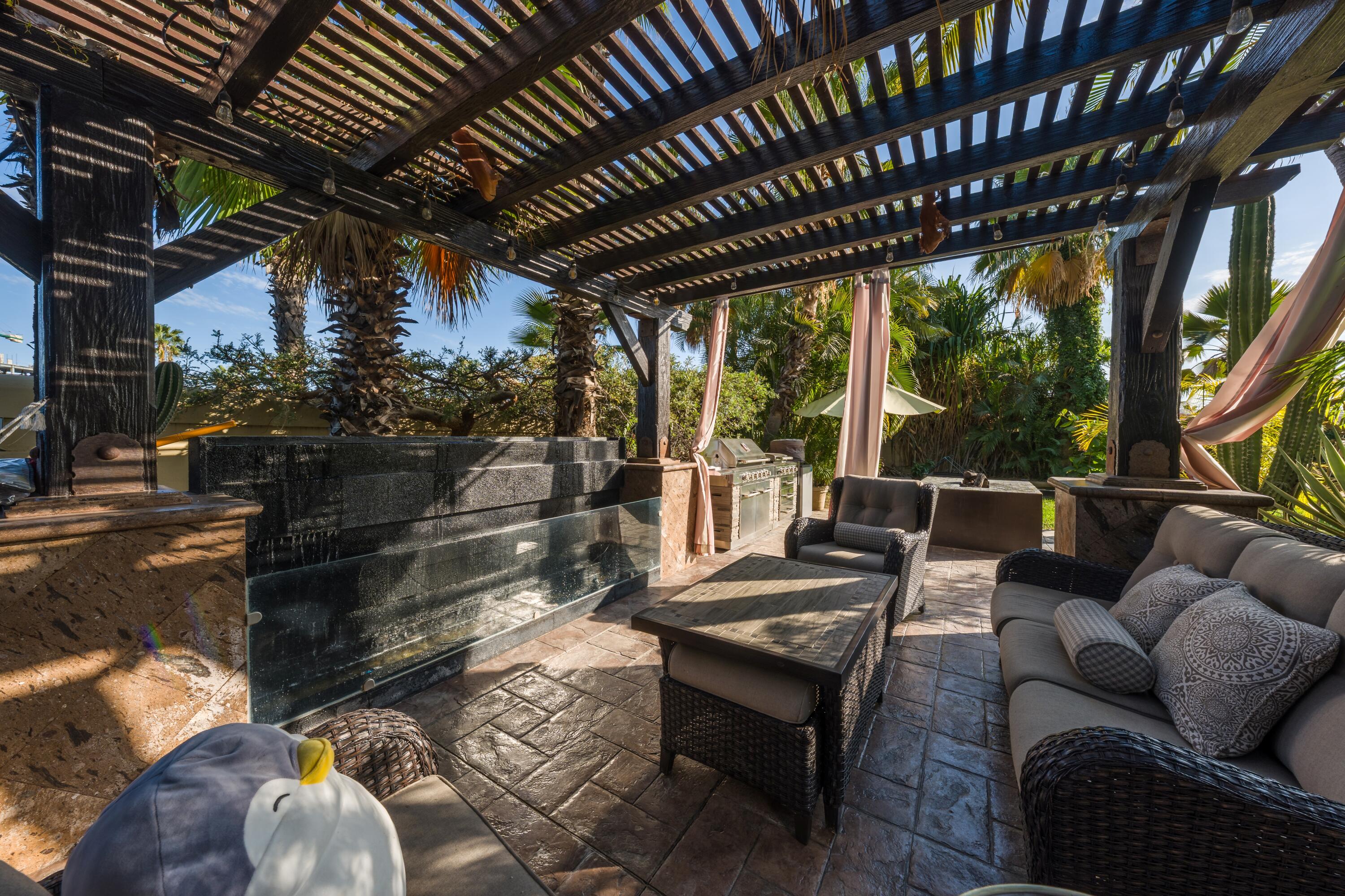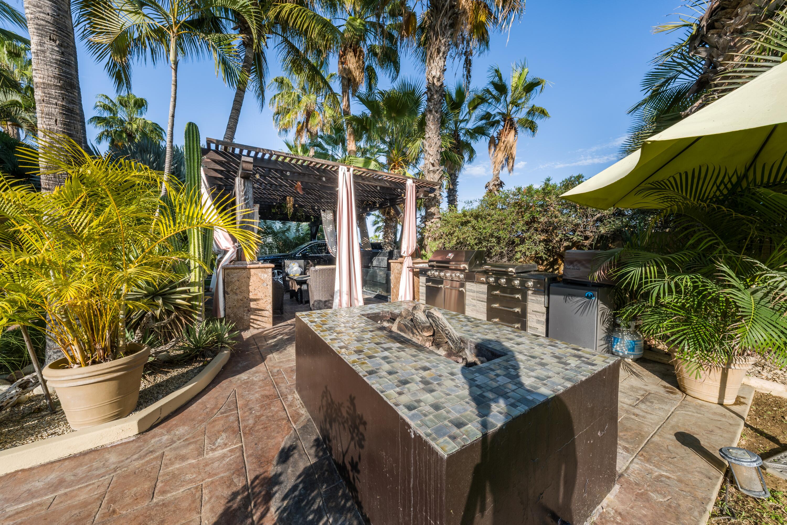 Located in one of most sought-after area of San José del Cabo, this large-scale property represents an extraordinary opportunity for those seeking the perfect balance between modern comfort and classic sophistication. With a warm and joyful energy, the residence has been designed to elevate the experience of living in paradise. Chef's Kitchen: Newly updated with high-end finishes, ideal for gastronomy enthusiasts. Renovated Interiors: Freshly painted spaces that maximize natural light and accentuate the elegance of each room. Enjoy a heated pool all year round. The outside area is a private setting for entertaining, featuring a spectacular wraparound terrace, fire pits, barbecue area, and a meticulously designed garden that captures the essence of the Cabo lifestyle.