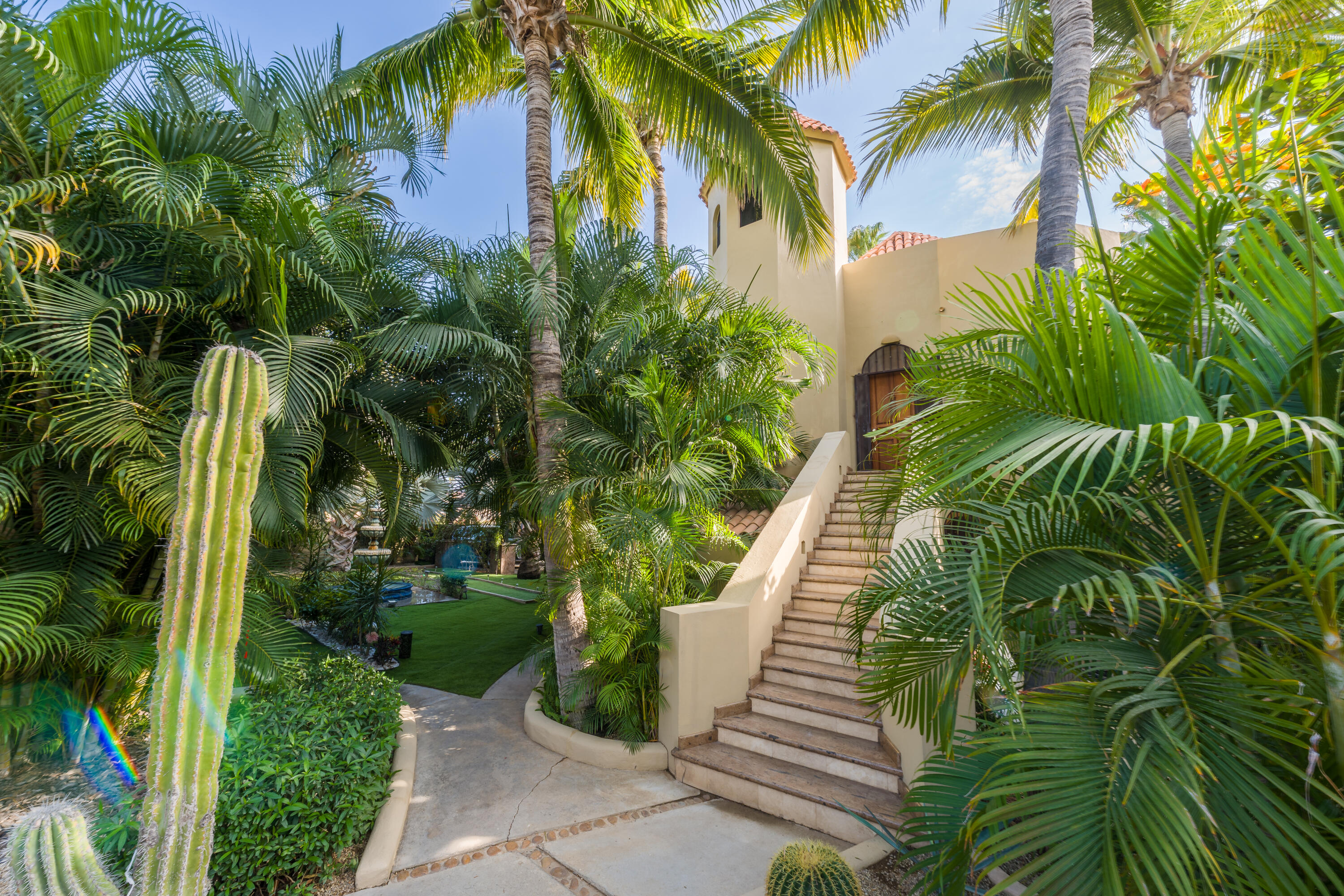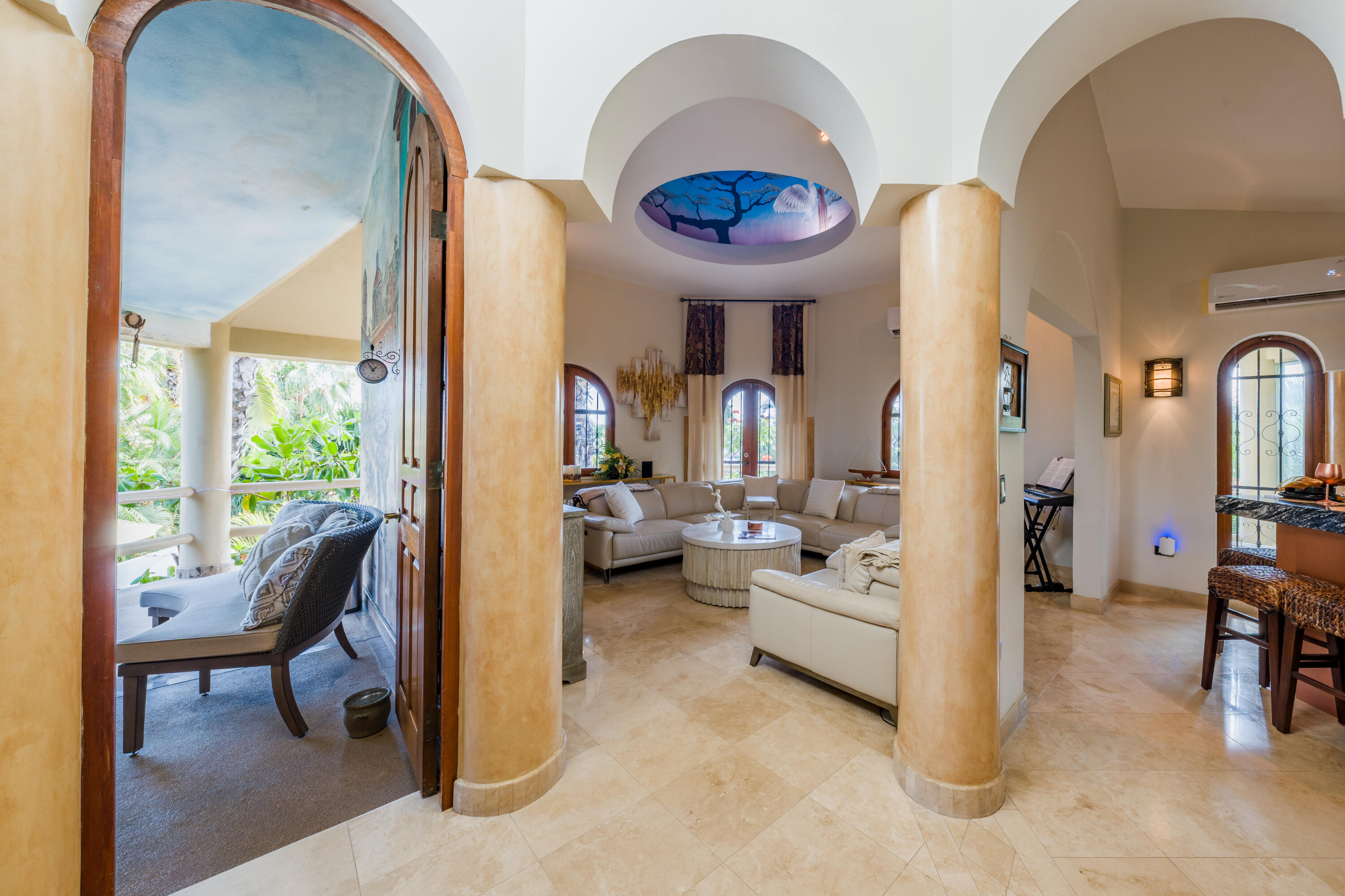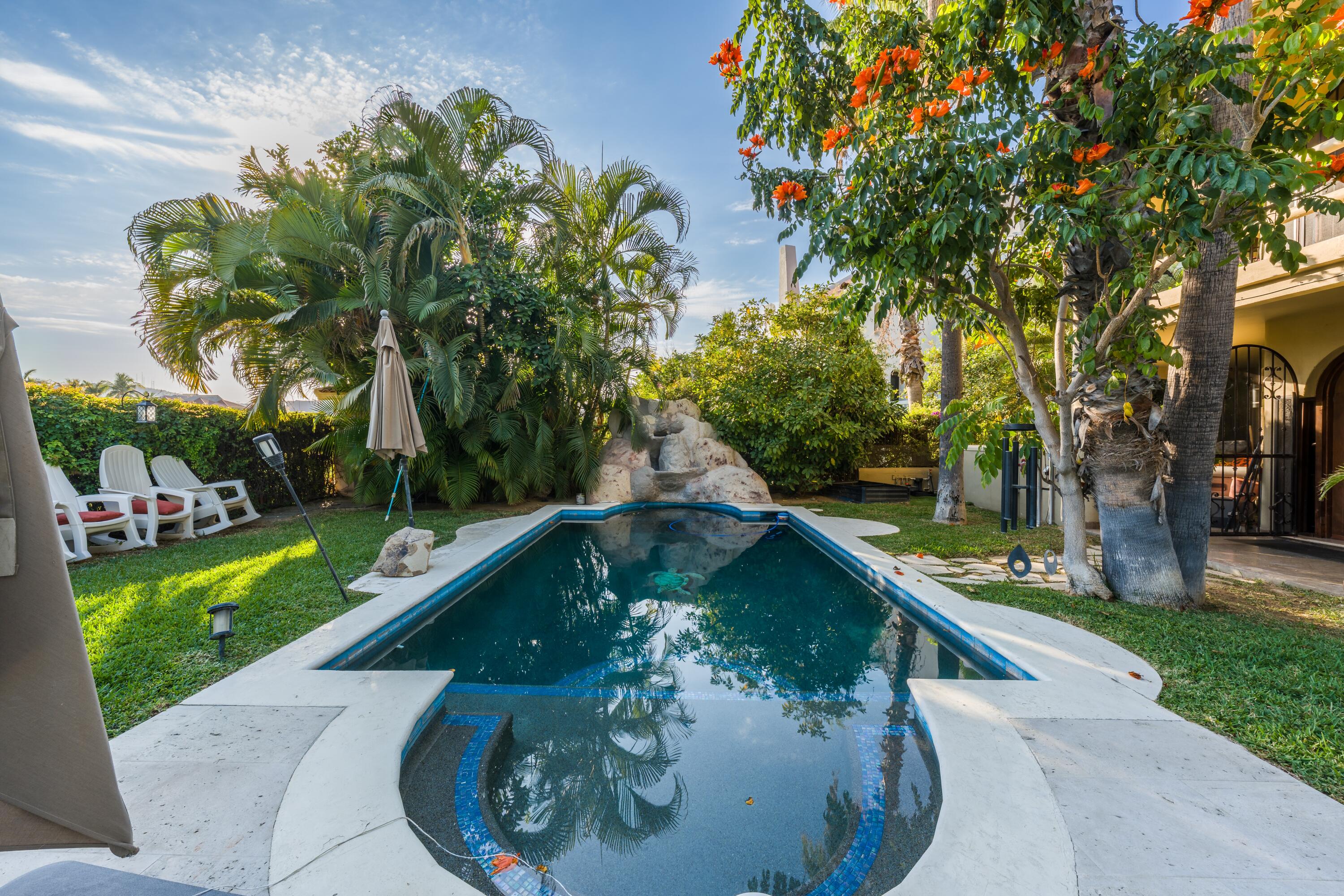 Located in one of most sought-after area of San José del Cabo, this large-scale property represents an extraordinary opportunity for those seeking the perfect balance between modern comfort and classic sophistication. With a warm and joyful energy, the residence has been designed to elevate the experience of living in paradise. Chef's Kitchen: Newly updated with high-end finishes, ideal for gastronomy enthusiasts. Renovated Interiors: Freshly painted spaces that maximize natural light and accentuate the elegance of each room. Enjoy a heated pool all year round. The outside area is a private setting for entertaining, featuring a spectacular wraparound terrace, fire pits, barbecue area, and a meticulously designed garden that captures the essence of the Cabo lifestyle.