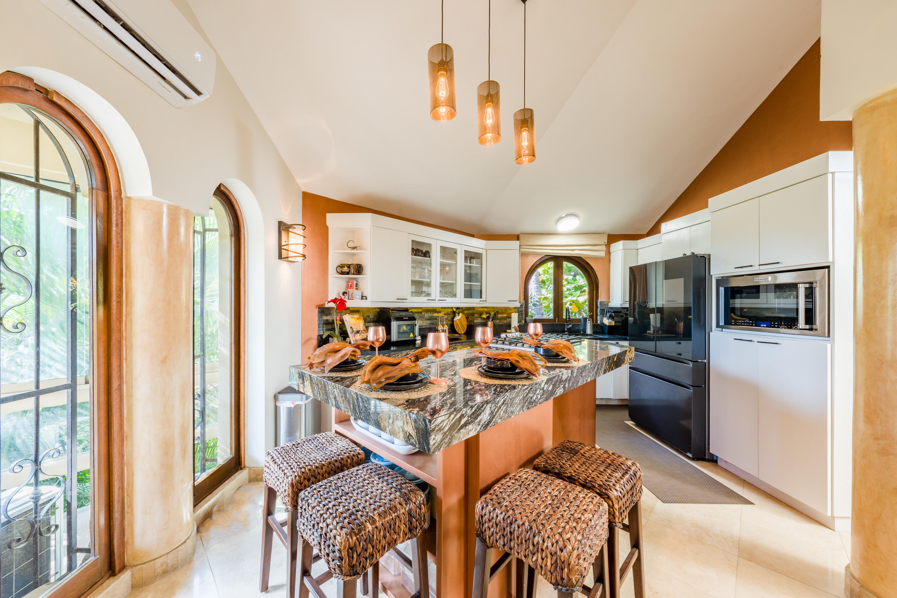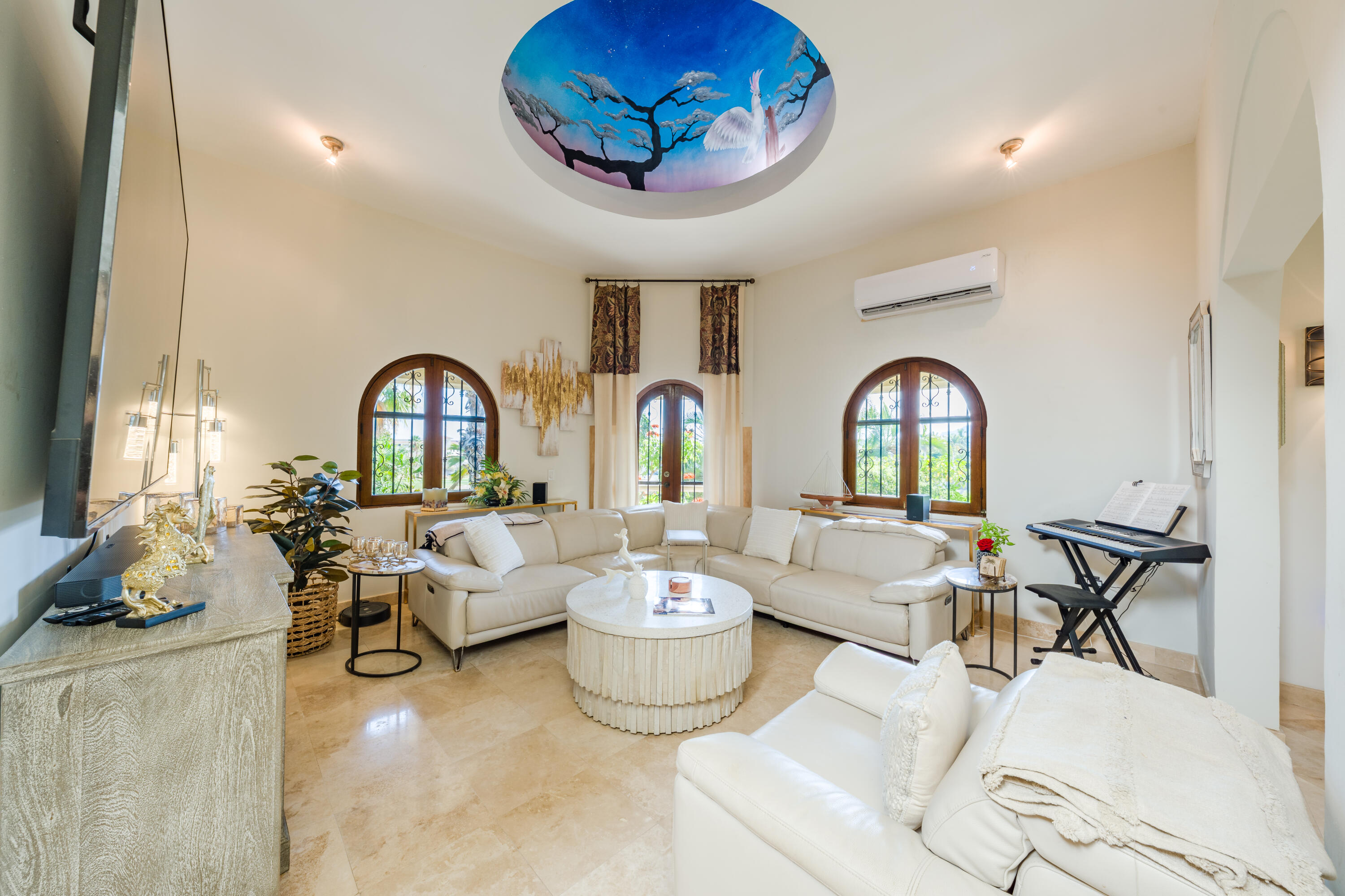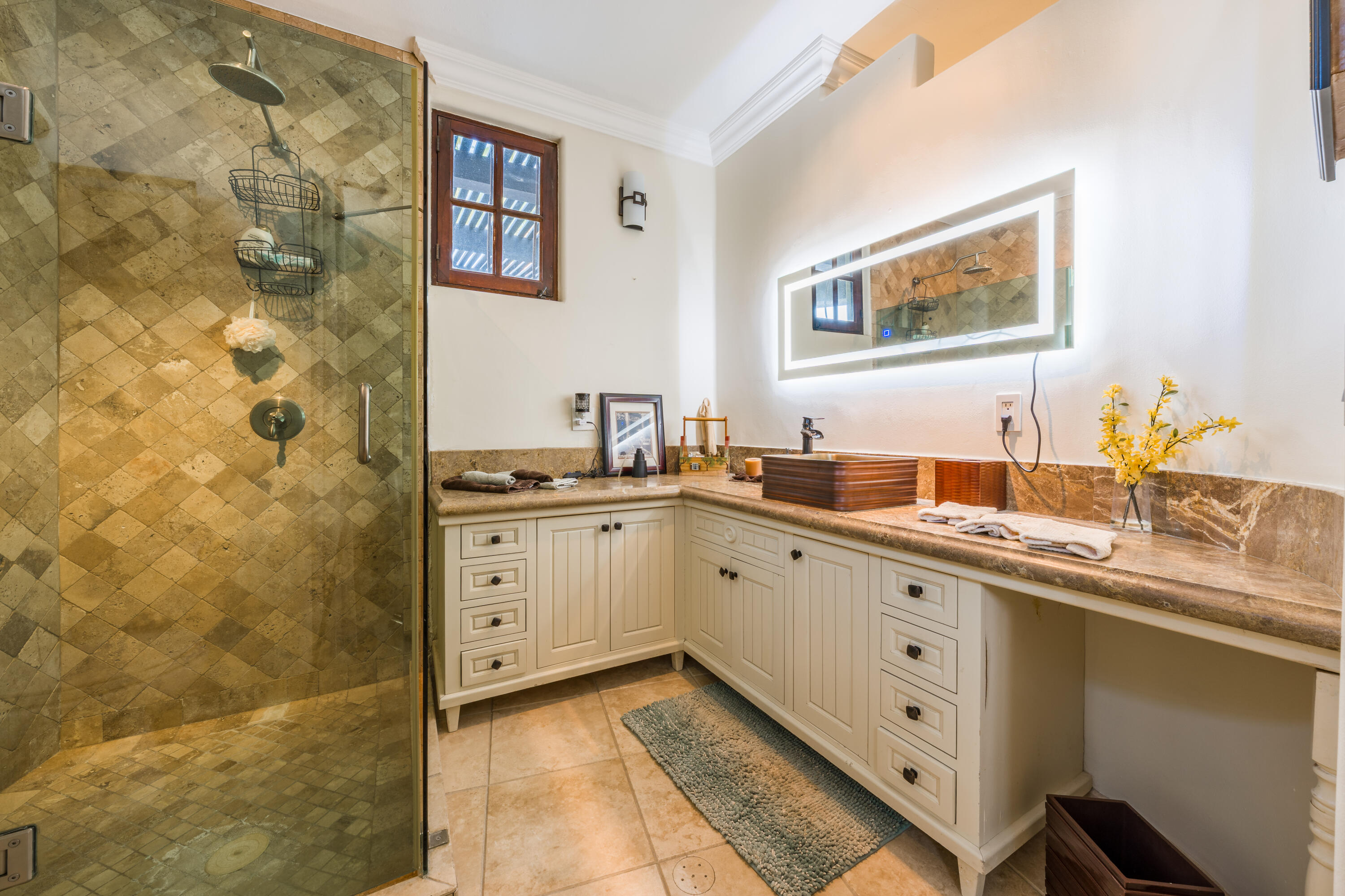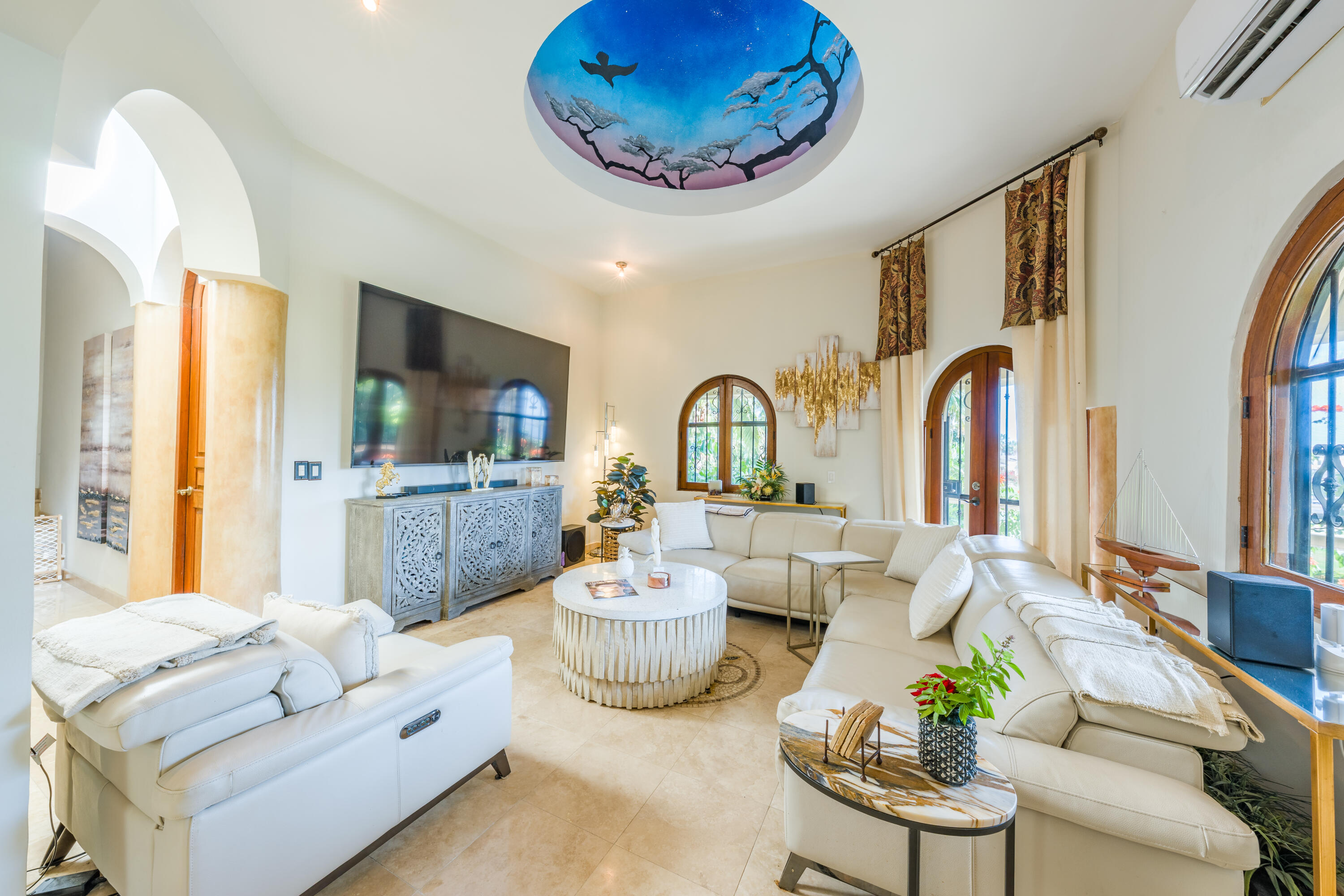 Located in one of most sought-after area of San José del Cabo, this large-scale property represents an extraordinary opportunity for those seeking the perfect balance between modern comfort and classic sophistication. With a warm and joyful energy, the residence has been designed to elevate the experience of living in paradise. Chef's Kitchen: Newly updated with high-end finishes, ideal for gastronomy enthusiasts. Renovated Interiors: Freshly painted spaces that maximize natural light and accentuate the elegance of each room. Enjoy a heated pool all year round. The outside area is a private setting for entertaining, featuring a spectacular wraparound terrace, fire pits, barbecue area, and a meticulously designed garden that captures the essence of the Cabo lifestyle.