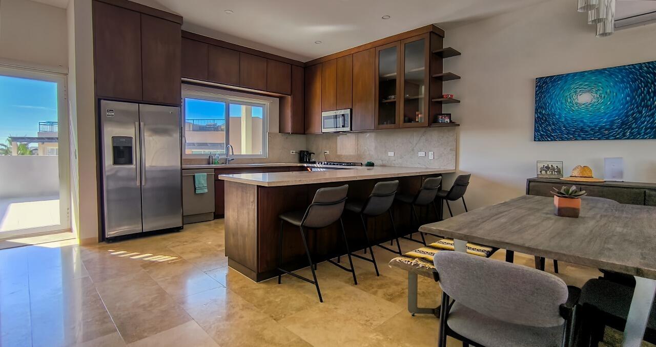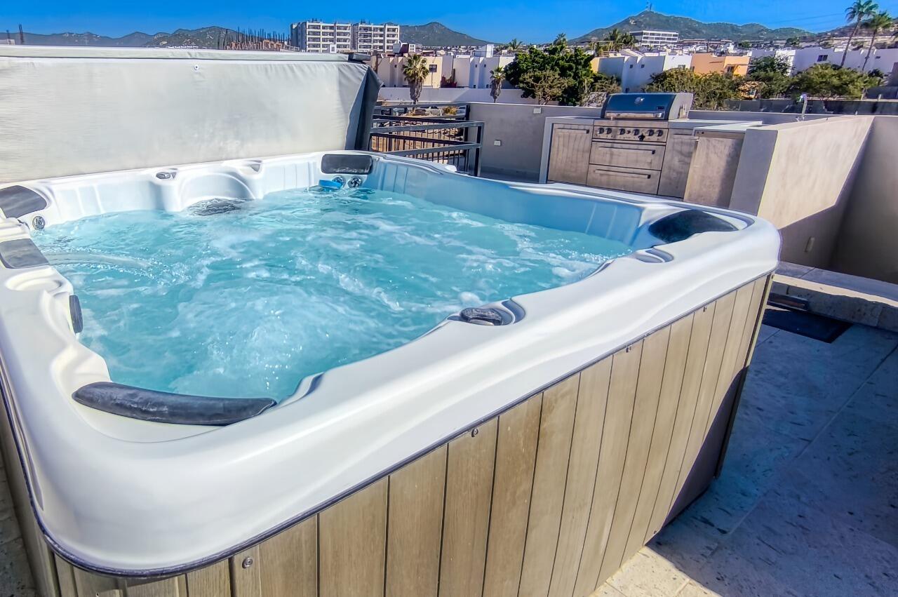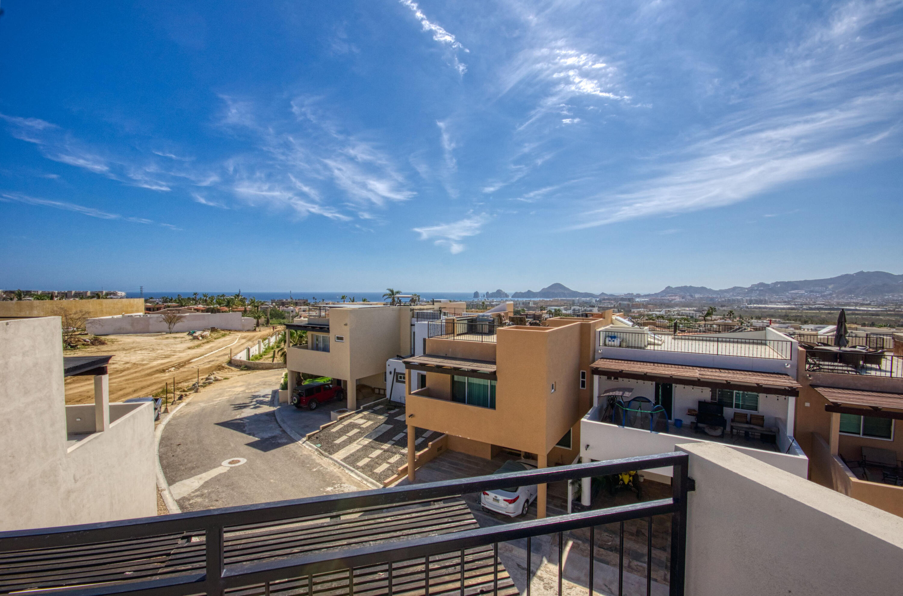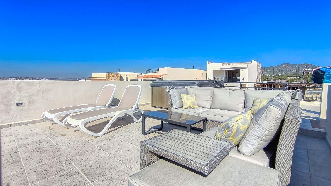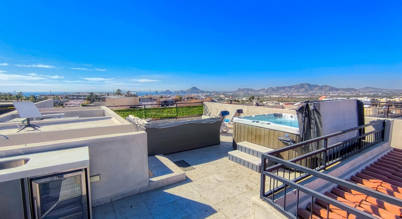 Ocean-View Home with Excellent Rental Potential in Villas Del Tezal Located in the gated community of Villas Del Tezal, this fully furnished 3-bedroom, 3-bath home offers over 2,600 sq. ft. of bright, open-concept living space. Multiple terraces and a spacious rooftop patio complete with a hot tub and outdoor kitchen make it the best place to capture panoramic views of the iconic Arch, perfect for enjoying Cabo's indoor-outdoor lifestyle. The main level includes a large kitchen, dinning space, living room, and an office, Abundant natural light flows throughout, enhancing the warm and inviting atmosphere. This home features a 10,000-liter cistern with a water purification system This house features inverted living space with 3 bedrooms and 2 full bathrooms on the ground floor