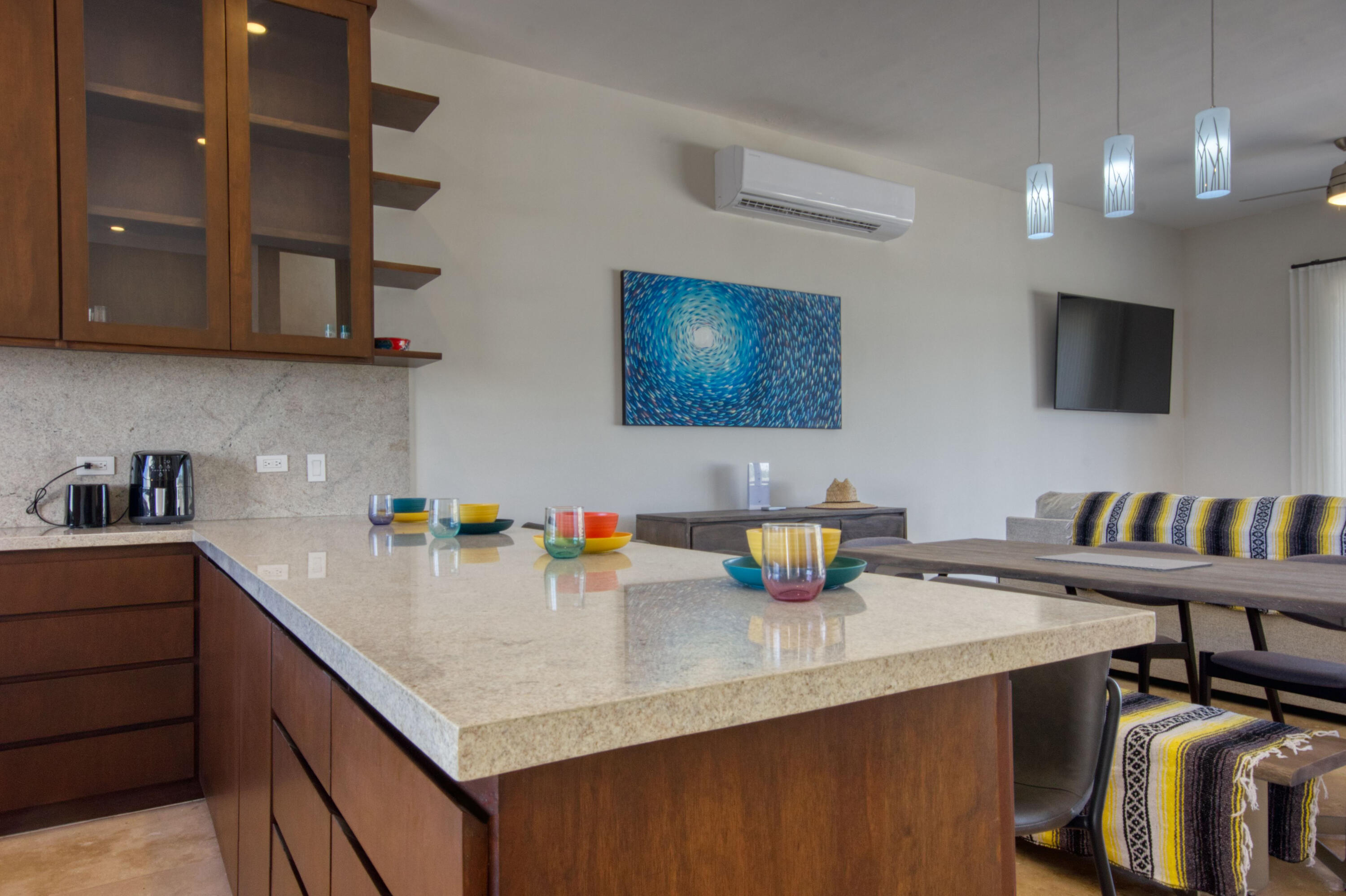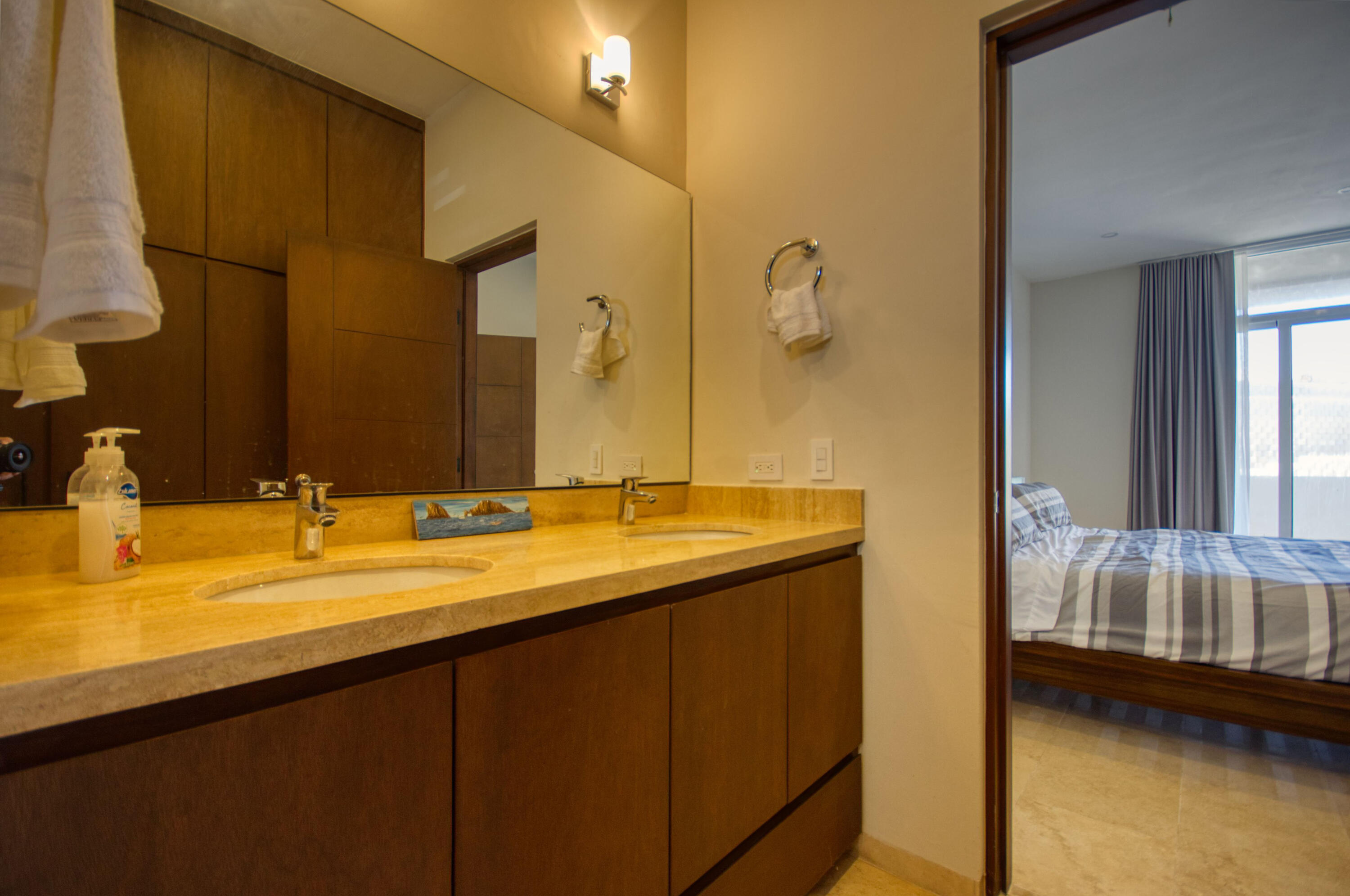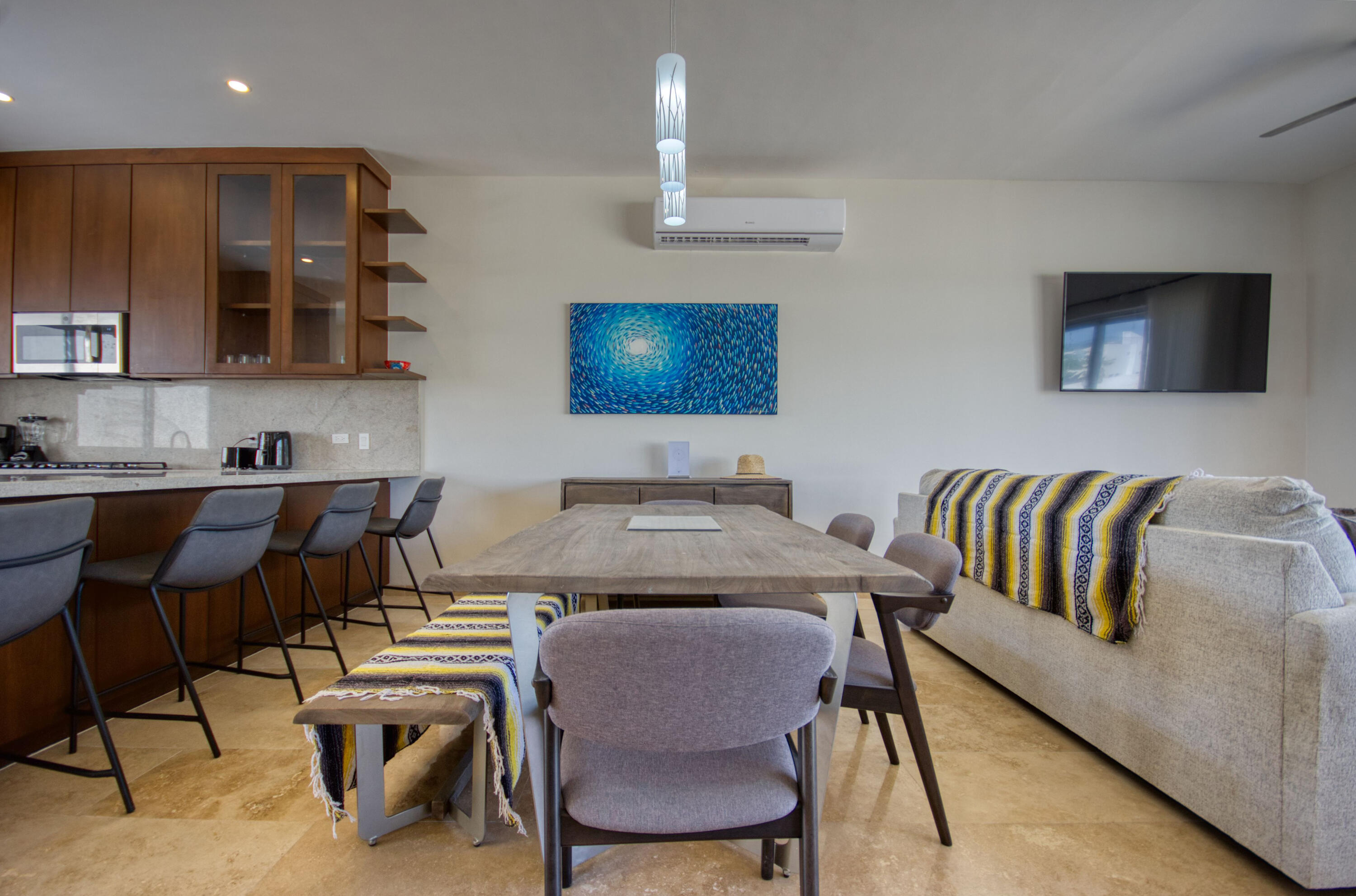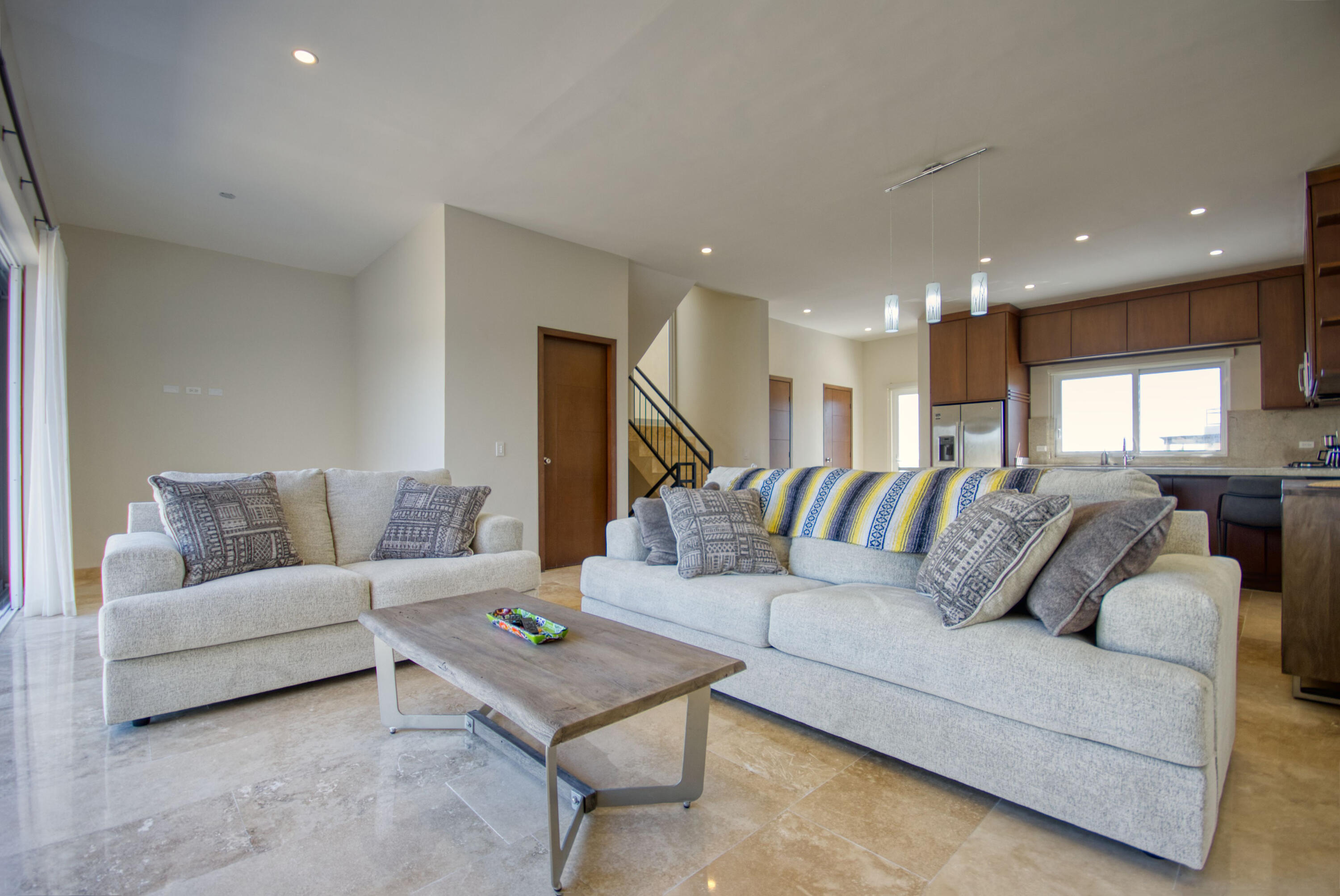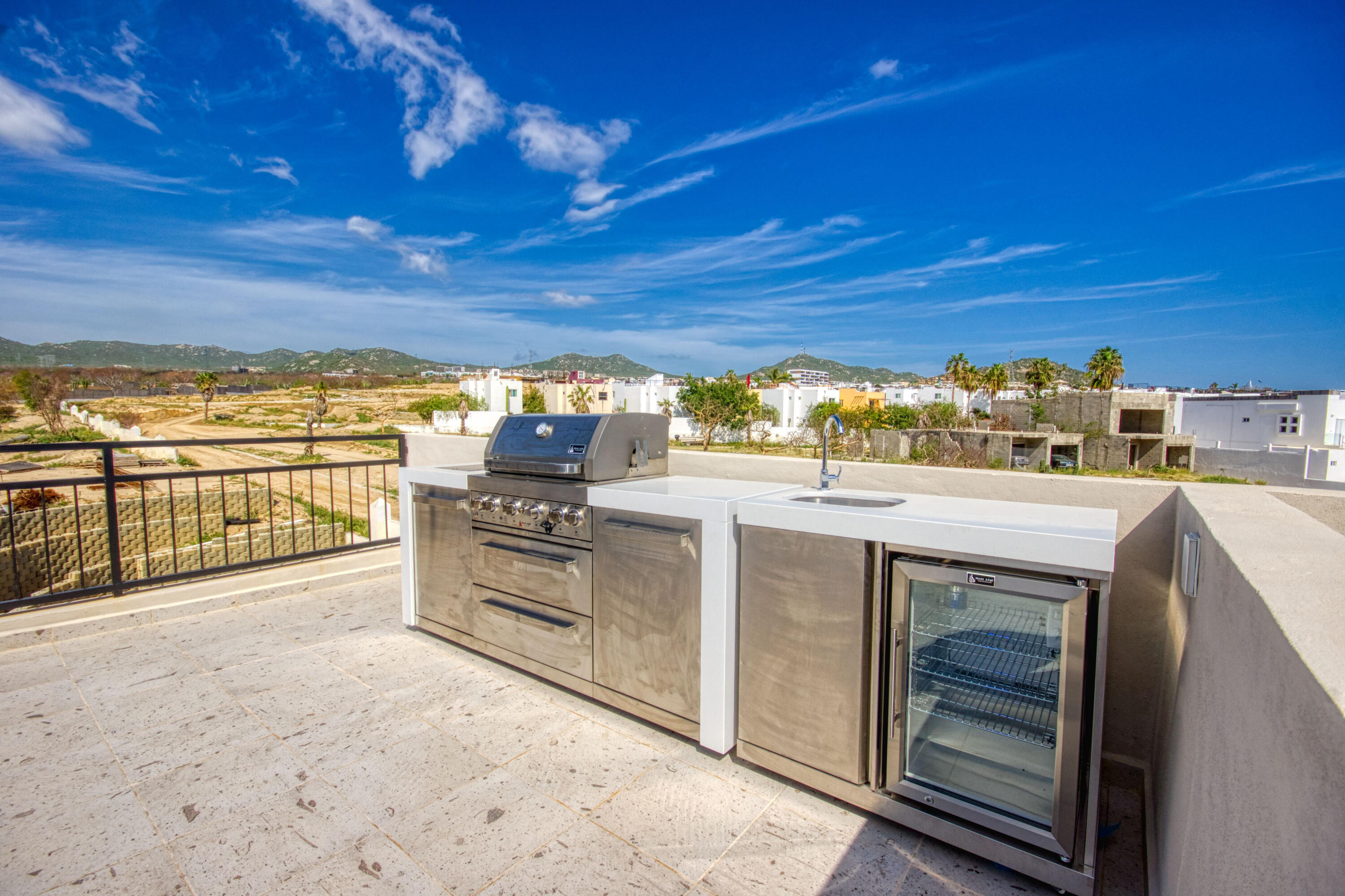 Ocean-View Home with Excellent Rental Potential in Villas Del Tezal Located in the gated community of Villas Del Tezal, this fully furnished 3-bedroom, 3-bath home offers over 2,600 sq. ft. of bright, open-concept living space. Multiple terraces and a spacious rooftop patio complete with a hot tub and outdoor kitchen make it the best place to capture panoramic views of the iconic Arch, perfect for enjoying Cabo's indoor-outdoor lifestyle. The main level includes a large kitchen, dinning space, living room, and an office, Abundant natural light flows throughout, enhancing the warm and inviting atmosphere. This home features a 10,000-liter cistern with a water purification system This house features inverted living space with 3 bedrooms and 2 full bathrooms on the ground floor