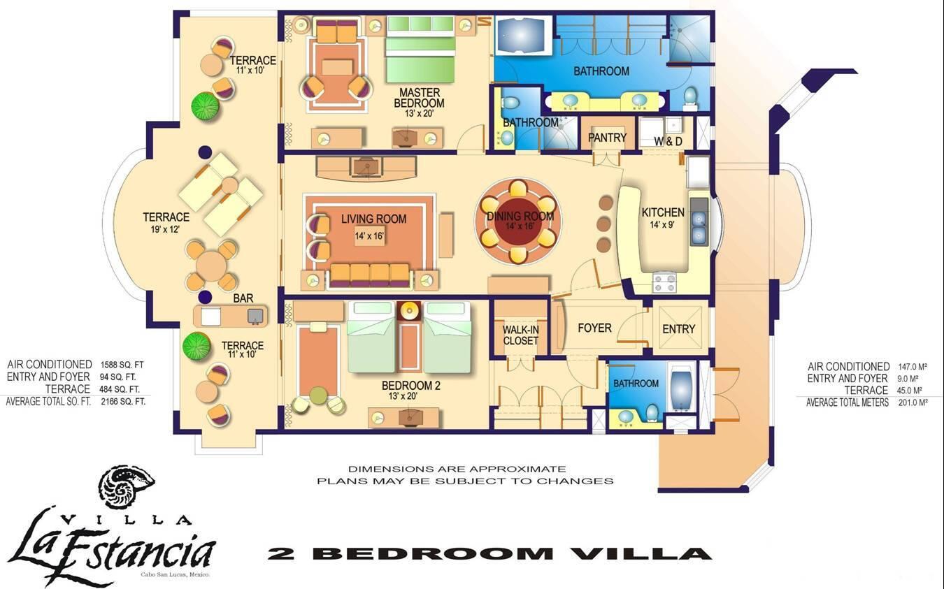 Villa La Estancia 3406-1 (1/4 share (13 weeks) where owners have their own separate deed and title via a Fideicomiso (Bank Trust). Villa La Estancia 3406-1 offers two spacious bedrooms along with 3 full bathrooms and comfortable interiors. Enjoy spectacular views where the Sea Of Cortez and Pacific Oceans meet from the 4th floor balcony. This property is among the closest 2 bedrooms to the beach!!!!