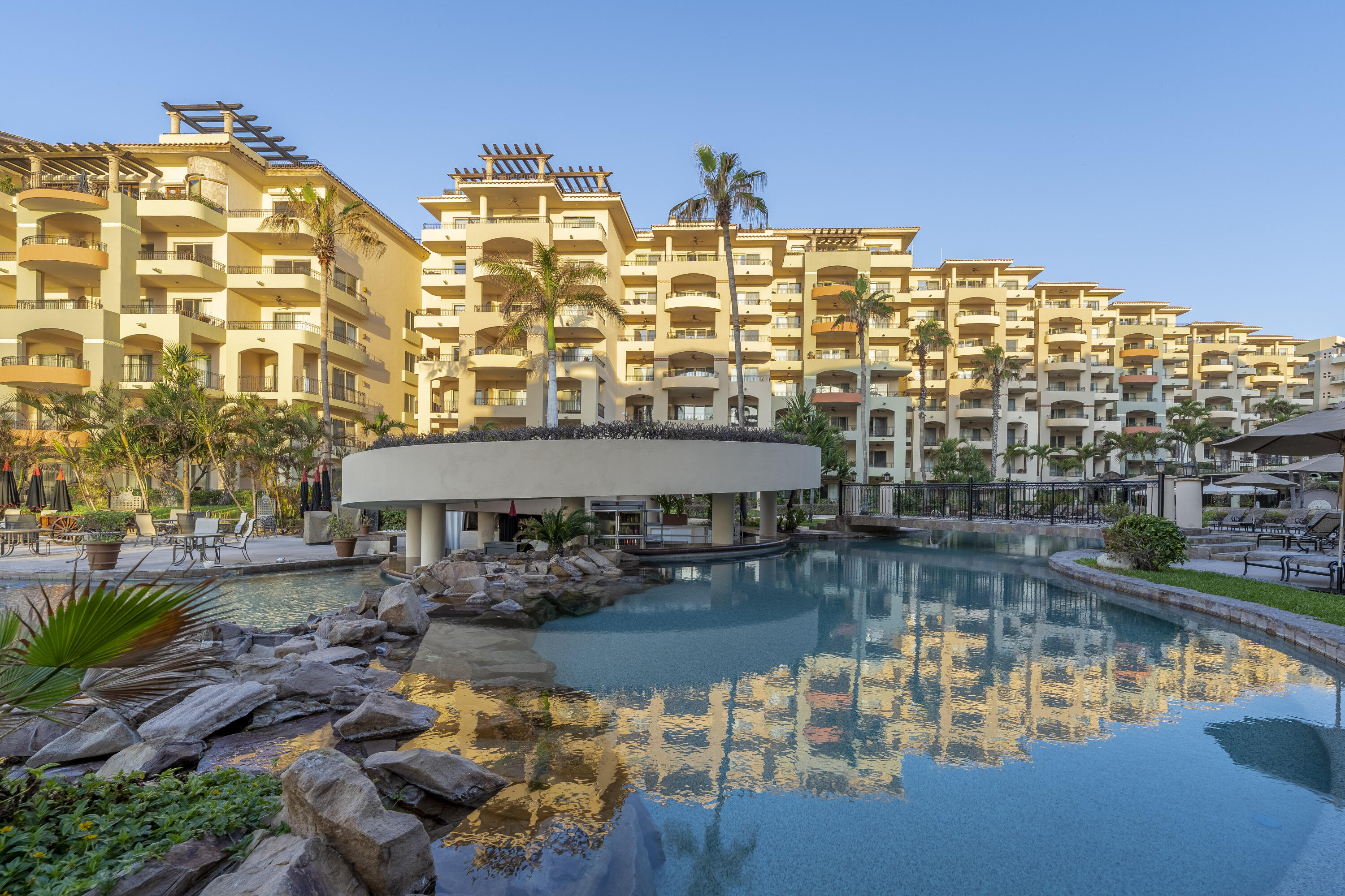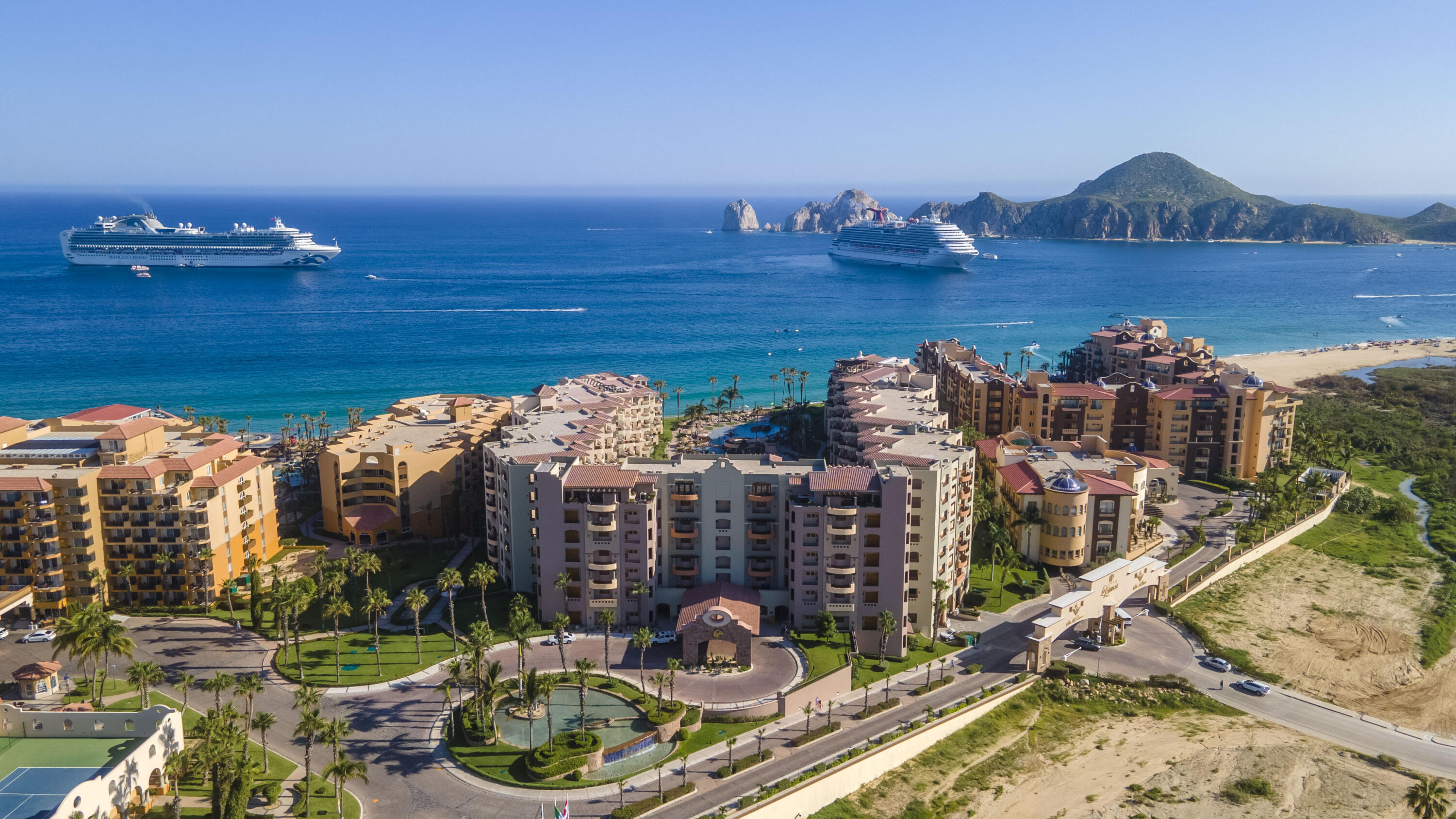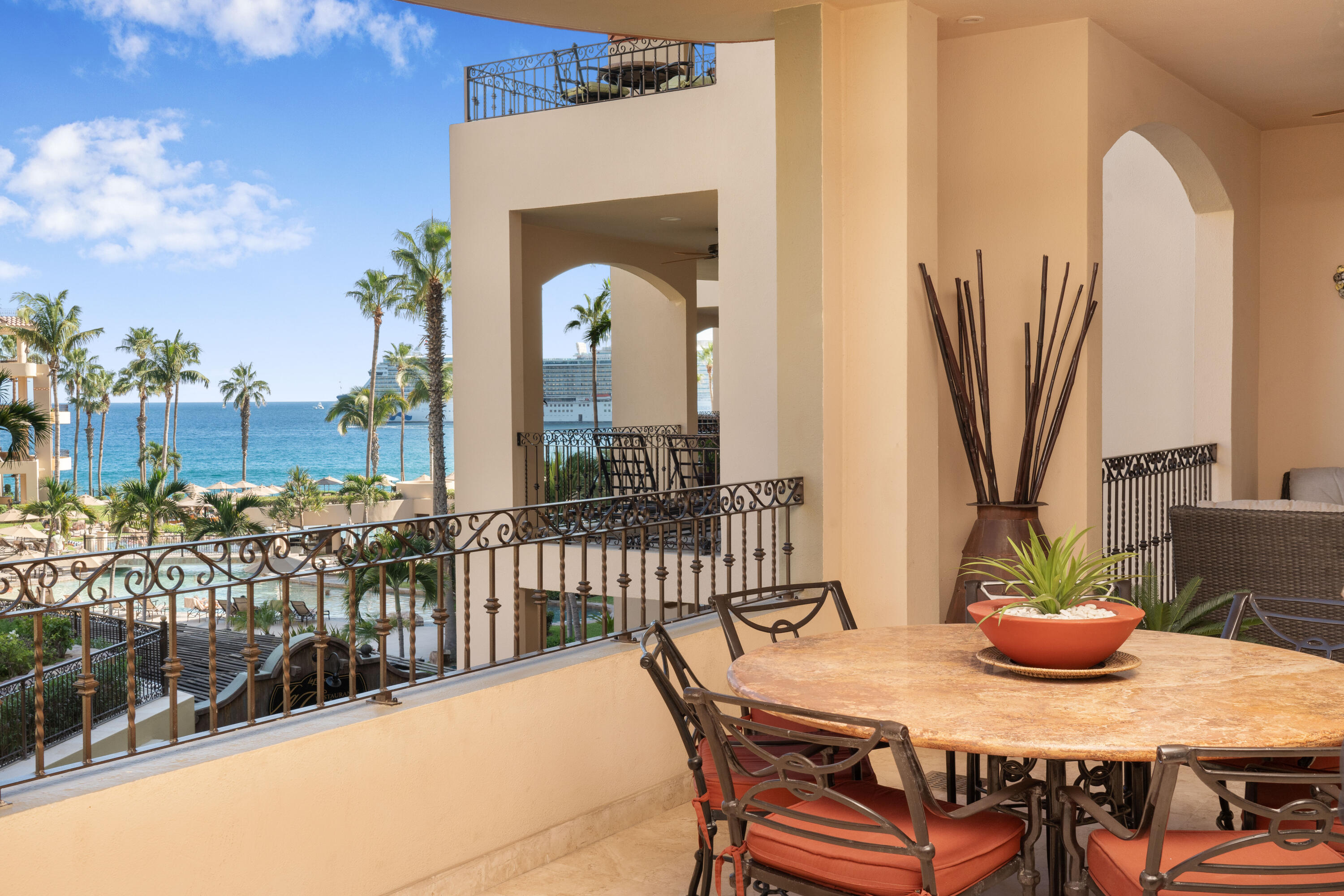 This spacious 2,100+ sq. ft. two-bedroom, three-bathroom villa is located on the renowned Medano Beach in Cabo San Lucas. Fully furnished and recently remodeled, it features high-quality finishes throughout. Villa La Estancia has a proven track record as a strong vacation rental property. A grand reception lobby welcomes you, along with 24-hour concierge services for you and your guests. Amenities include two restaurants, two pools, a swim-up bar, and a beach club for your enjoyment. The property also offers a fully equipped gym, spa, and private tennis courts.
