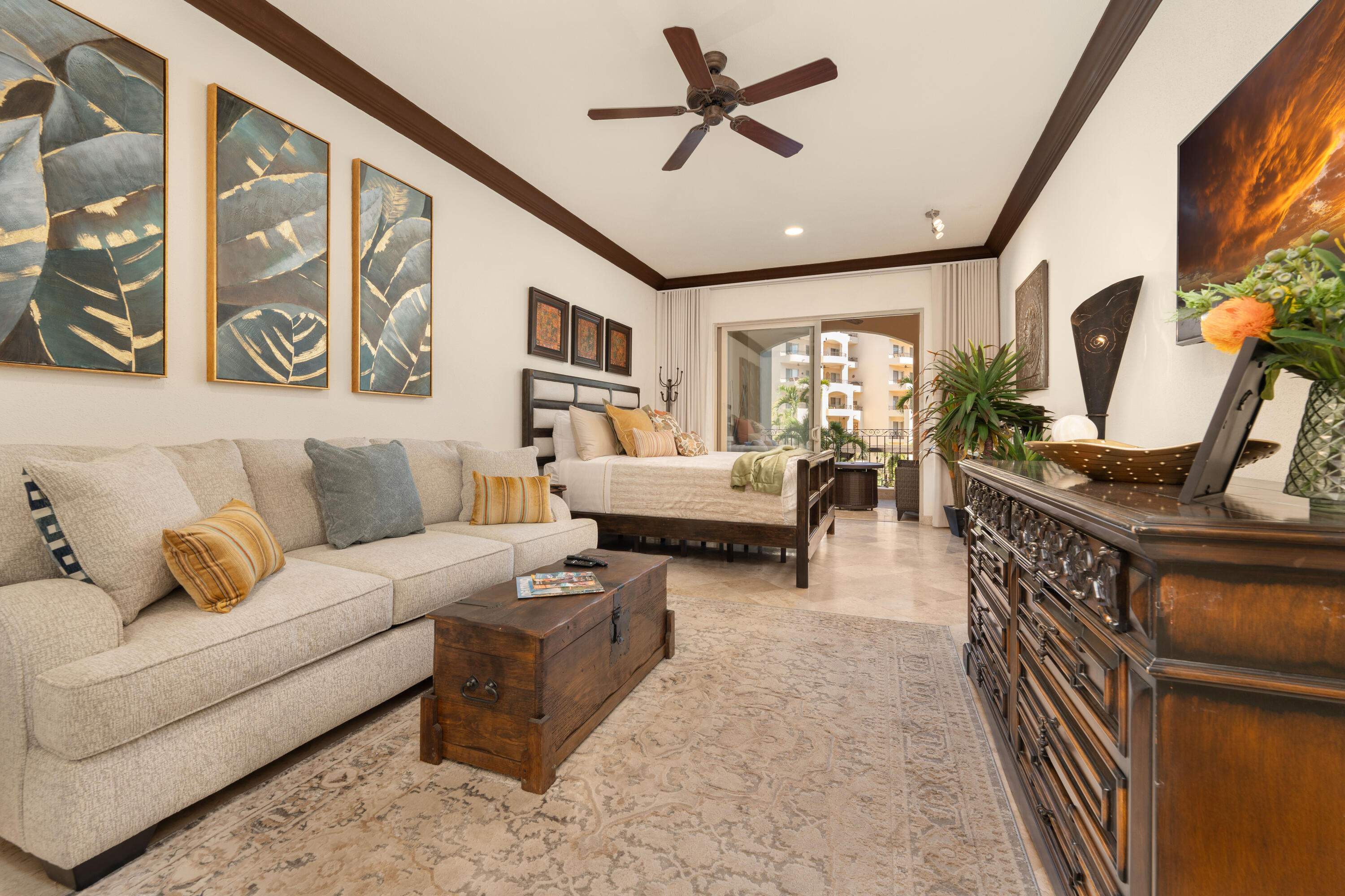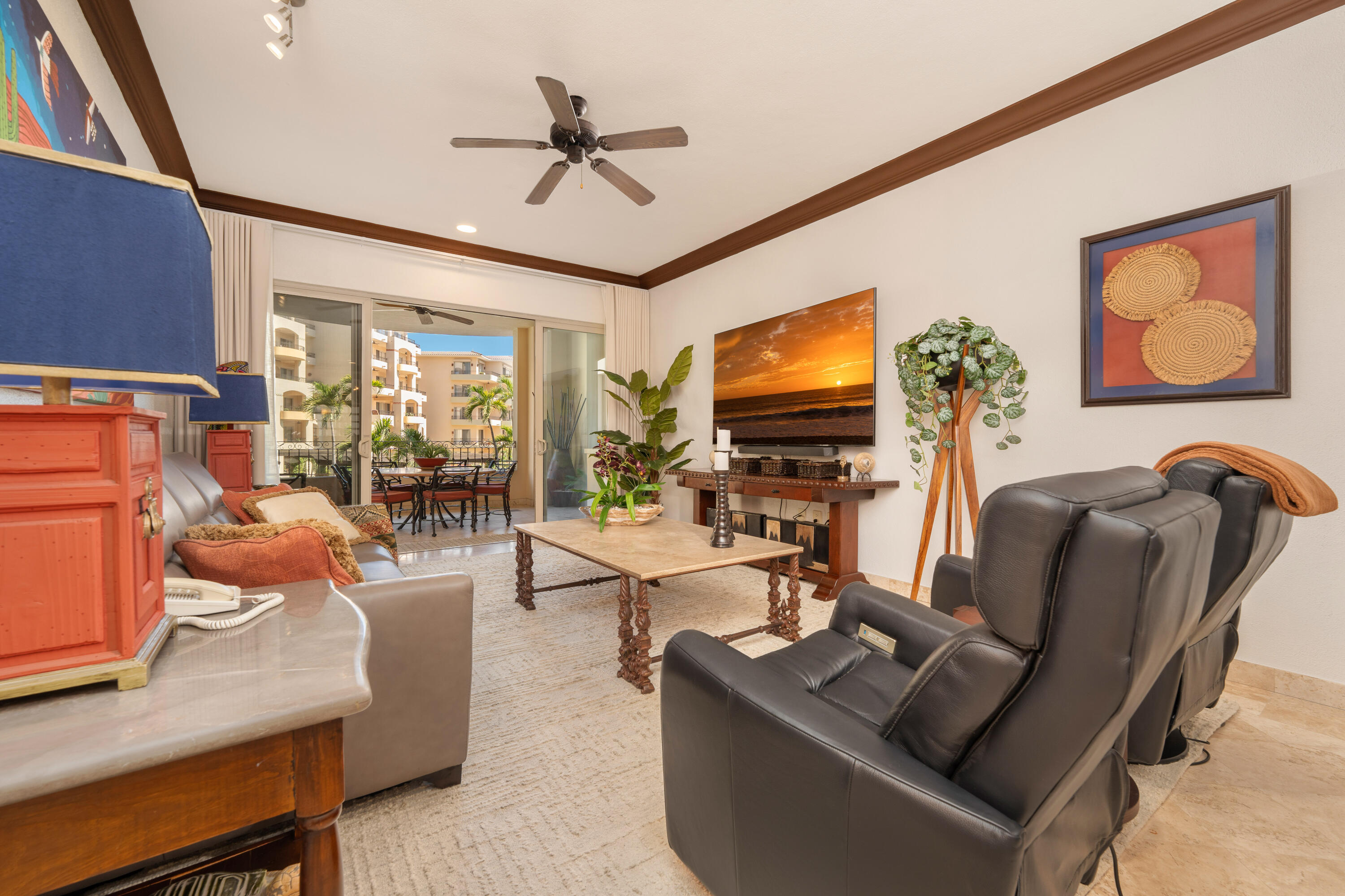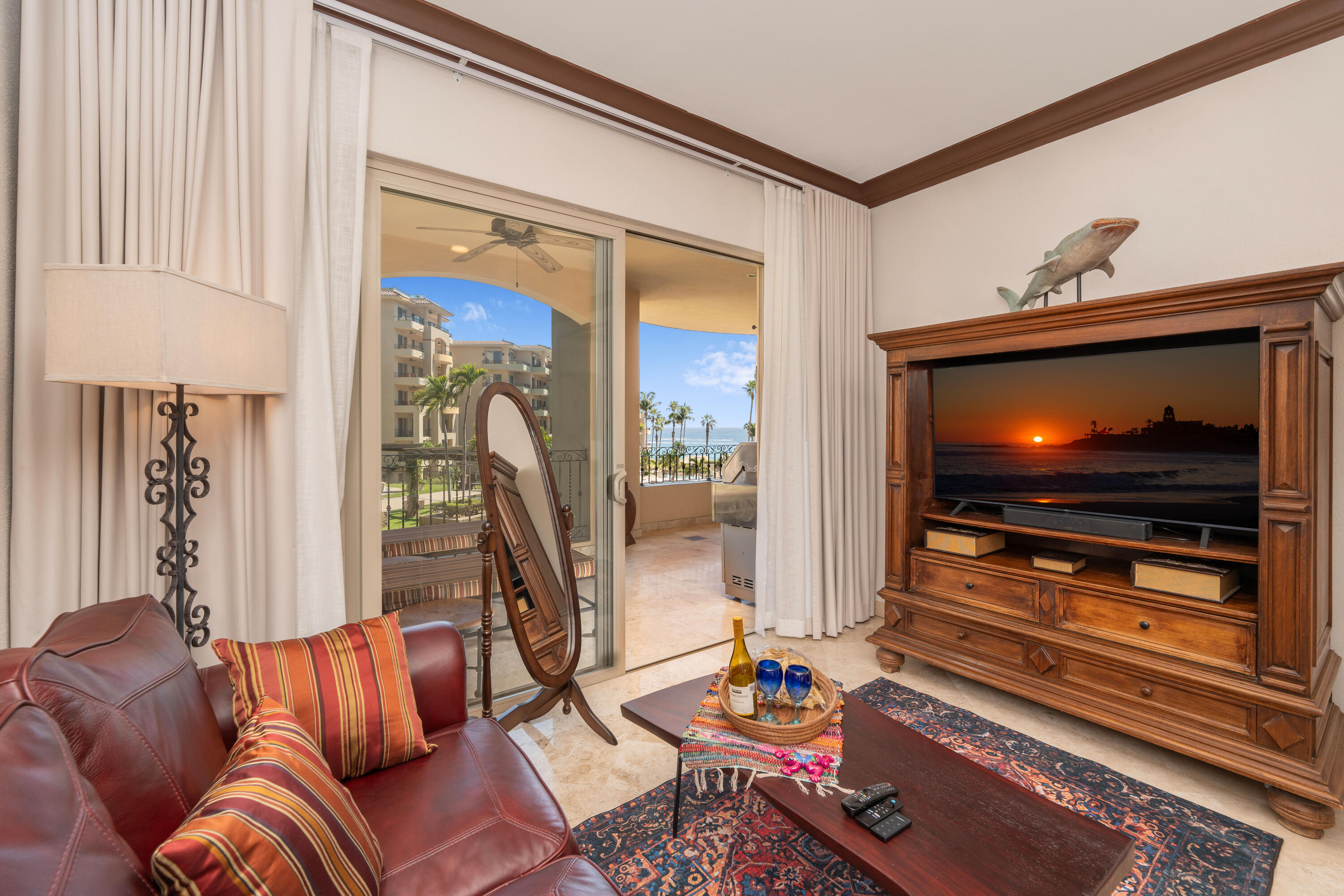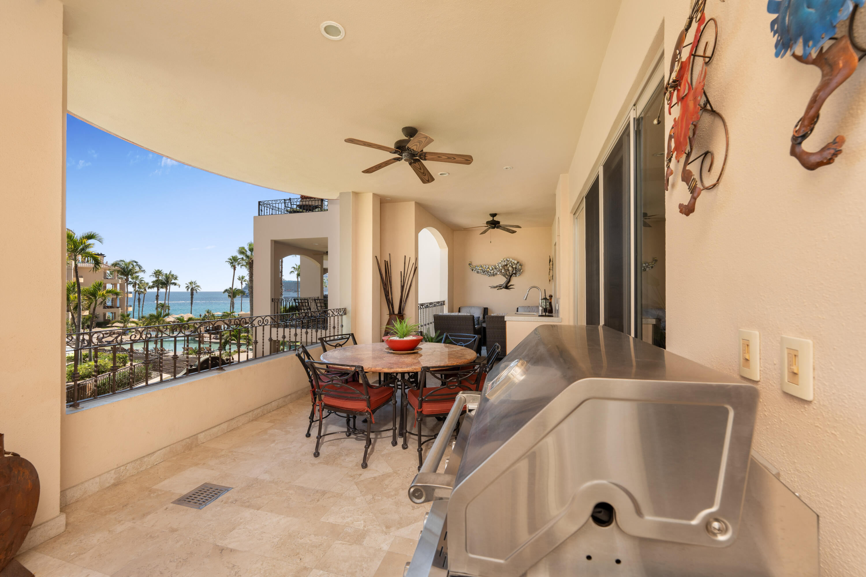 This spacious 2,100+ sq. ft. two-bedroom, three-bathroom villa is located on the renowned Medano Beach in Cabo San Lucas. Fully furnished and recently remodeled, it features high-quality finishes throughout. Villa La Estancia has a proven track record as a strong vacation rental property. A grand reception lobby welcomes you, along with 24-hour concierge services for you and your guests. Amenities include two restaurants, two pools, a swim-up bar, and a beach club for your enjoyment. The property also offers a fully equipped gym, spa, and private tennis courts.
