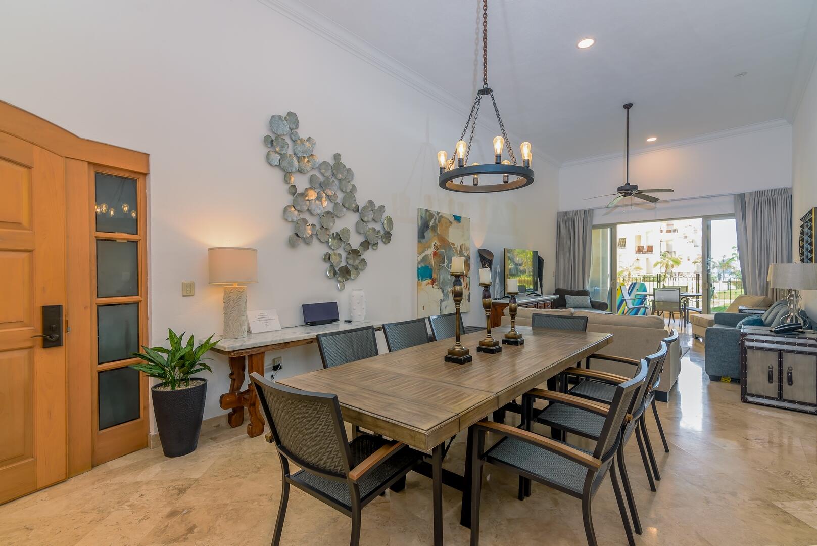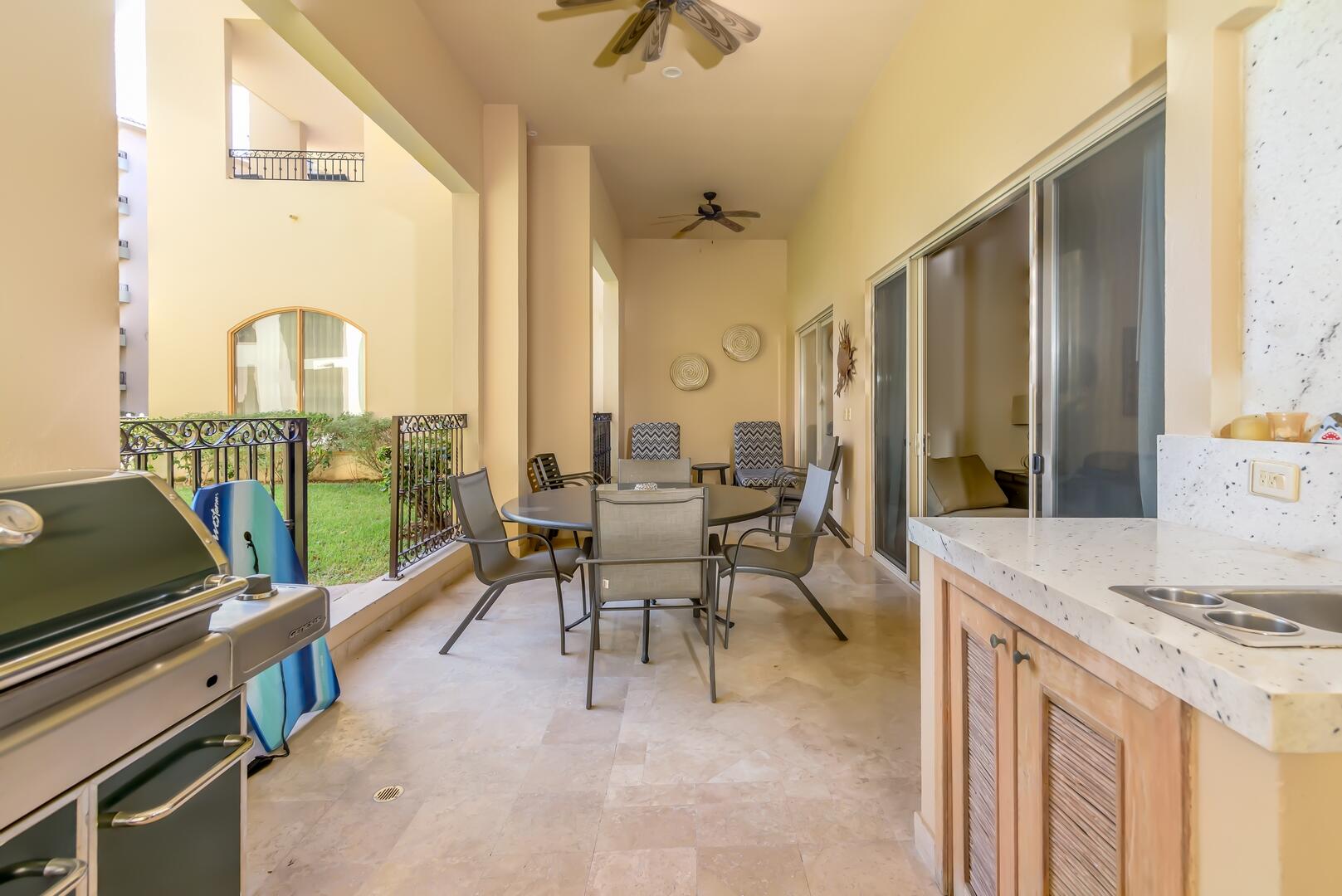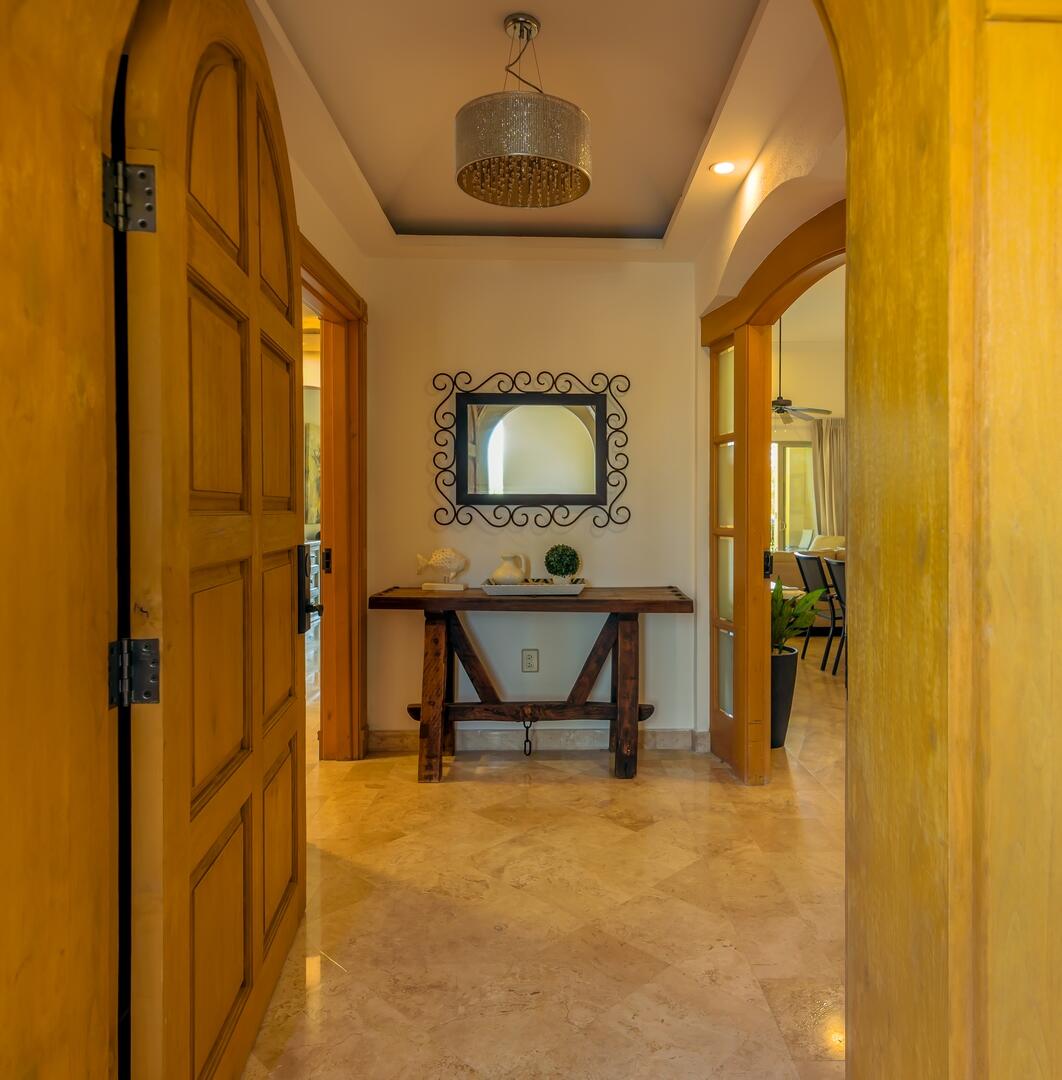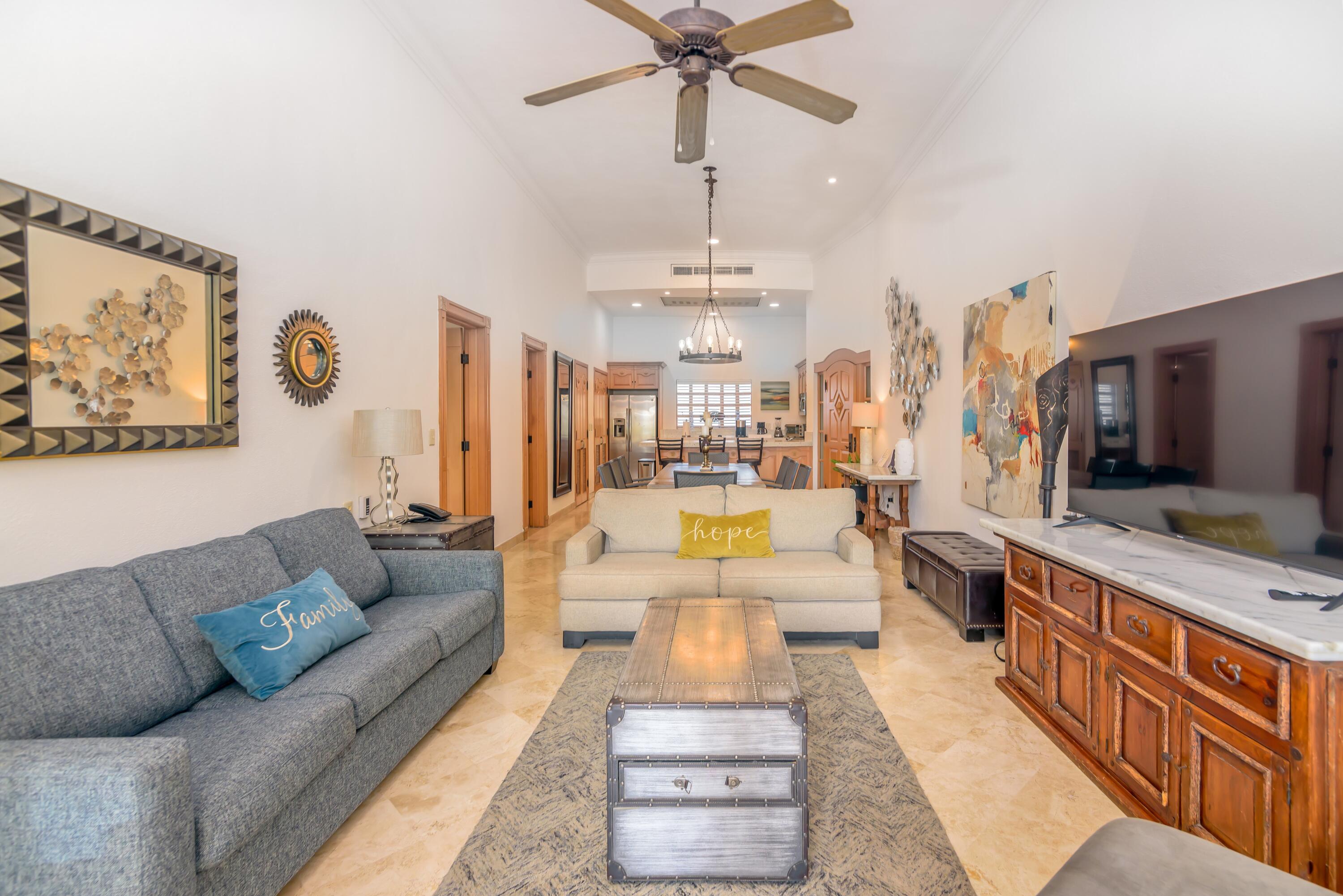 This coveted ground floor villa is steps from the sparkling Sea of Cortez and Medano beach. Located within Villa L a Estancia, a renowned high end private residence which offers resort style amenities. Amenities include two pools each with swim up bars, five common area hot tubs, Gym/spa, 24/7 hr security, onsite grocery store/deli, private tennis and pickle ball courts, two dining locations, poo/beach service, reception, concierge, bellhops, underground assigned parking and much more. Villa La Estancia 2201 is turkey and move in ready. The well thought interior design emits simple elegance and comfort.. Great for personal enjoyment and return on investment. Villa La Estancia 2201 has a proven track record with consistent year after rental returns on investment.