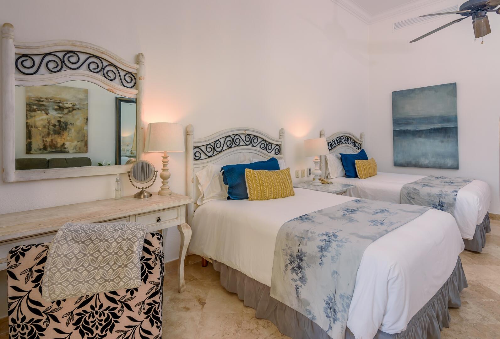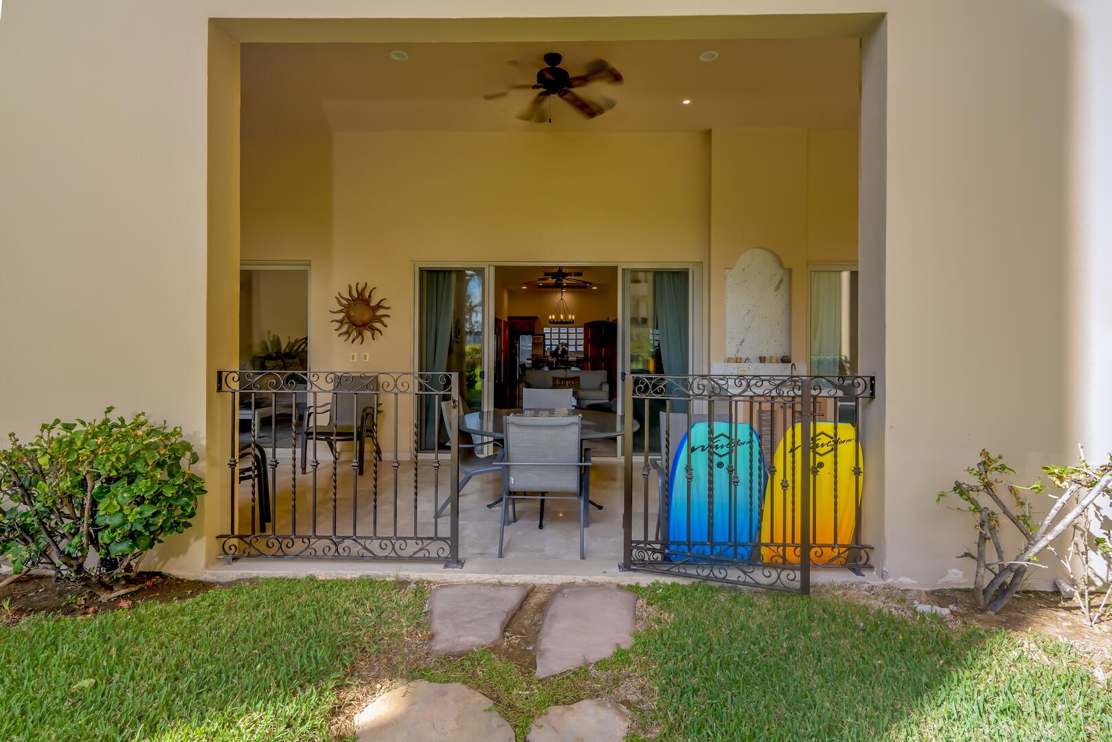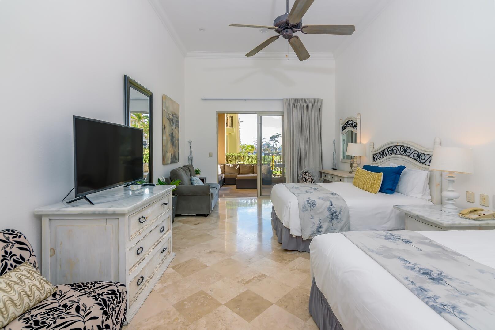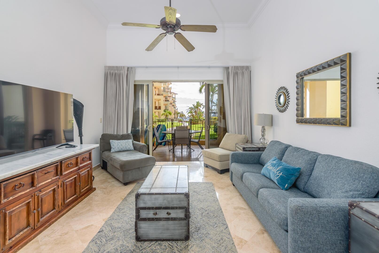 This coveted ground floor villa is steps from the sparkling Sea of Cortez and Medano beach. Located within Villa L a Estancia, a renowned high end private residence which offers resort style amenities. Amenities include two pools each with swim up bars, five common area hot tubs, Gym/spa, 24/7 hr security, onsite grocery store/deli, private tennis and pickle ball courts, two dining locations, poo/beach service, reception, concierge, bellhops, underground assigned parking and much more. Villa La Estancia 2201 is turkey and move in ready. The well thought interior design emits simple elegance and comfort.. Great for personal enjoyment and return on investment. Villa La Estancia 2201 has a proven track record with consistent year after rental returns on investment.