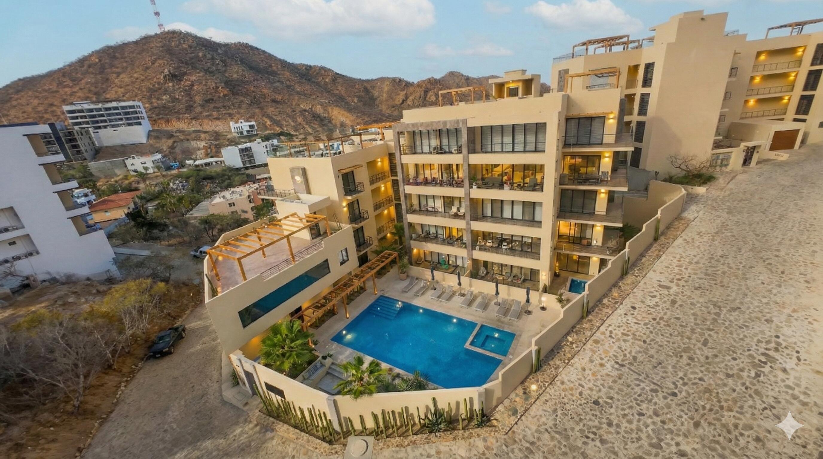 Residence at Vista Mare, Cabo San Lucas, located on the 4th floor and designed for an elevated Los Cabos lifestyle. Featuring 3 bedrooms, 2 bathrooms, and 2 covered parking spaces, this home showcases modern finishes and a bright, open layout. The spacious terrace offers stunning mountain and ocean views--perfect for relaxing or entertaining. Enjoy resort-style amenities including a fitness center, two swimming pools, jacuzzi, and social areas with firepit. Located within a private community just minutes from downtown and the marina, this residence blends comfort, style, and strong investment potential.