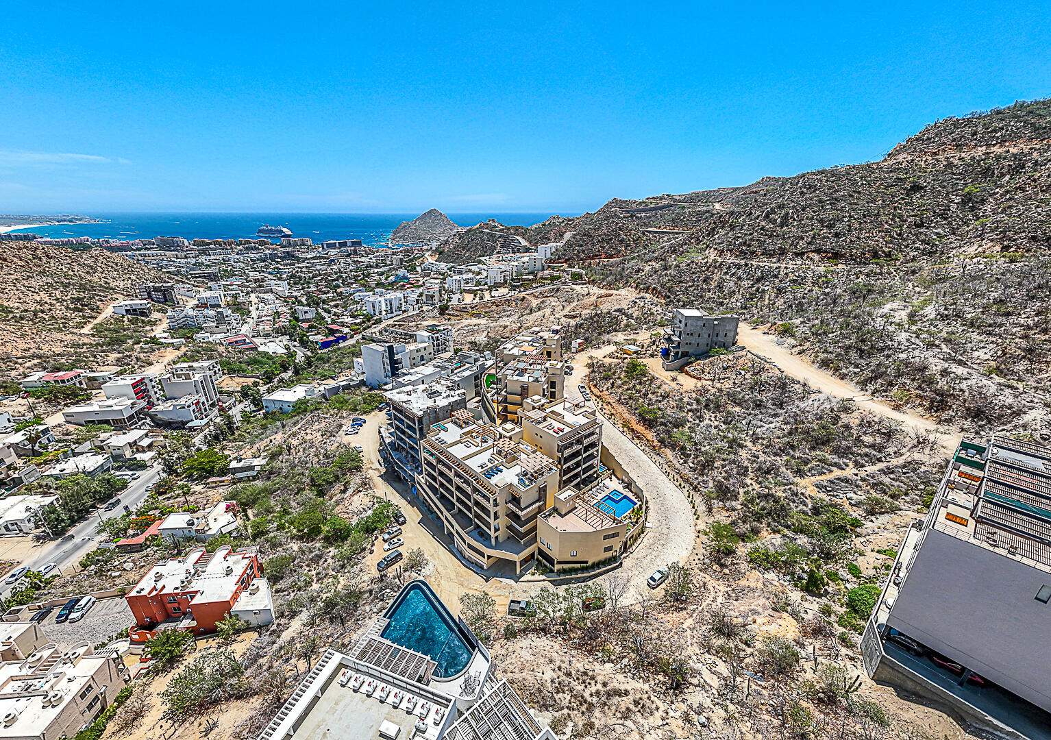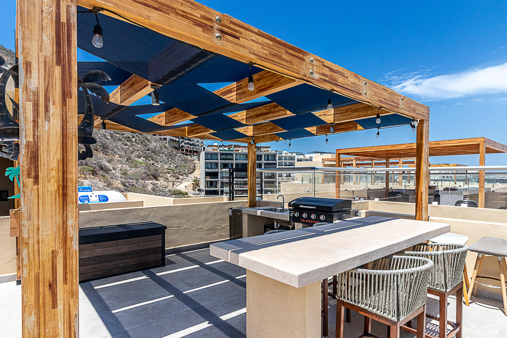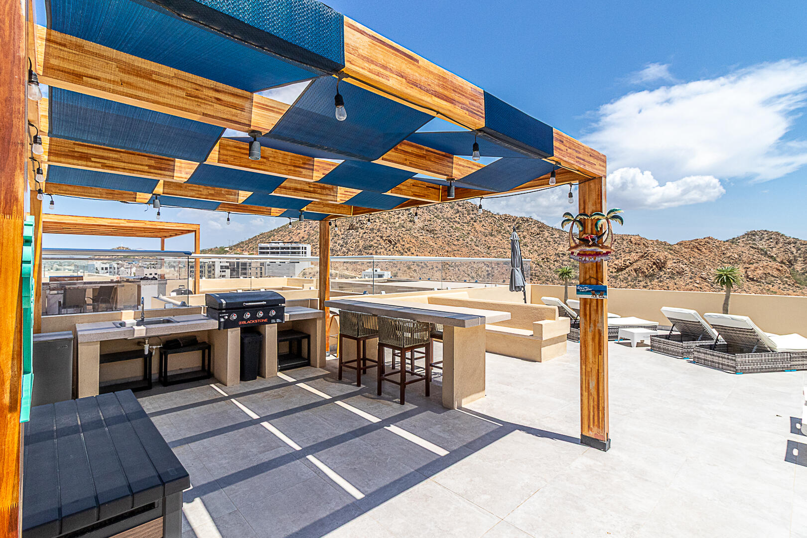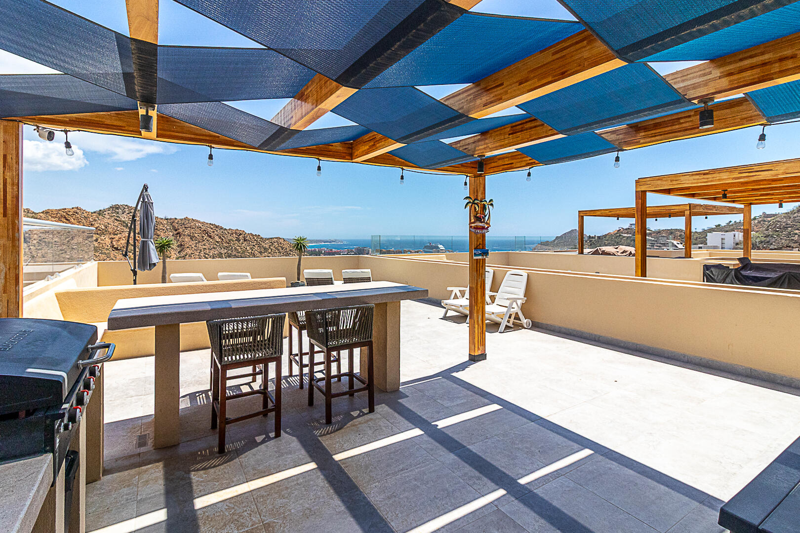 Penthouse in Downtown Cabo | Panoramic Bay & City Light Views This turnkey, fully furnished 2BD/2BA penthouse offers unmatched Cabo Bay, Pacific Ocean, and city night light views. The crown jewel is a private rooftop terrace with direct elevator access—a rare luxury—designed for entertaining with wet bar, grill, mini fridge, pergola, sun loungers, and outdoor seating. Inside, the open-concept living area showcases refined coastal design with modern Mexican charm. Includes a secured underground garage plus access to resort-style amenities: pool, jacuzzi, fire pit lounge, multipurpose terrace, and state-of-the-art gym. Ideally located in downtown Cabo, just 10 minutes from the marina, beaches, dining, and shopping. Schedule your private tour today—this won't last long.