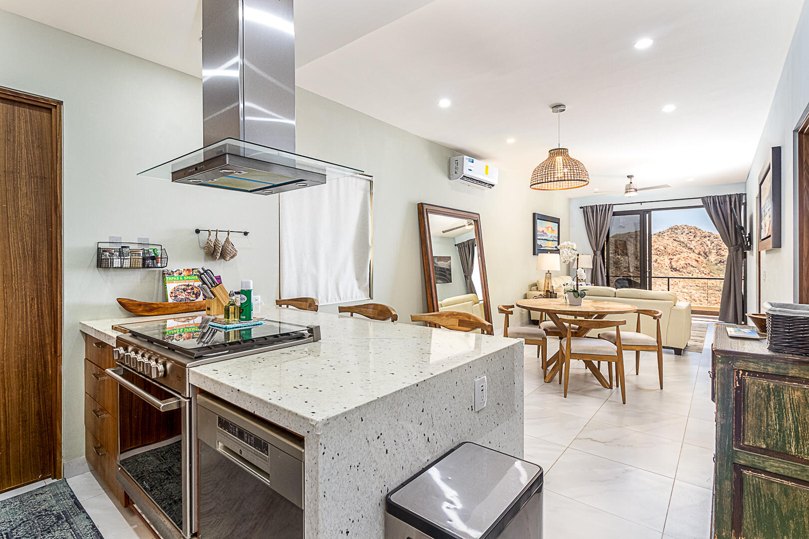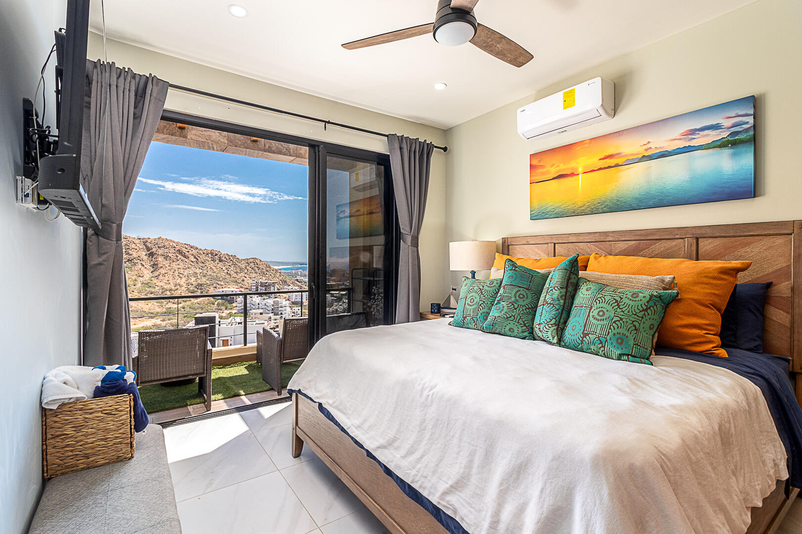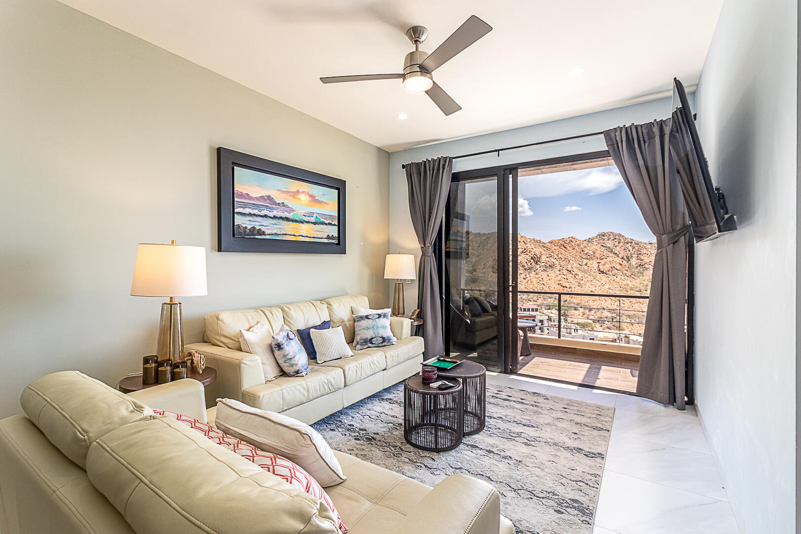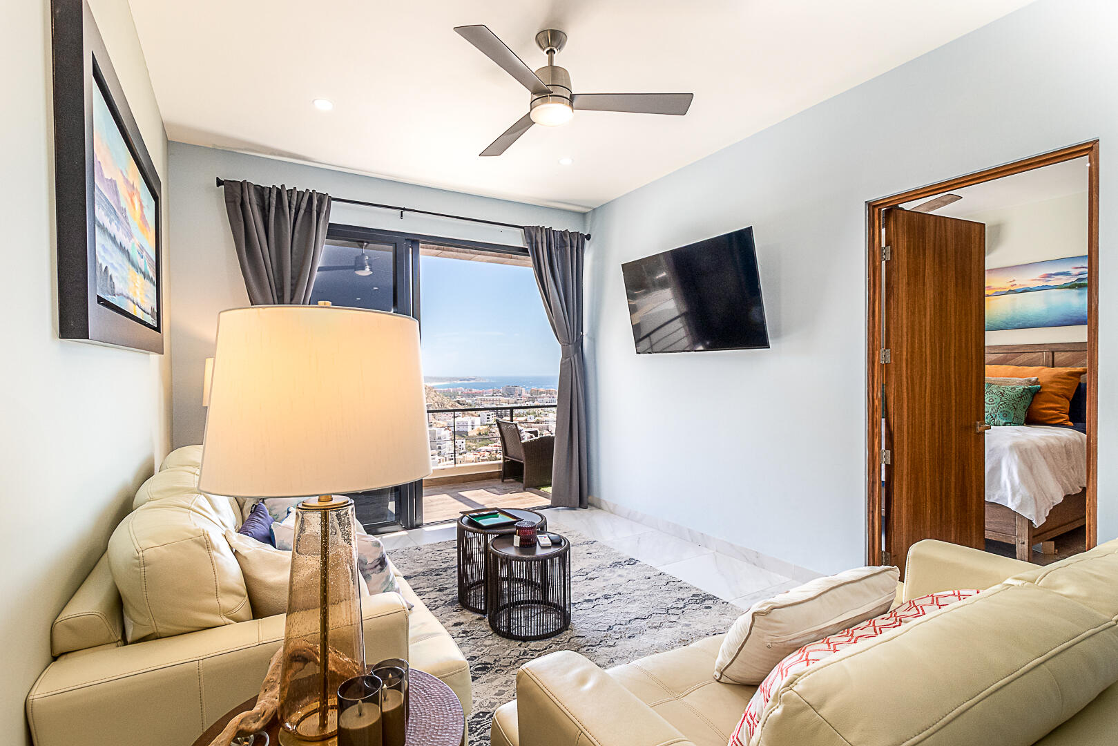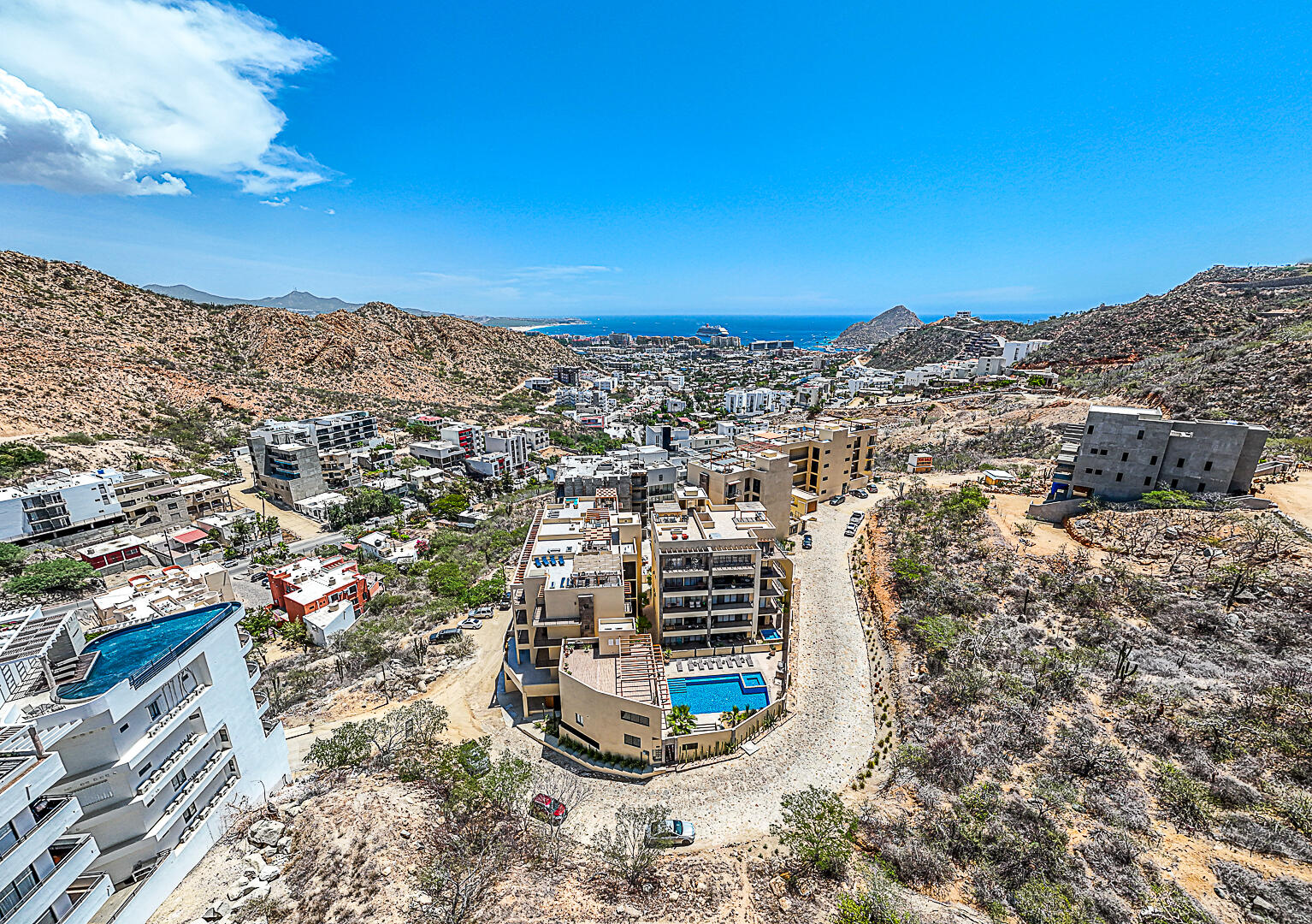 Penthouse in Downtown Cabo | Panoramic Bay & City Light Views This turnkey, fully furnished 2BD/2BA penthouse offers unmatched Cabo Bay, Pacific Ocean, and city night light views. The crown jewel is a private rooftop terrace with direct elevator access—a rare luxury—designed for entertaining with wet bar, grill, mini fridge, pergola, sun loungers, and outdoor seating. Inside, the open-concept living area showcases refined coastal design with modern Mexican charm. Includes a secured underground garage plus access to resort-style amenities: pool, jacuzzi, fire pit lounge, multipurpose terrace, and state-of-the-art gym. Ideally located in downtown Cabo, just 10 minutes from the marina, beaches, dining, and shopping. Schedule your private tour today—this won't last long.